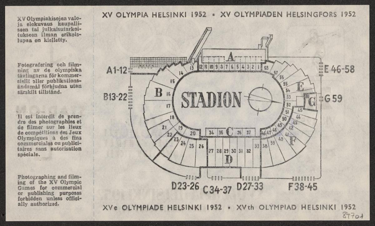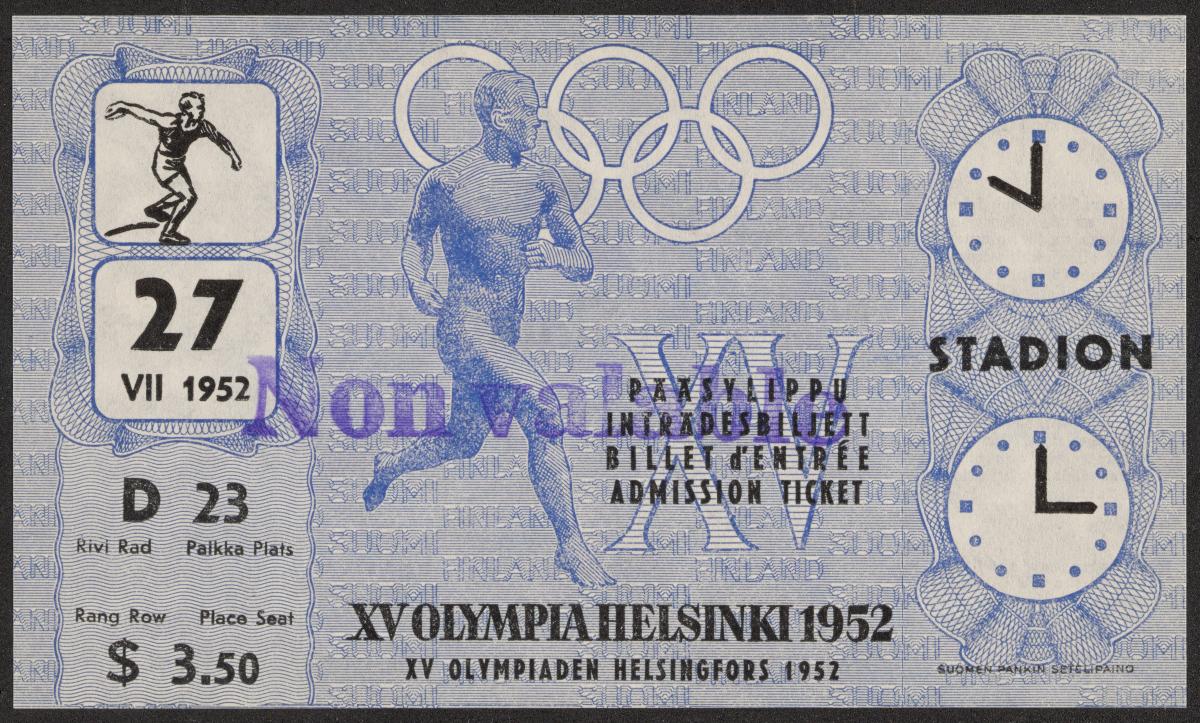 Helsinki 1952, admission ticket for athletics, July 27th.