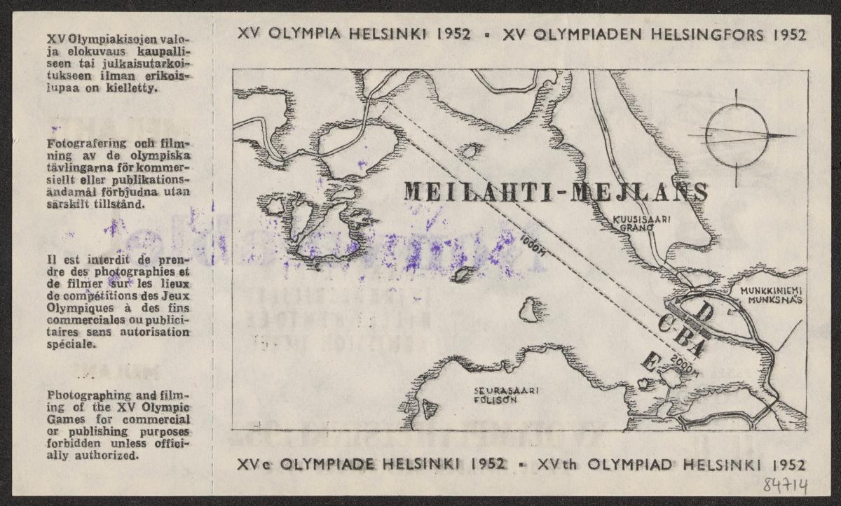 Helsinki 1952, admission ticket for rowing, July 23rd.