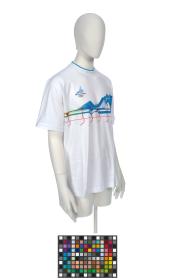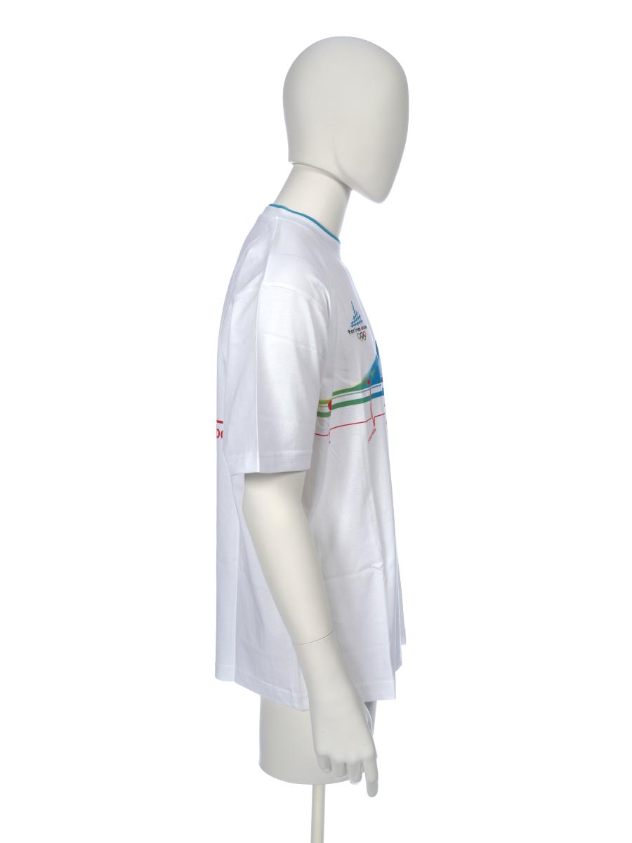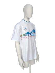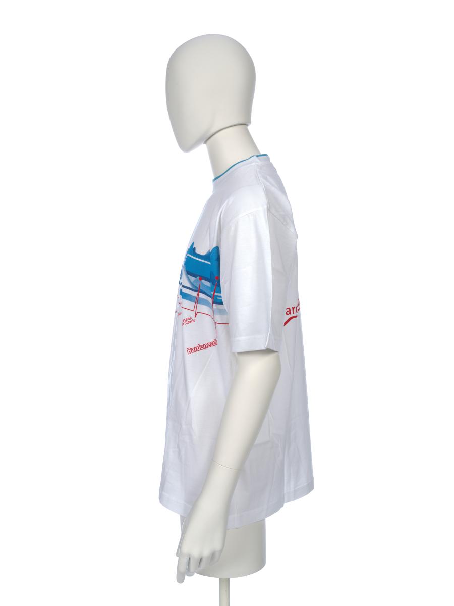 T-shirt with stylized mountains indicating the various Games' venues. Games' emblem. On the back there is the caption: "Bardonecchia - Snowboard". Bardon model. Size XL.