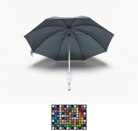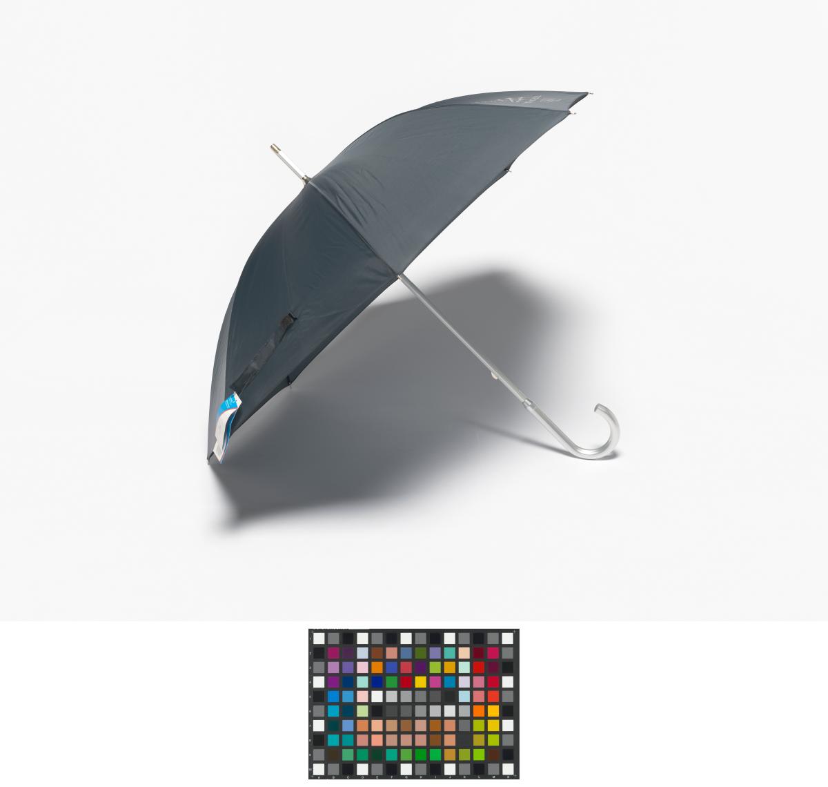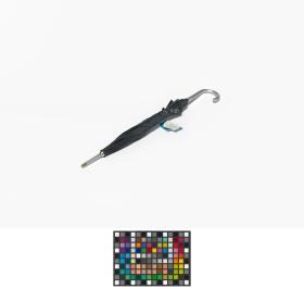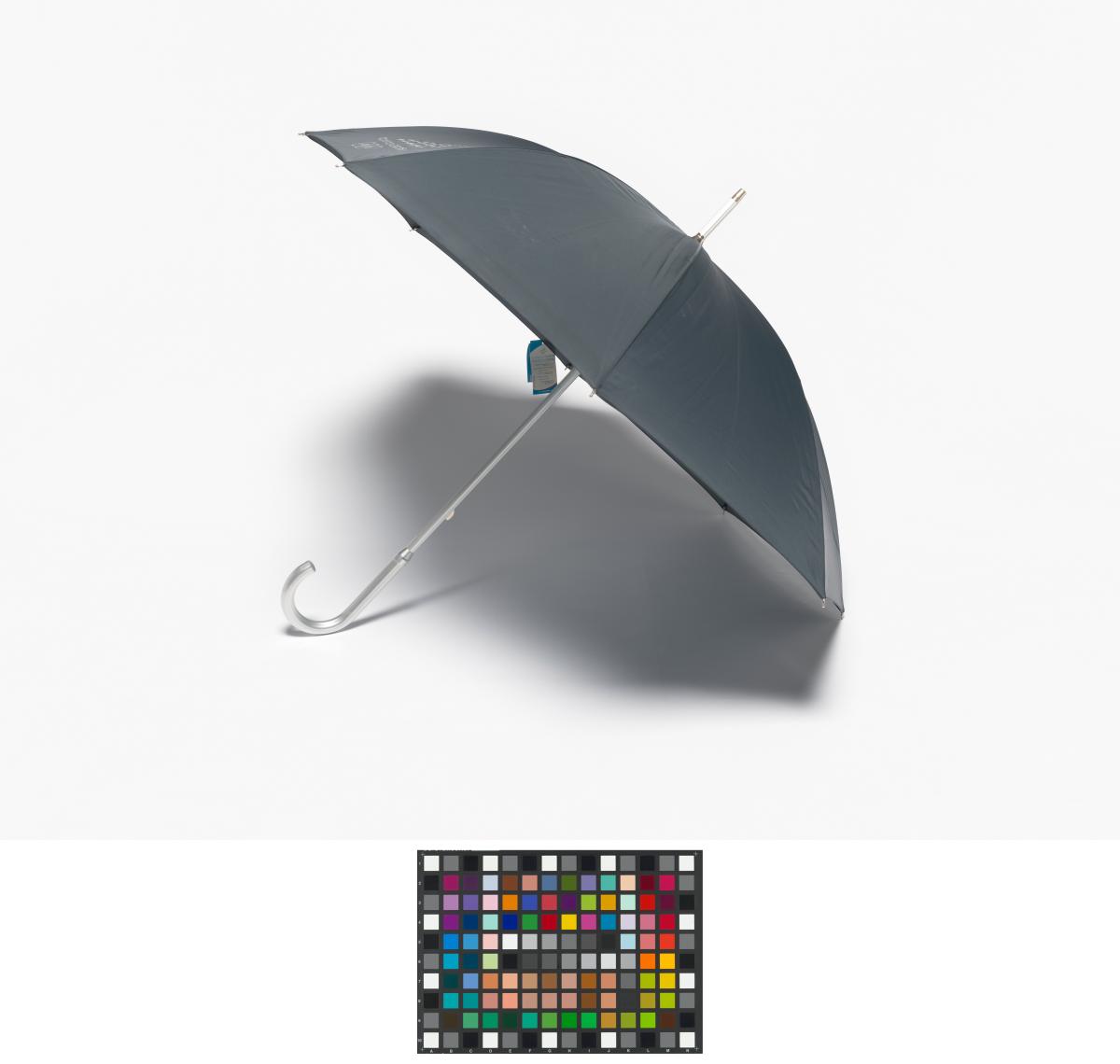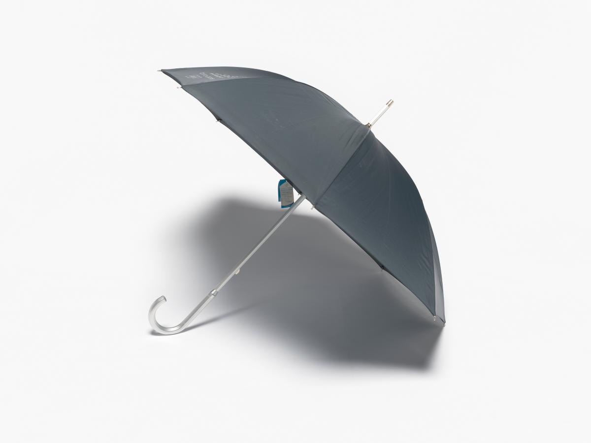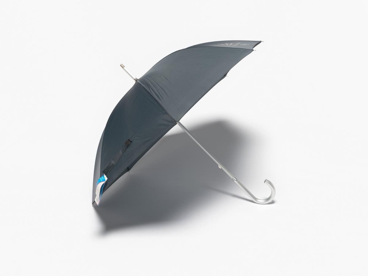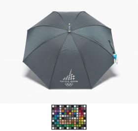 Dark blue umbrella with the Games' Emblem. Label with an hologramme and the list of the Olympic sites.