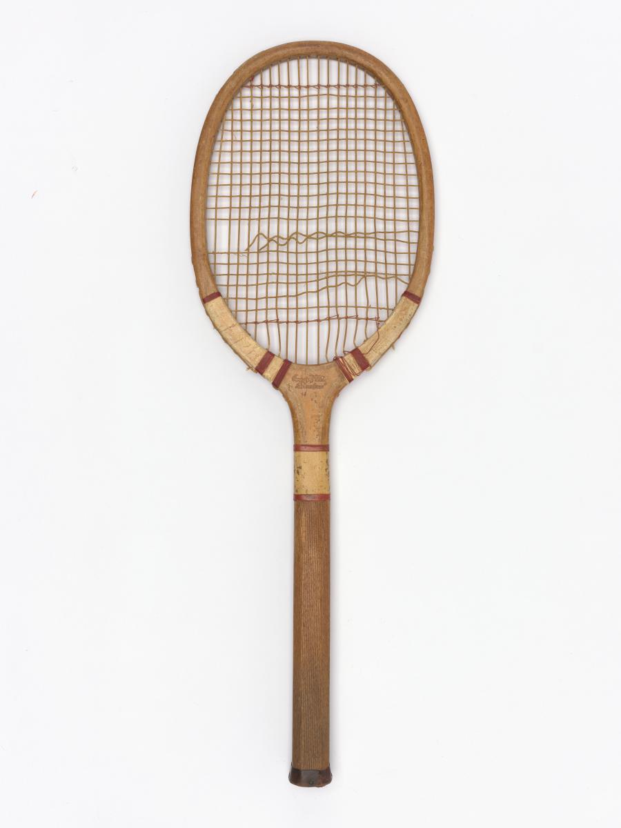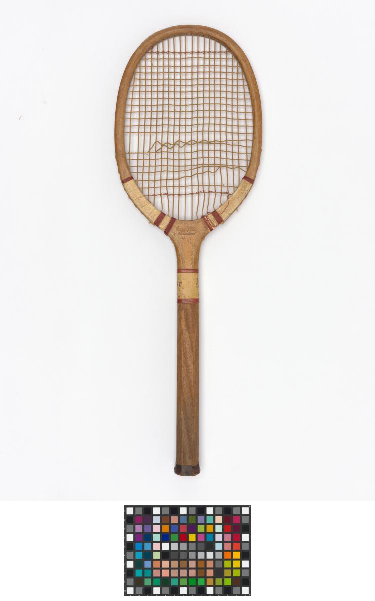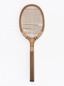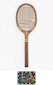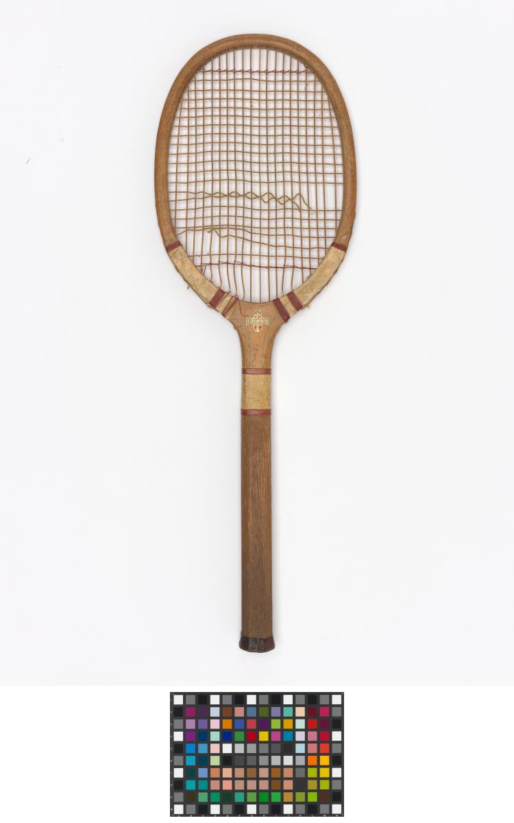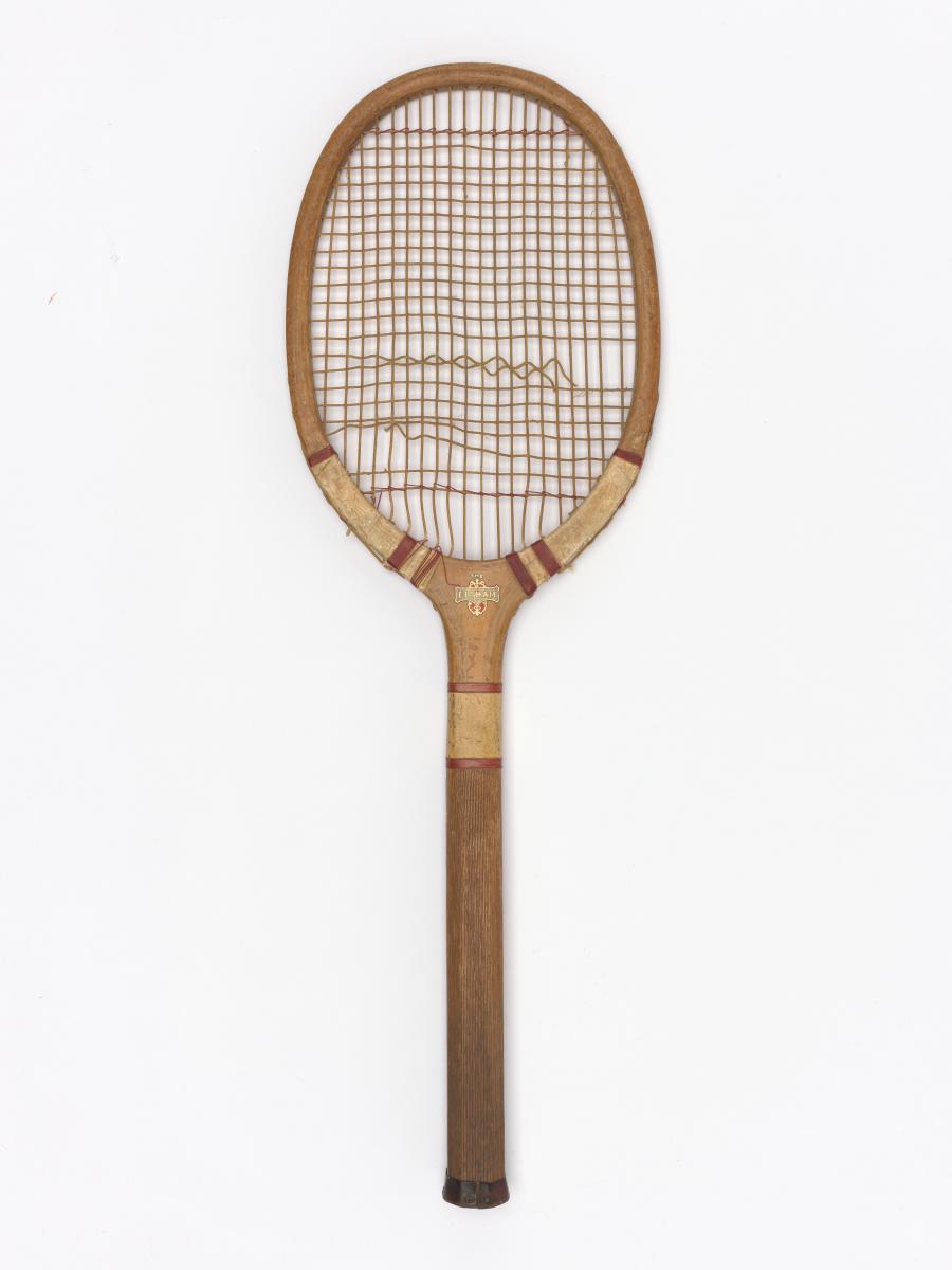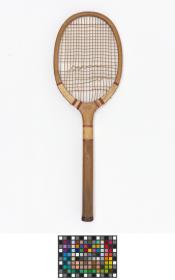 Ovale frame with concave wedge. Horizontal stringing. Octogonal handle with deep fine grooves. Leather butt cap.