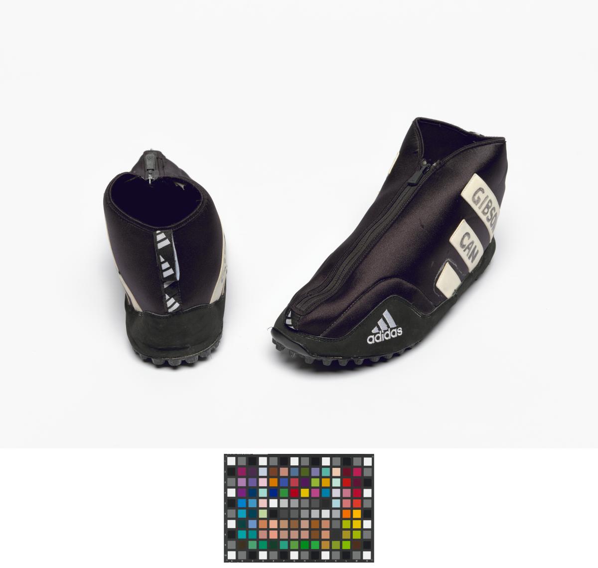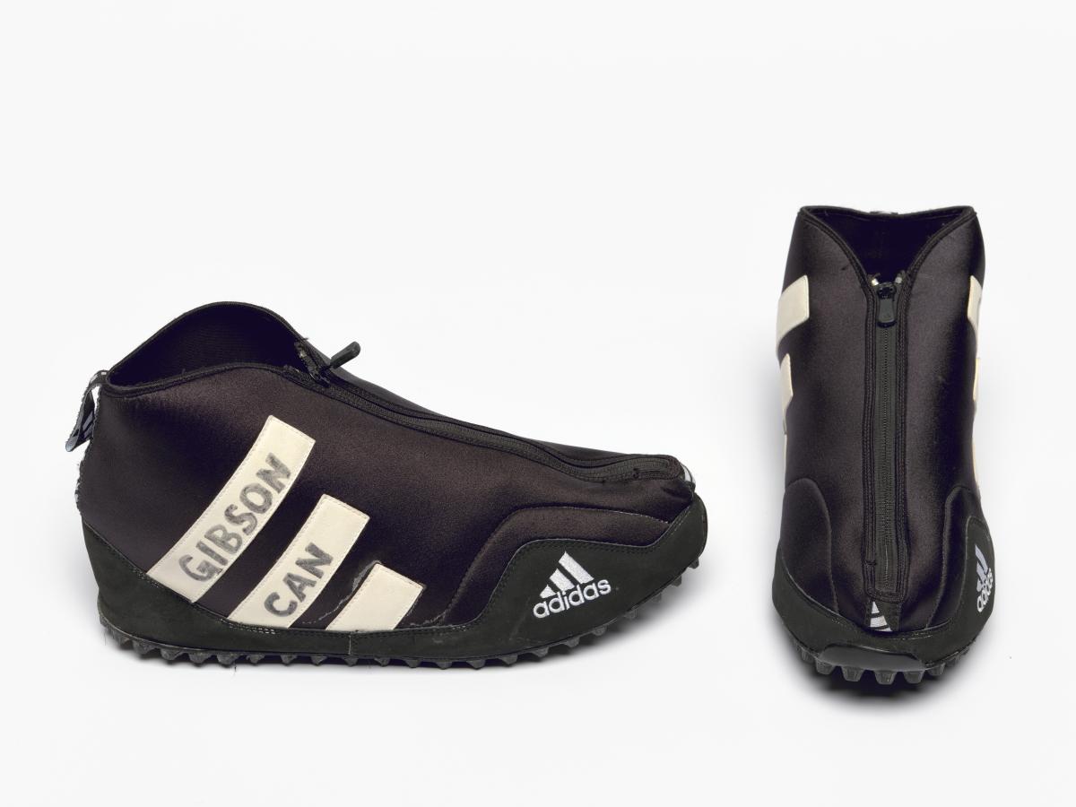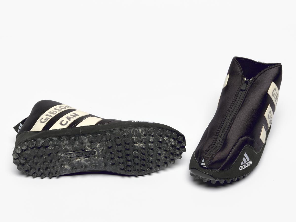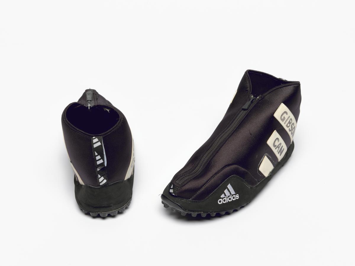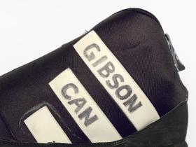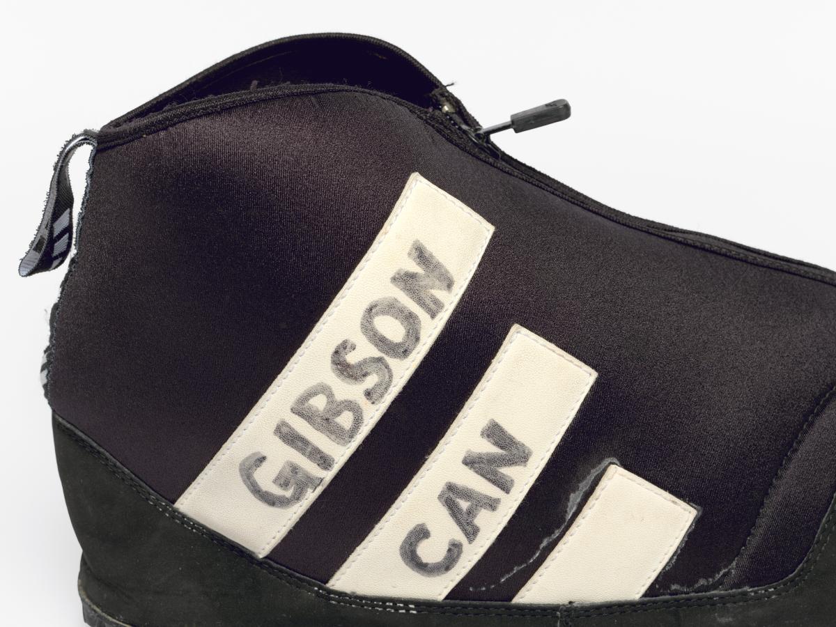 Black Adidas protection boots with zip. Dedication on both shoes: "GIBSON / CAN" and the athlete's signature on the right shoe.