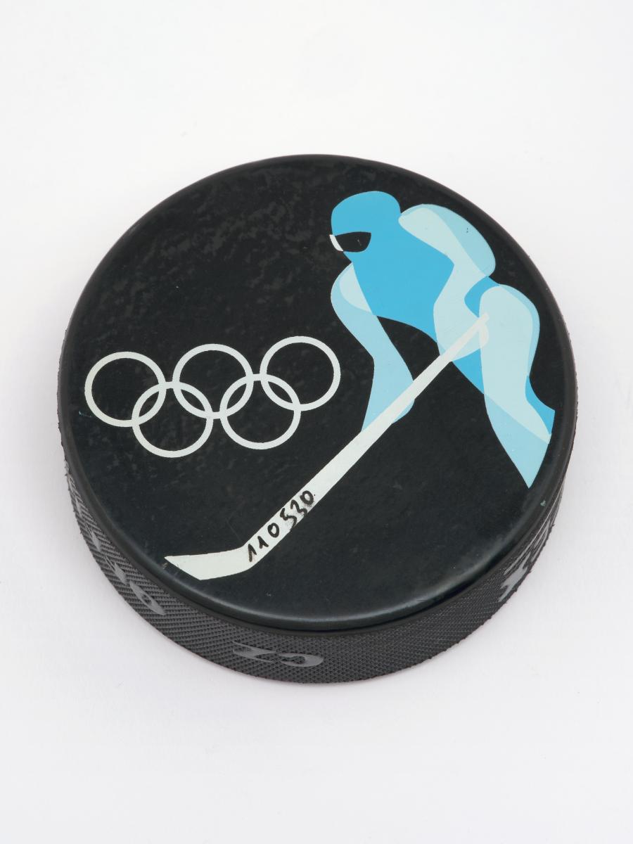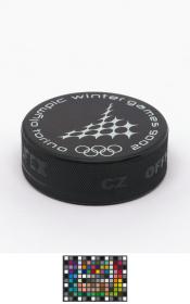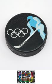 Ice hockey puck: ice hockey's pictogram with the Olympic Rings.