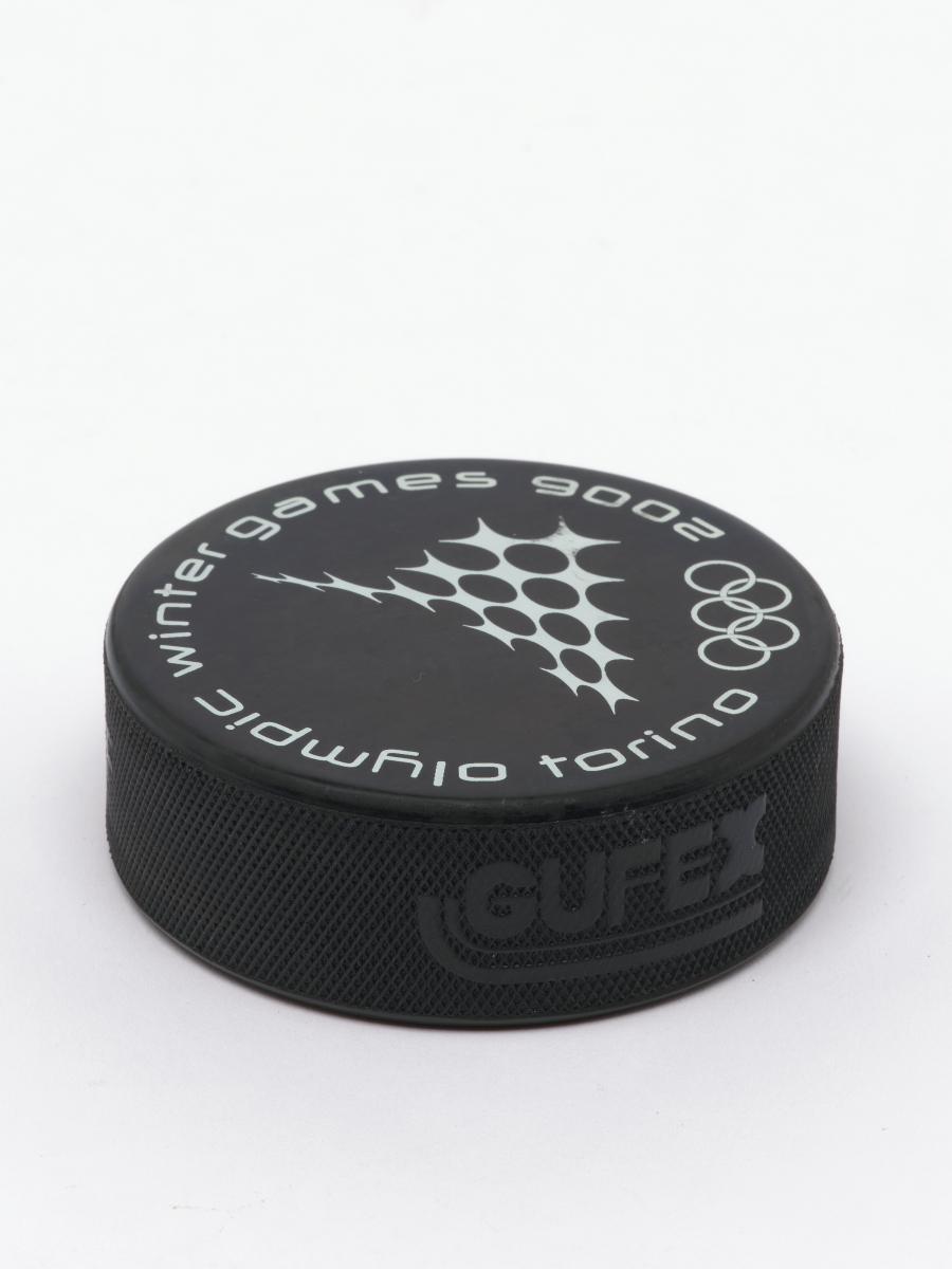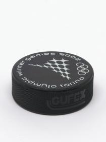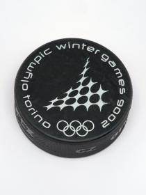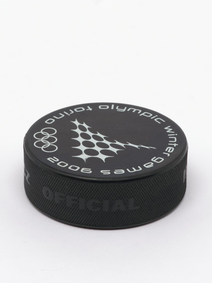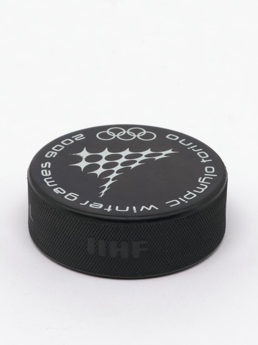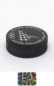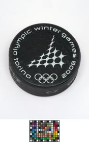 Torino 2006, ice hockey puck with the sport pictogram.