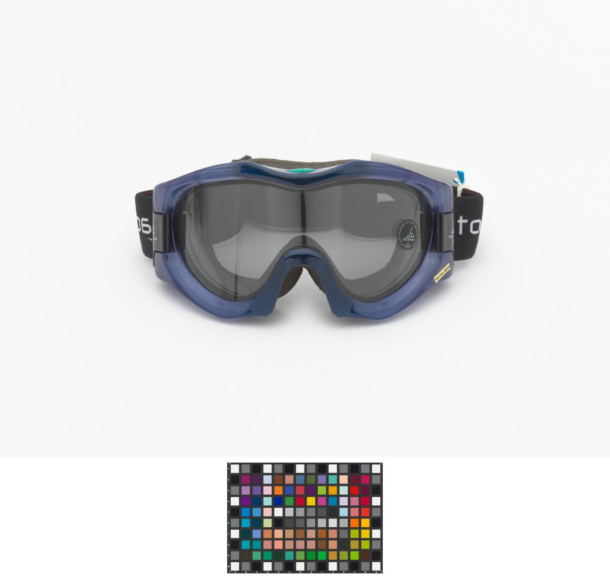 Ski goggles with the Games' emblem. Label with hologramme and safety instructions.