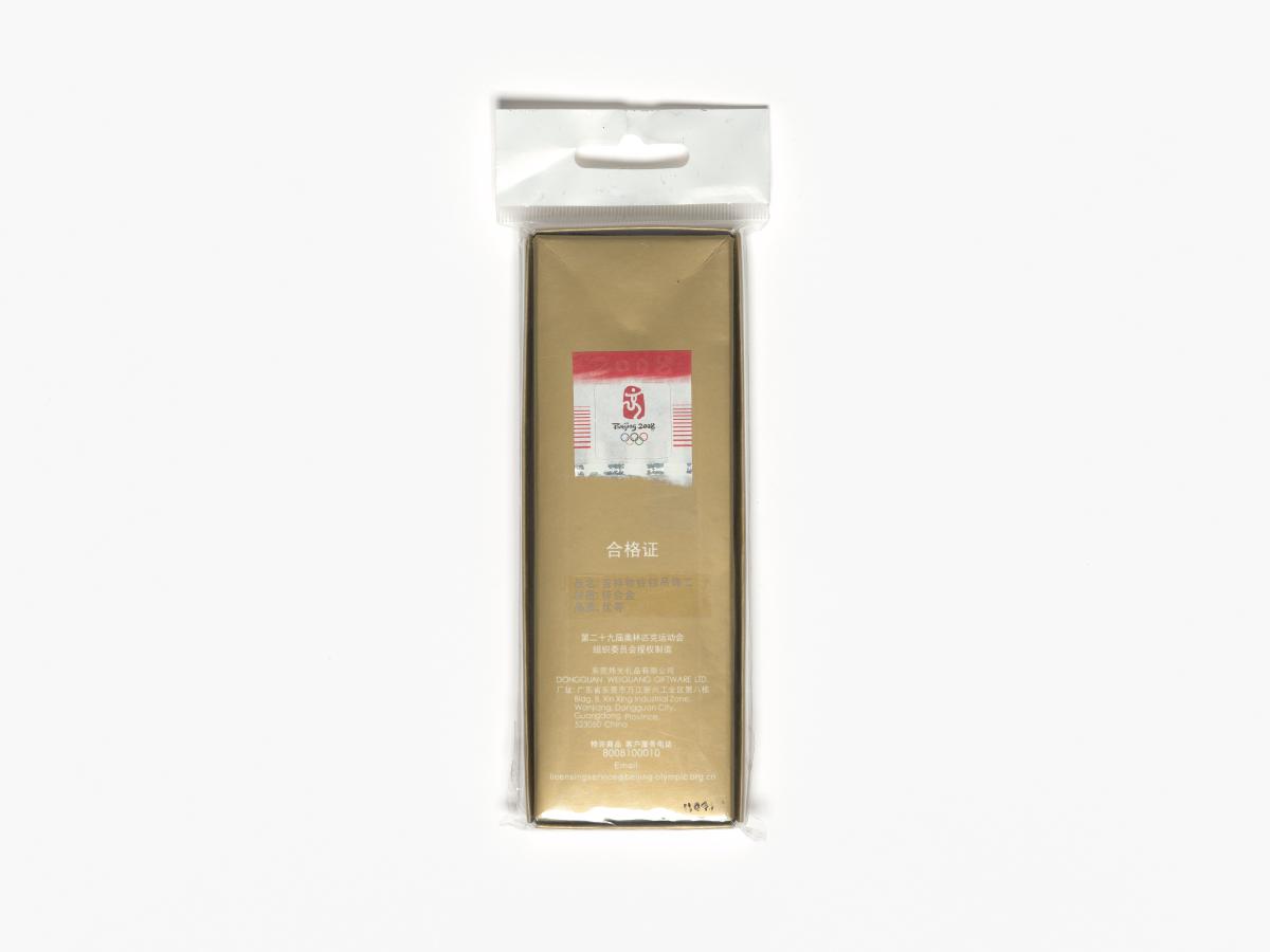 Mobile ornament string with Jingjing, one of the five Games' mascots. Original golden box with the Games' Emblem.