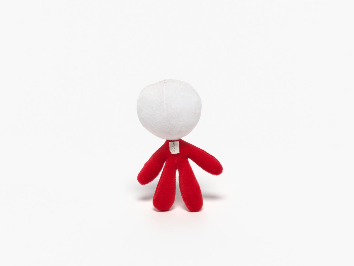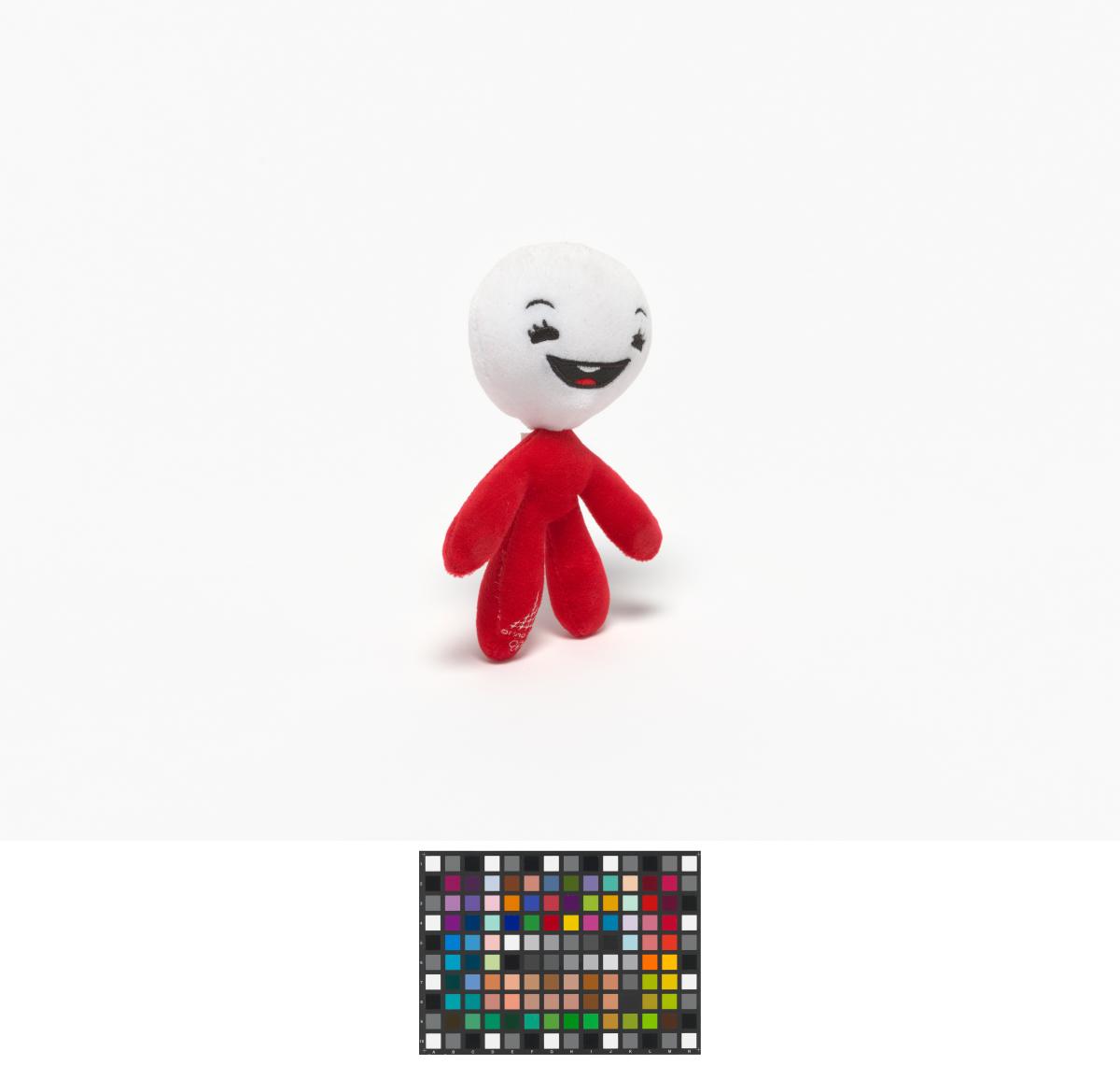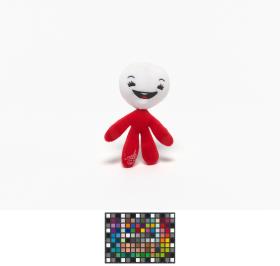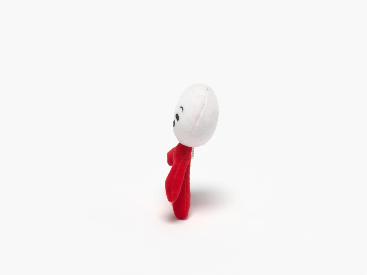 Small size stuffed toy mascot attach by a cordon to be passed around the neck.