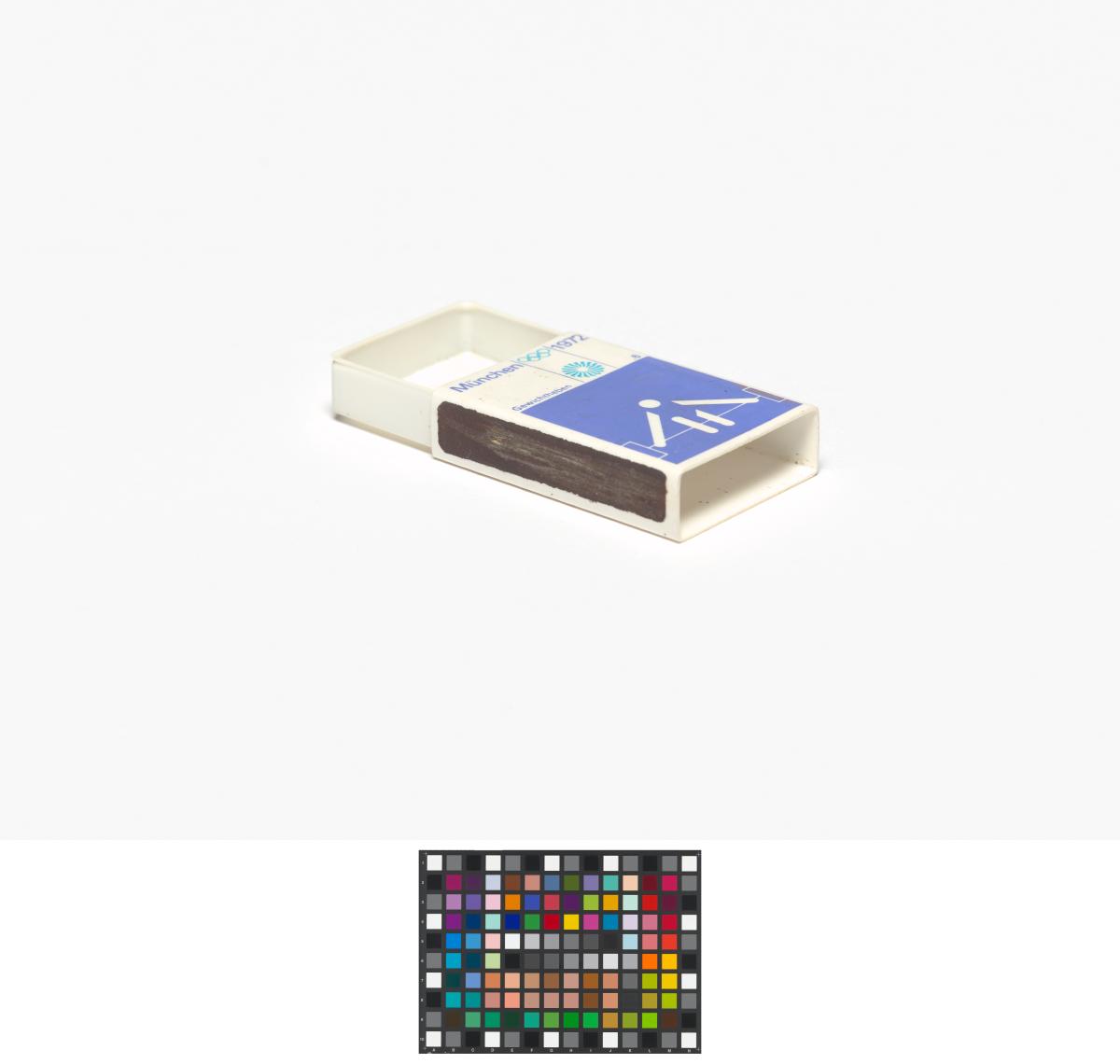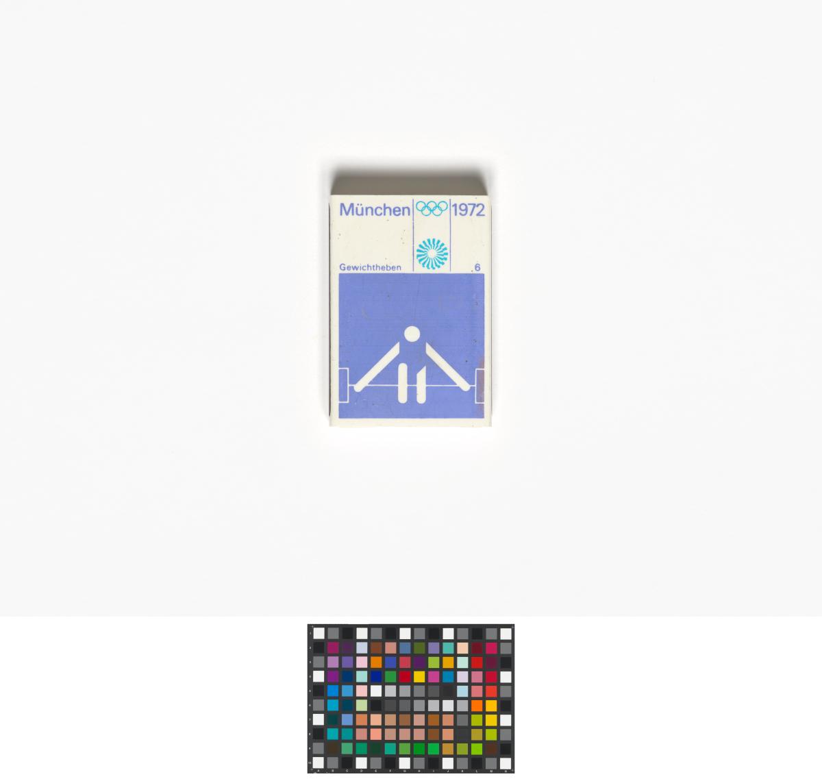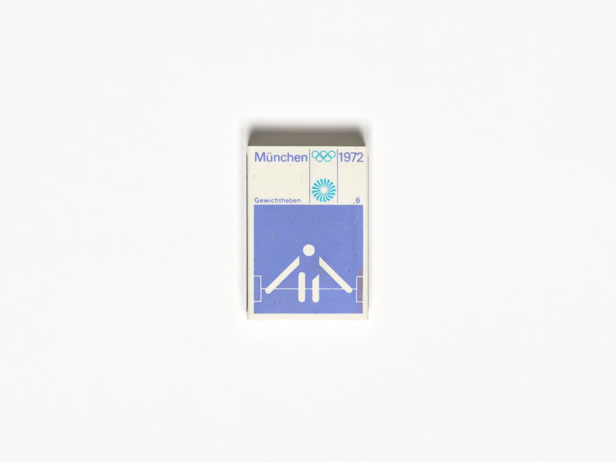 Munich 1972, matchbox with the weightlifting pictogram.
