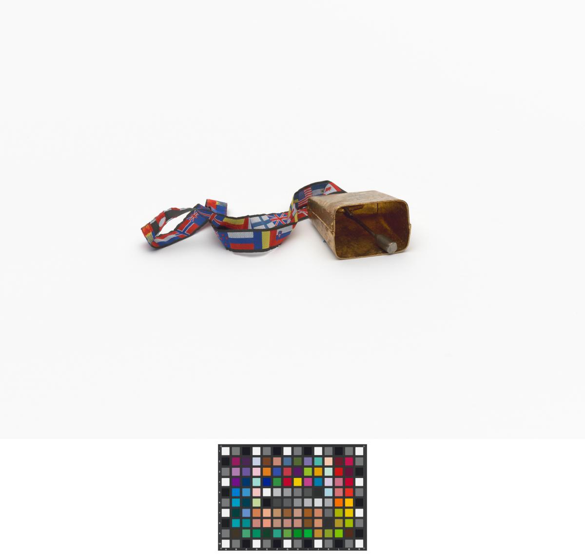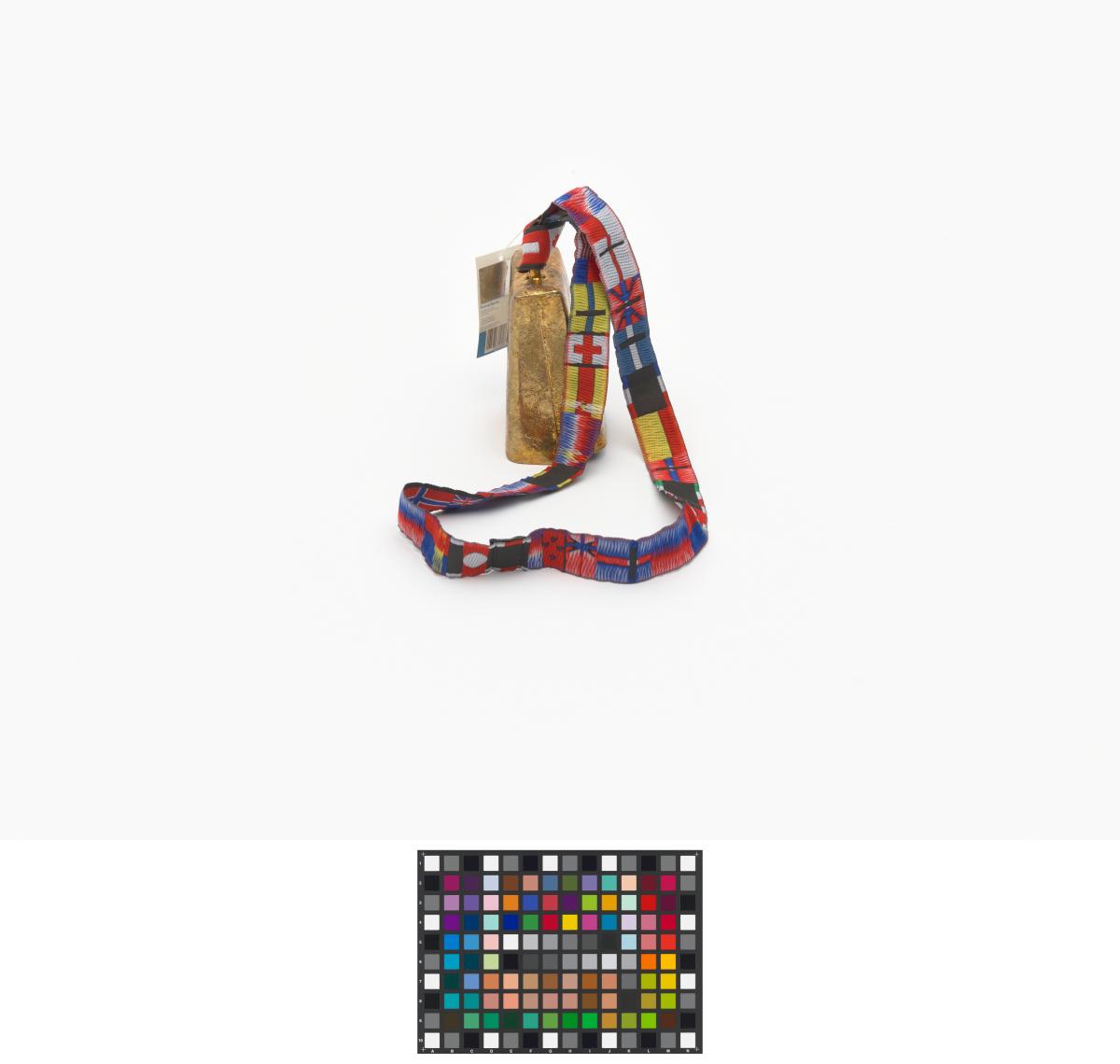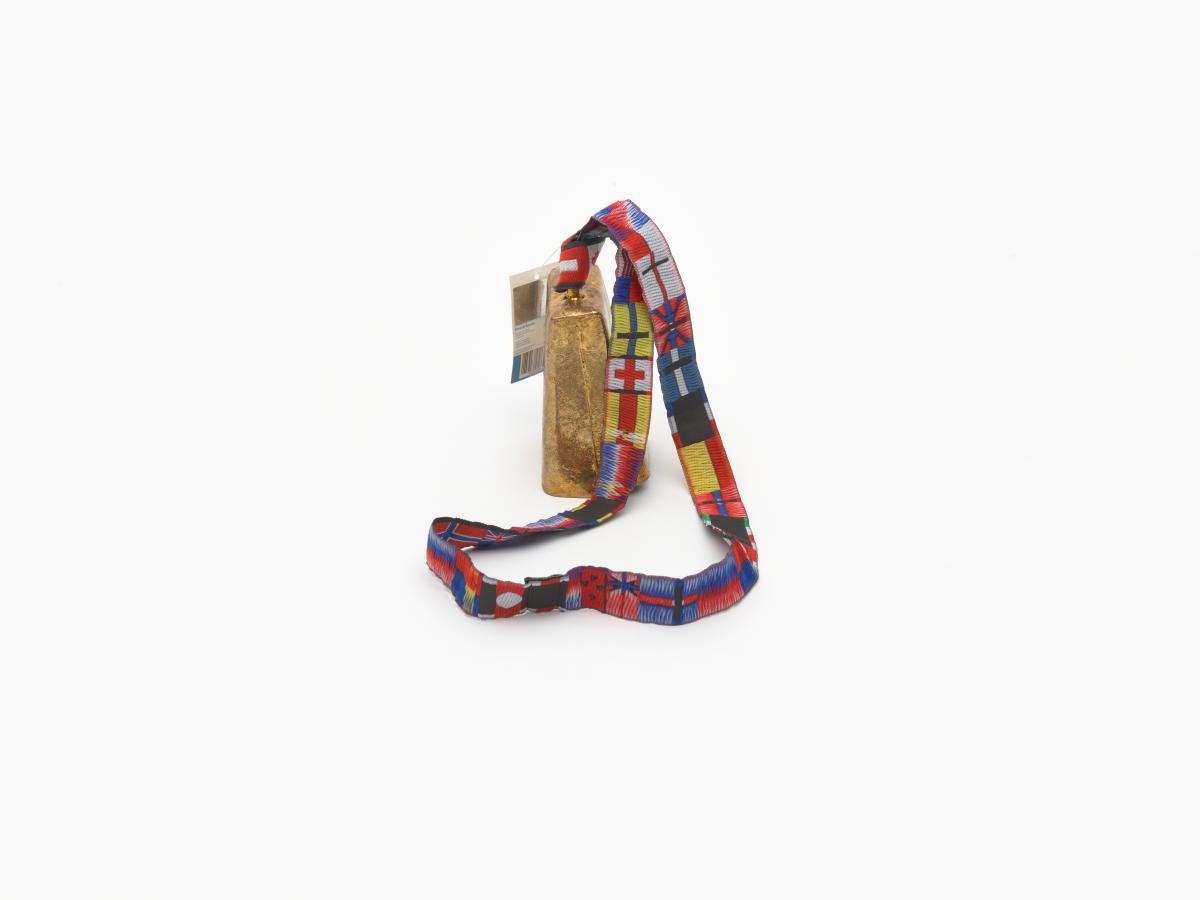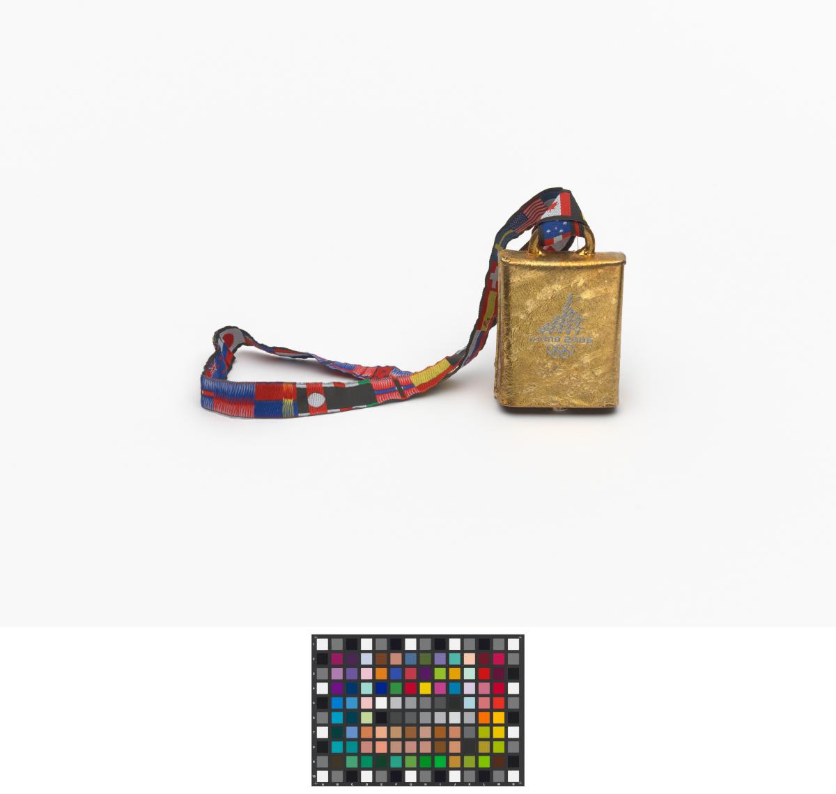At the middle of the bell, Games' Emblem. Thong with flags of differents States. Label with hologram and Games logo.