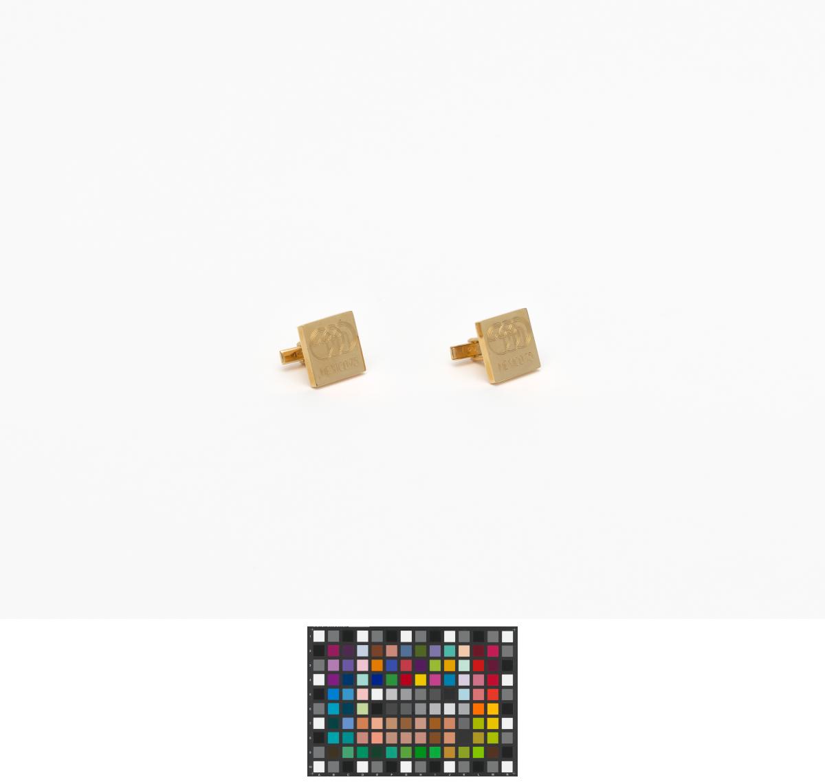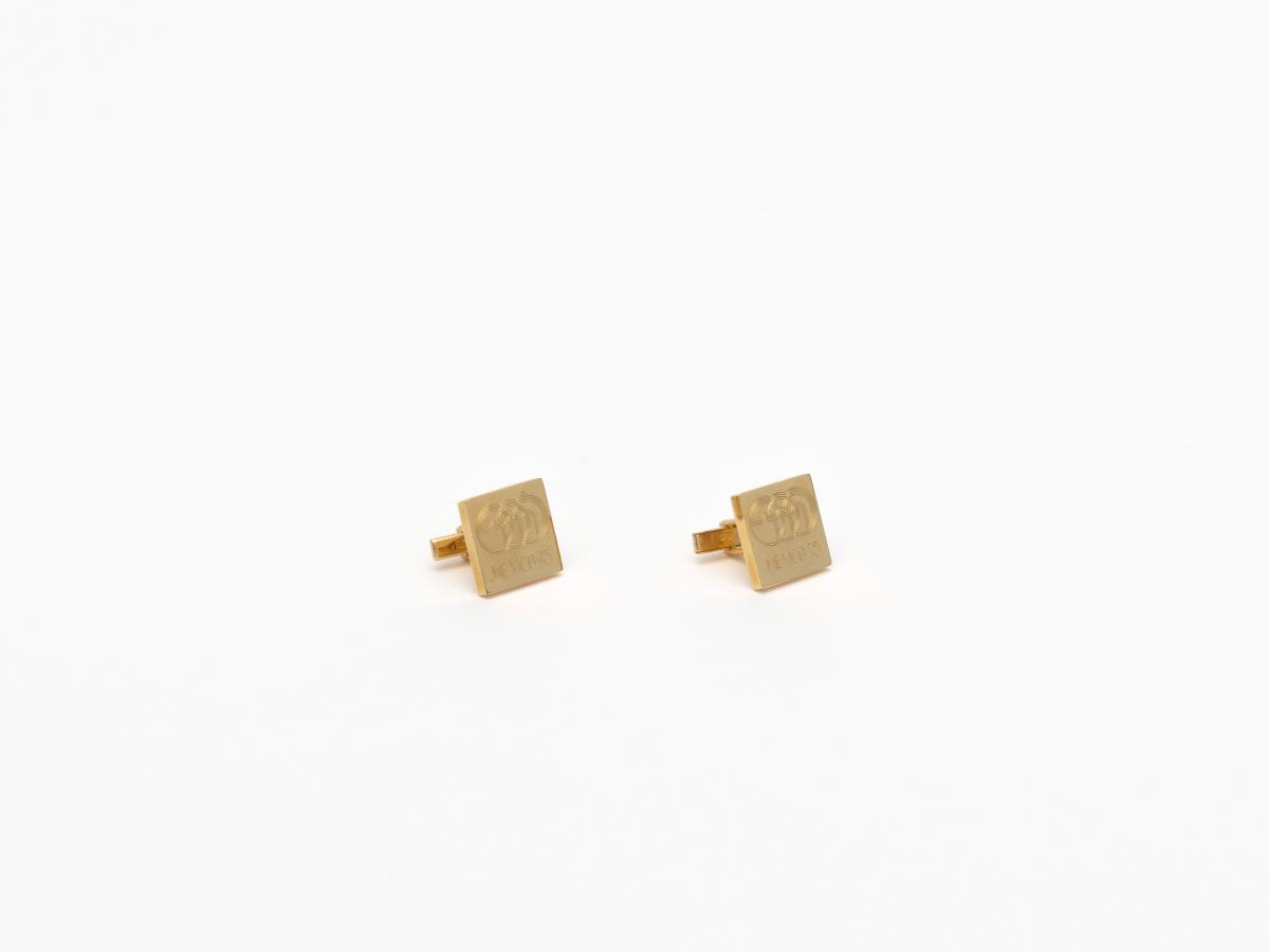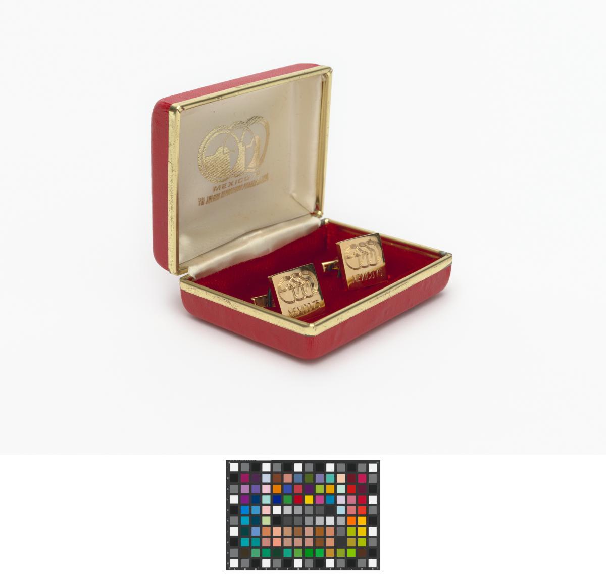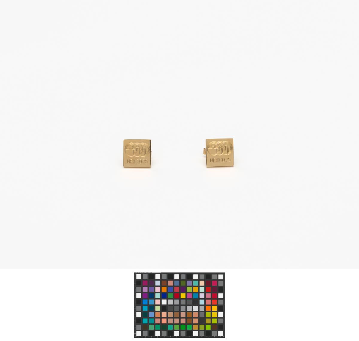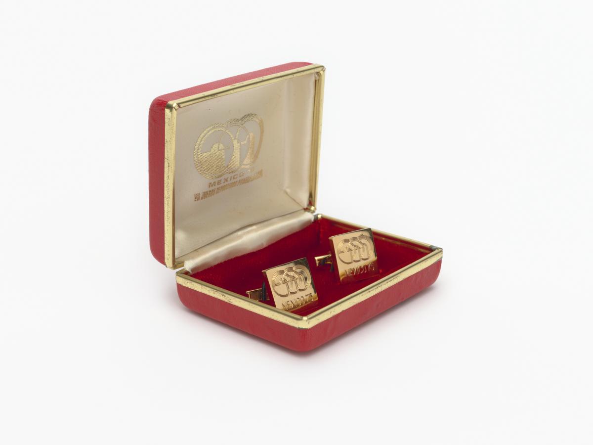 Gilded cufflinks with the emblem of the Pan American Games, caption: "Mexico 1975".