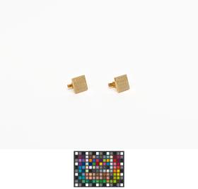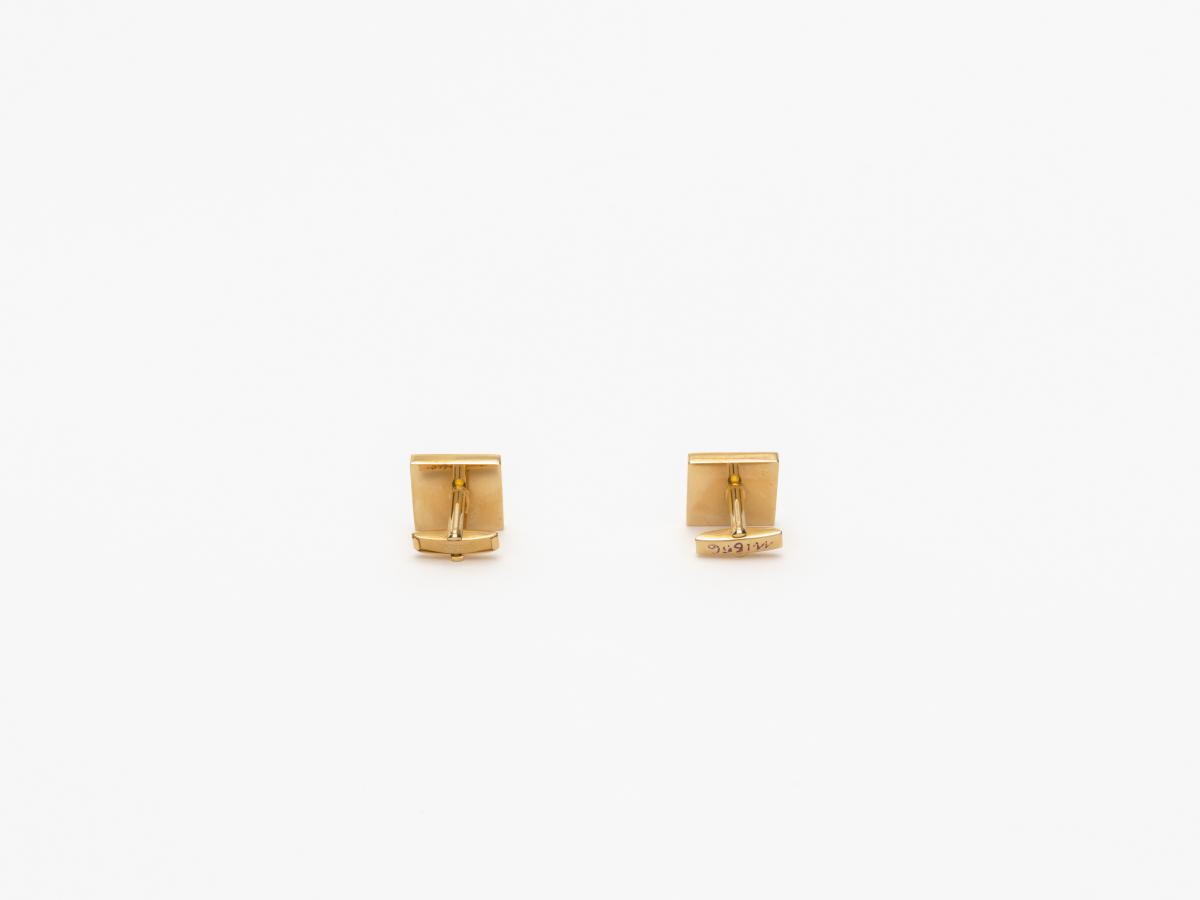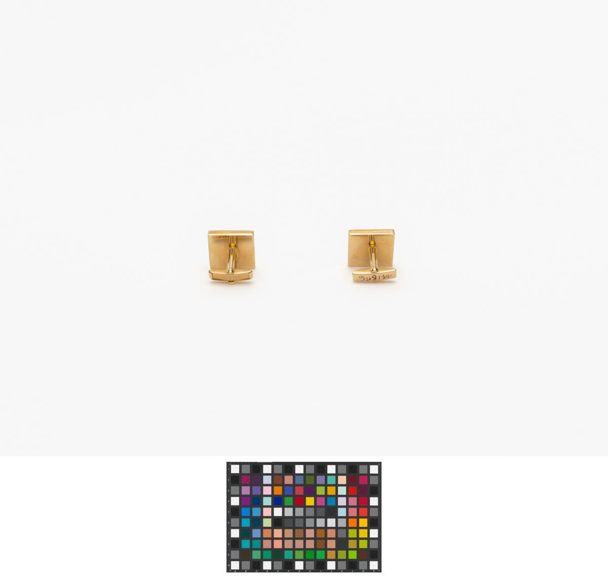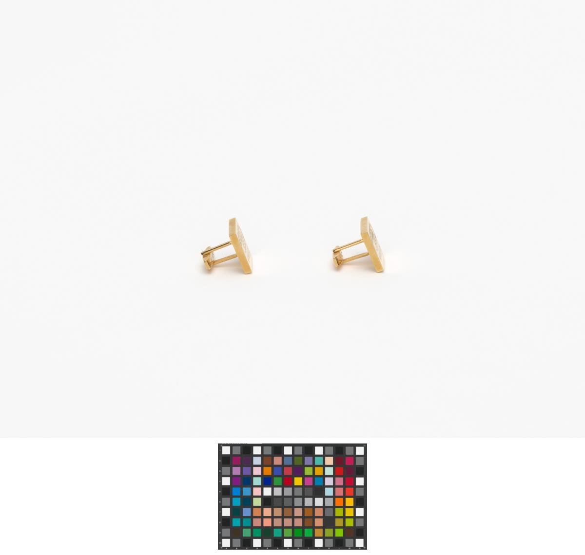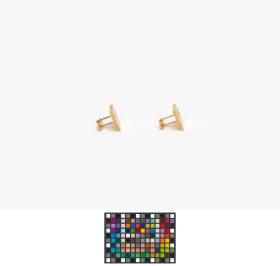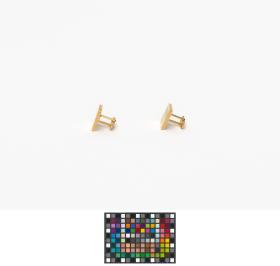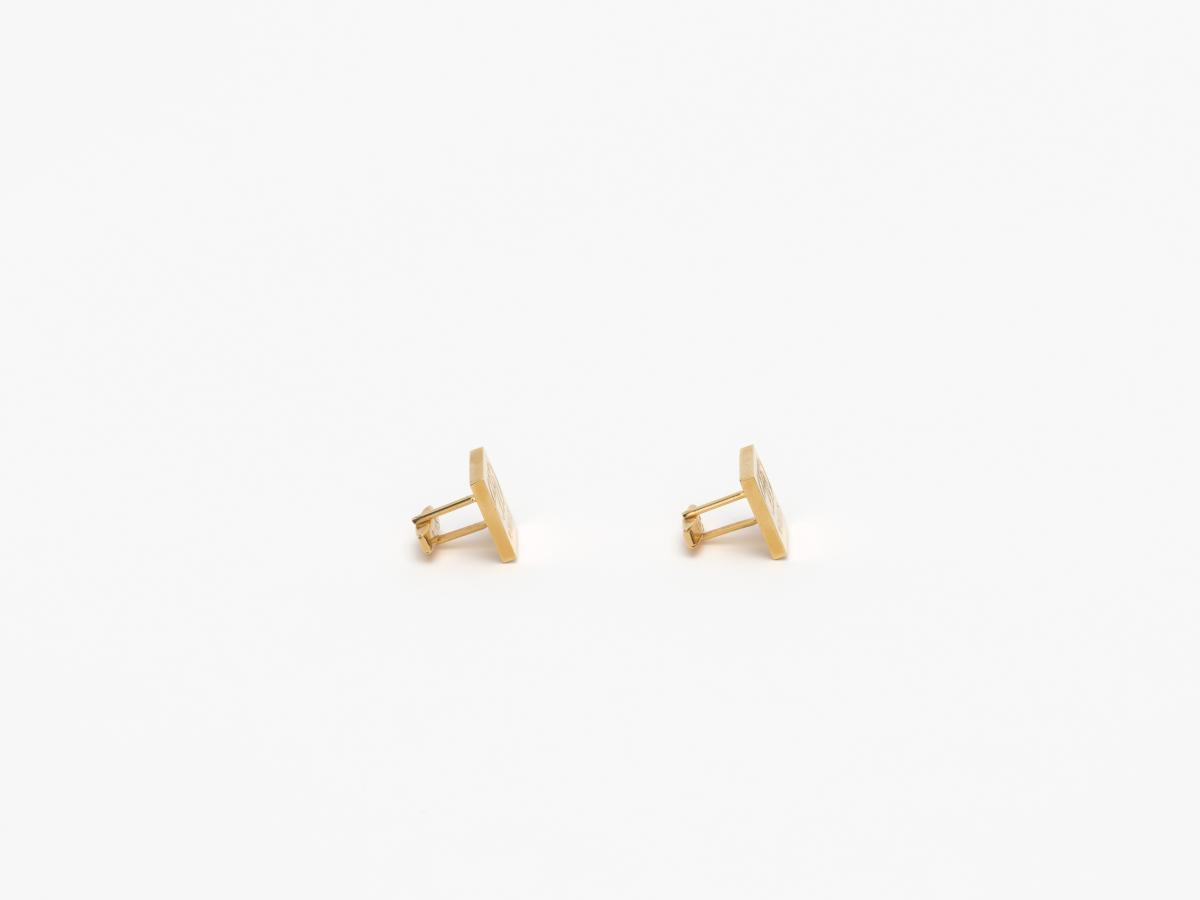 Gilded cufflinks with the emblem of the Pan American Games, caption: "Mexico 1975".