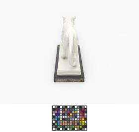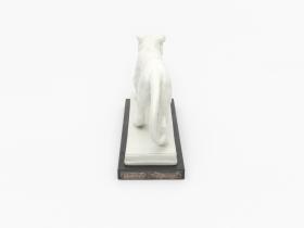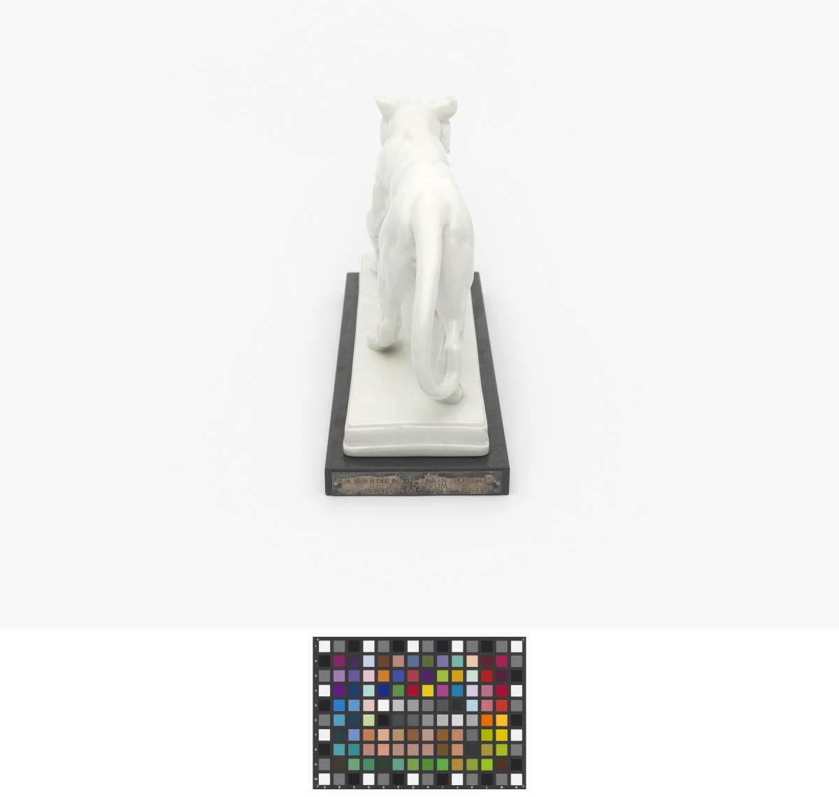 Chinaware lion put on an ebony pedestal. Notice on the plaque: "1912-1937. Dem Vater der internationalen Leichtathletik J.S. Edström gewidmet von den Deutschen Leichtathleten".
