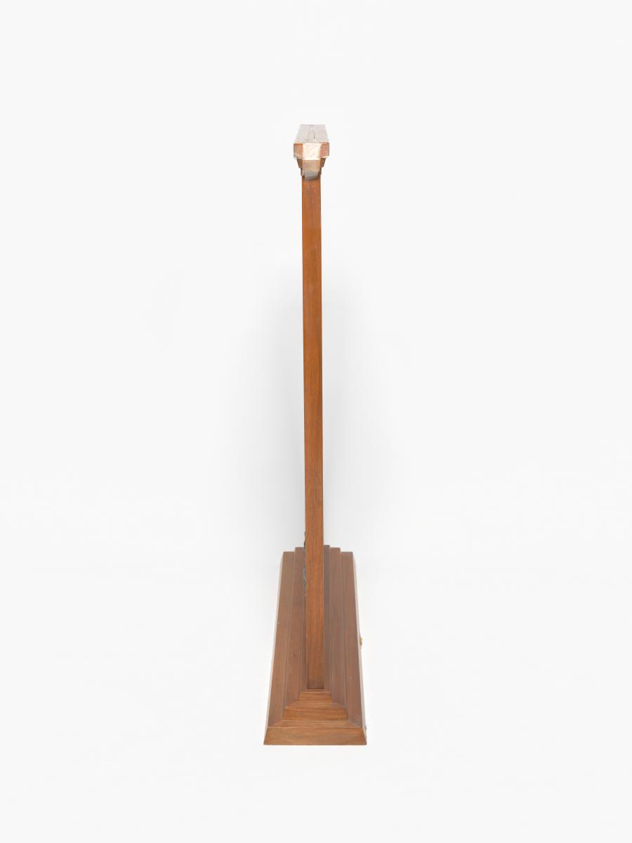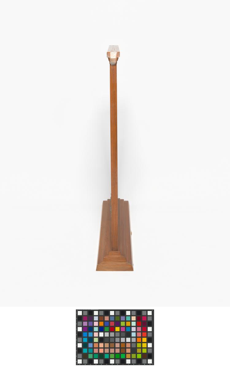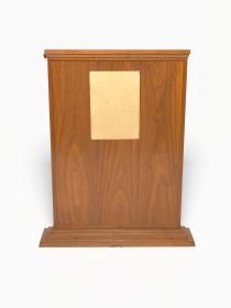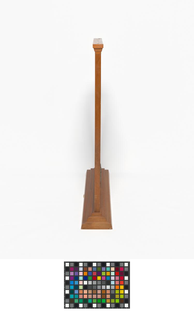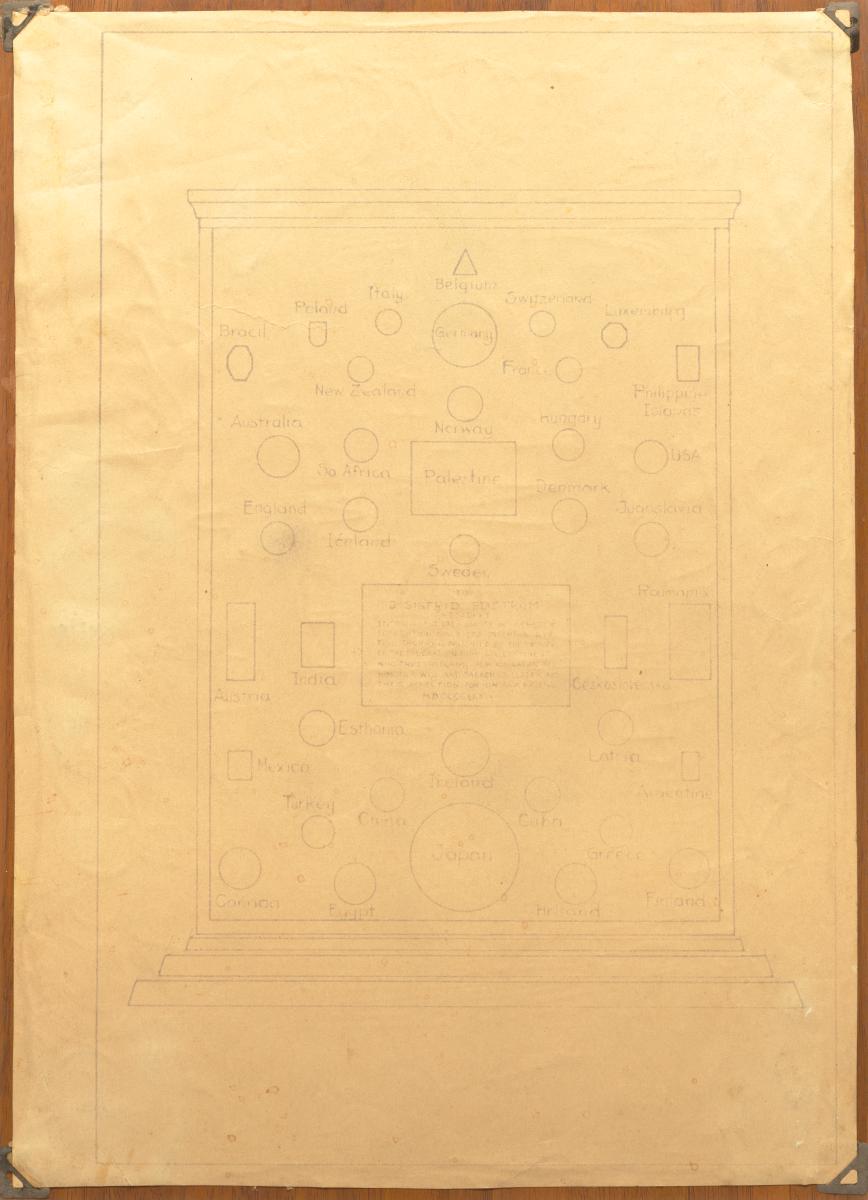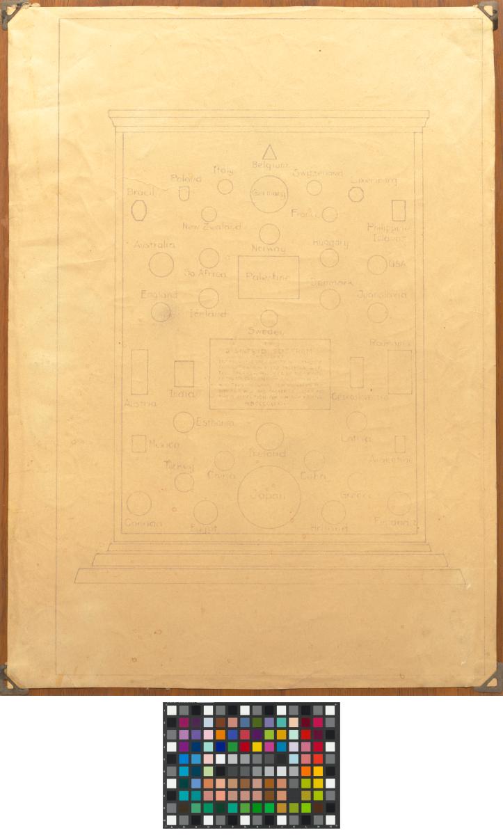 Wooden plaque on a piedestal with 39 medals and a bronze plaque with the caption: "TO / J. SIGFRID EDSTRÖM / PRESIDENT / INTERNATIONAL AMATEUR ATHLETIC / FEDERATION SINCE ITS INCEPTION IN 1912, / THIS TROPHY IS PRESENTED BY THE MEMBERS / OF THE FEDERATION FROM SIX CONTINENTS, / WHO THUS PROCLAIM THEIR ADMIRATION FOR / HIM AS A WISE AND SAGACIOUS LEADER, AND / THEIR AFFECTION FOR HIM AS A FRIEND. / MDCCCCXXXIV".
