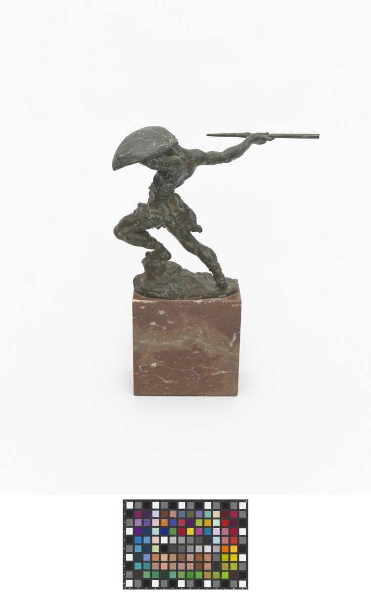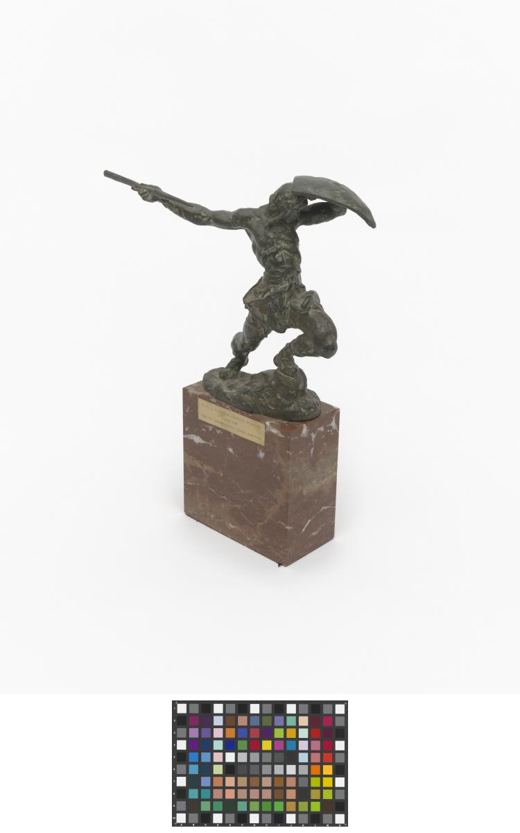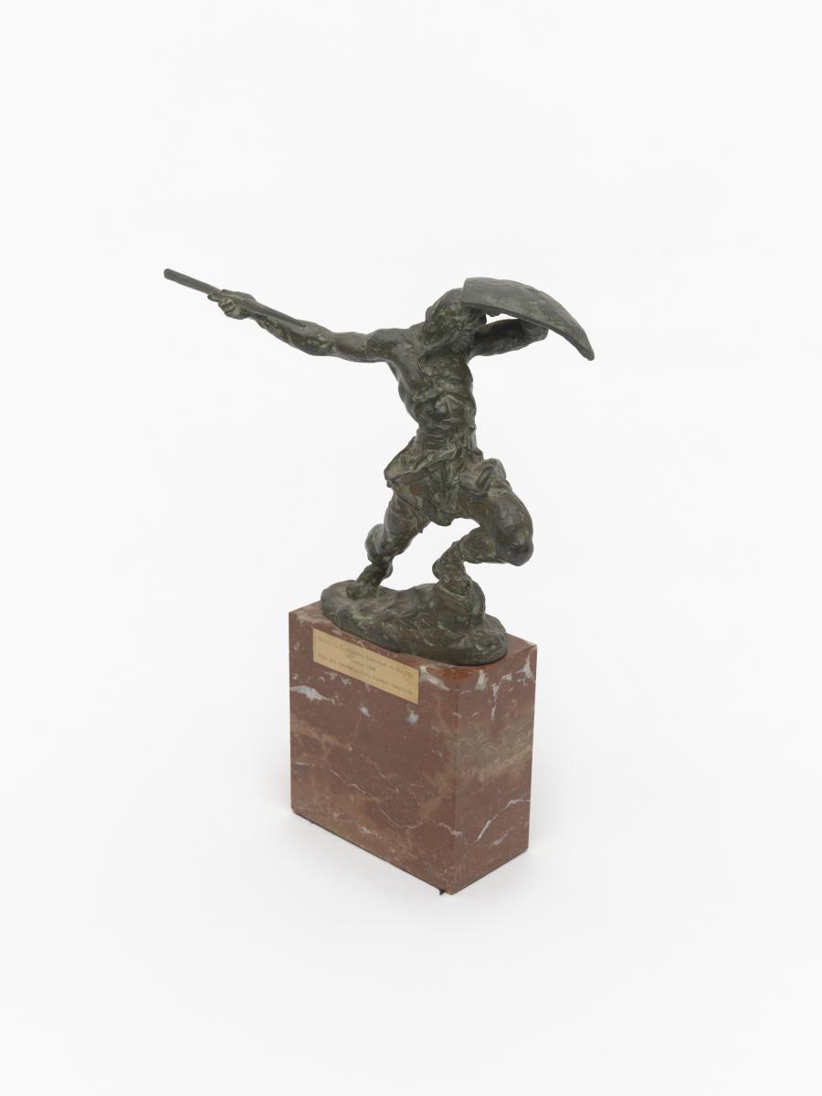 Athlete with spear and shield given to J. Sigfrid Edström by the National Olympic Committee of Czechoslovakia.