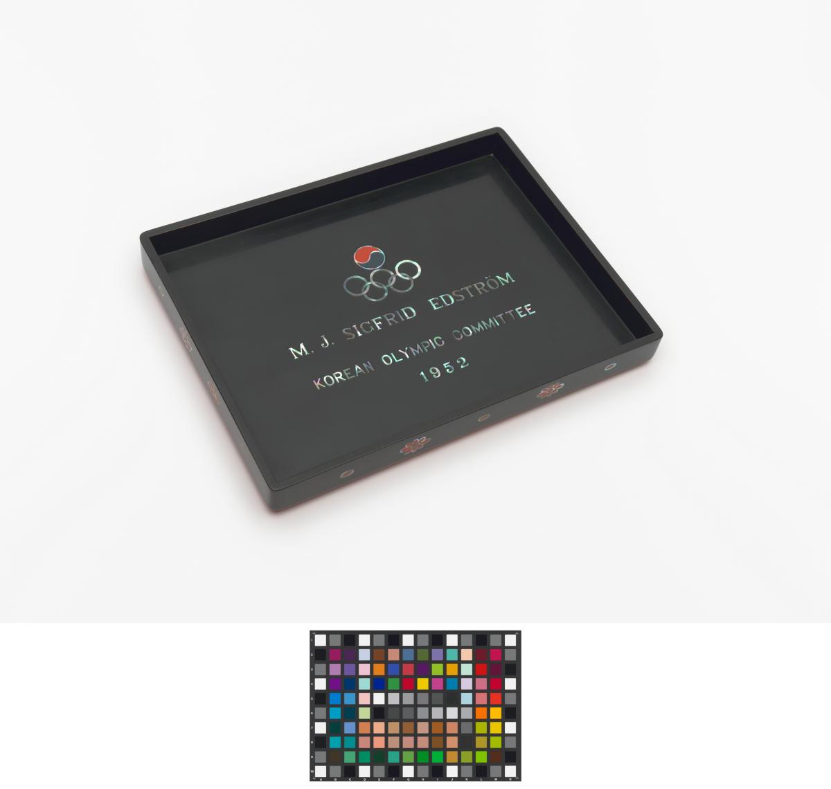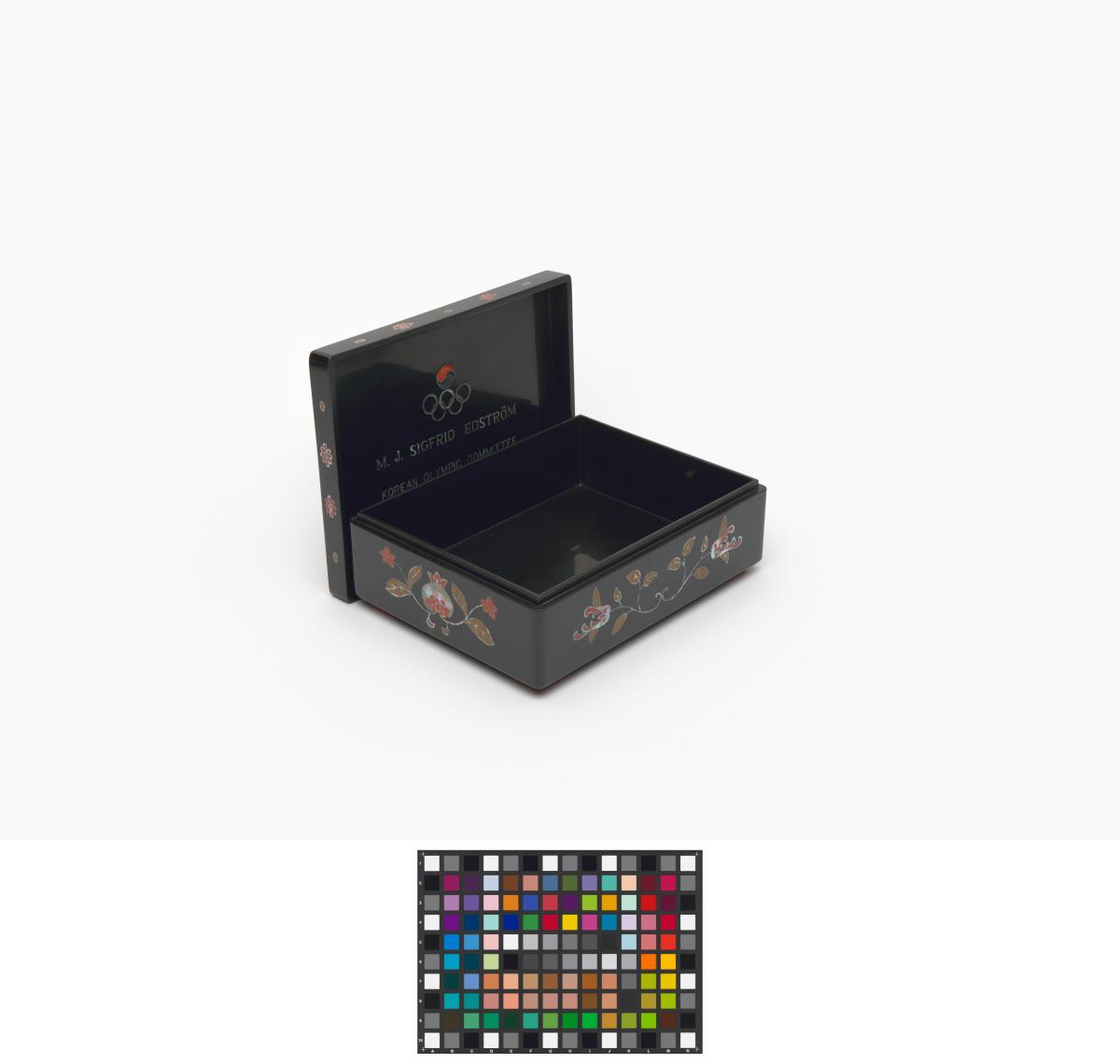 Box in lacquer and mother-of-pearl given to J. Sigfrid Edström by the Korean Olympic Committee.