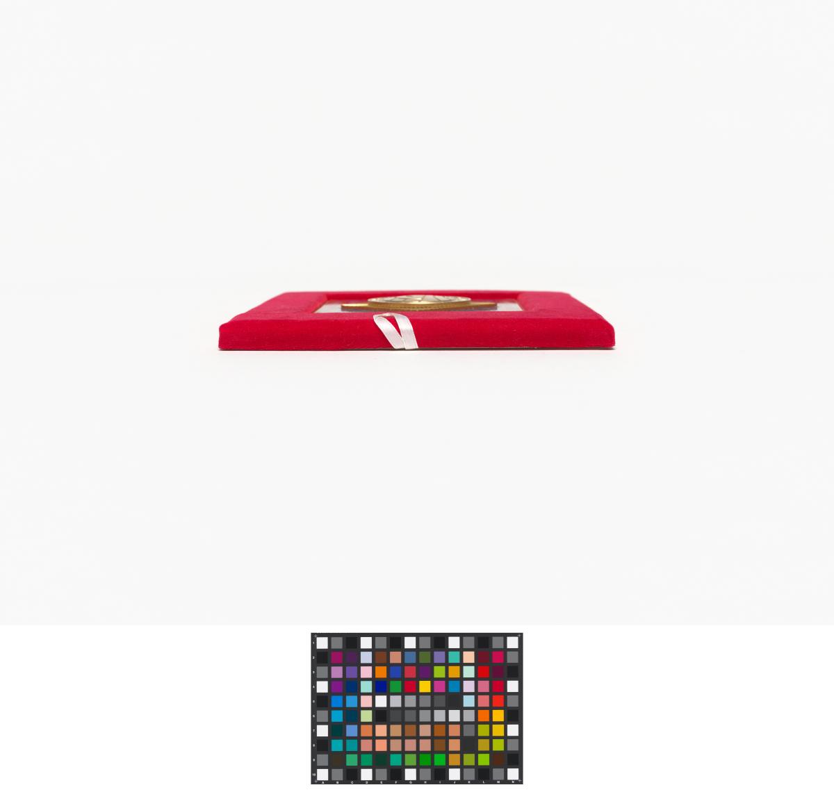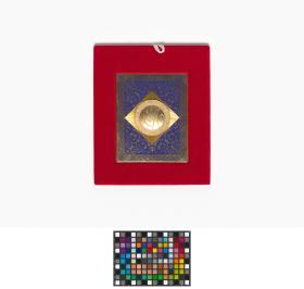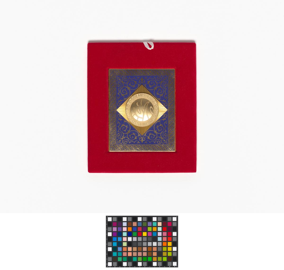 Metal plaque with the Asian Games emblem and the caption: "Seventh Asian Games Tehran 1974", on a velvet plaque with stand.
