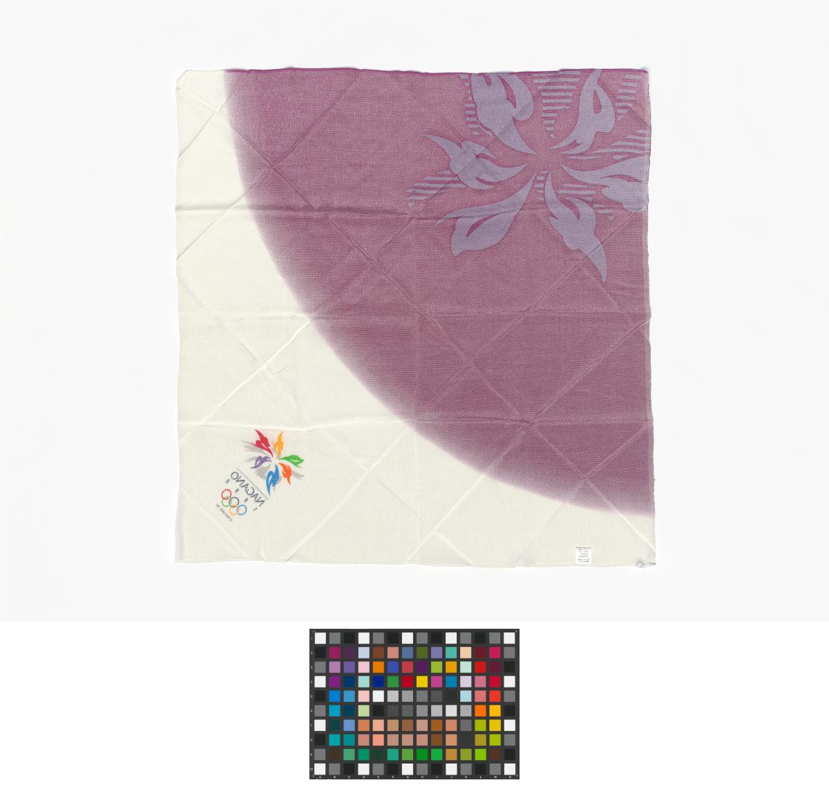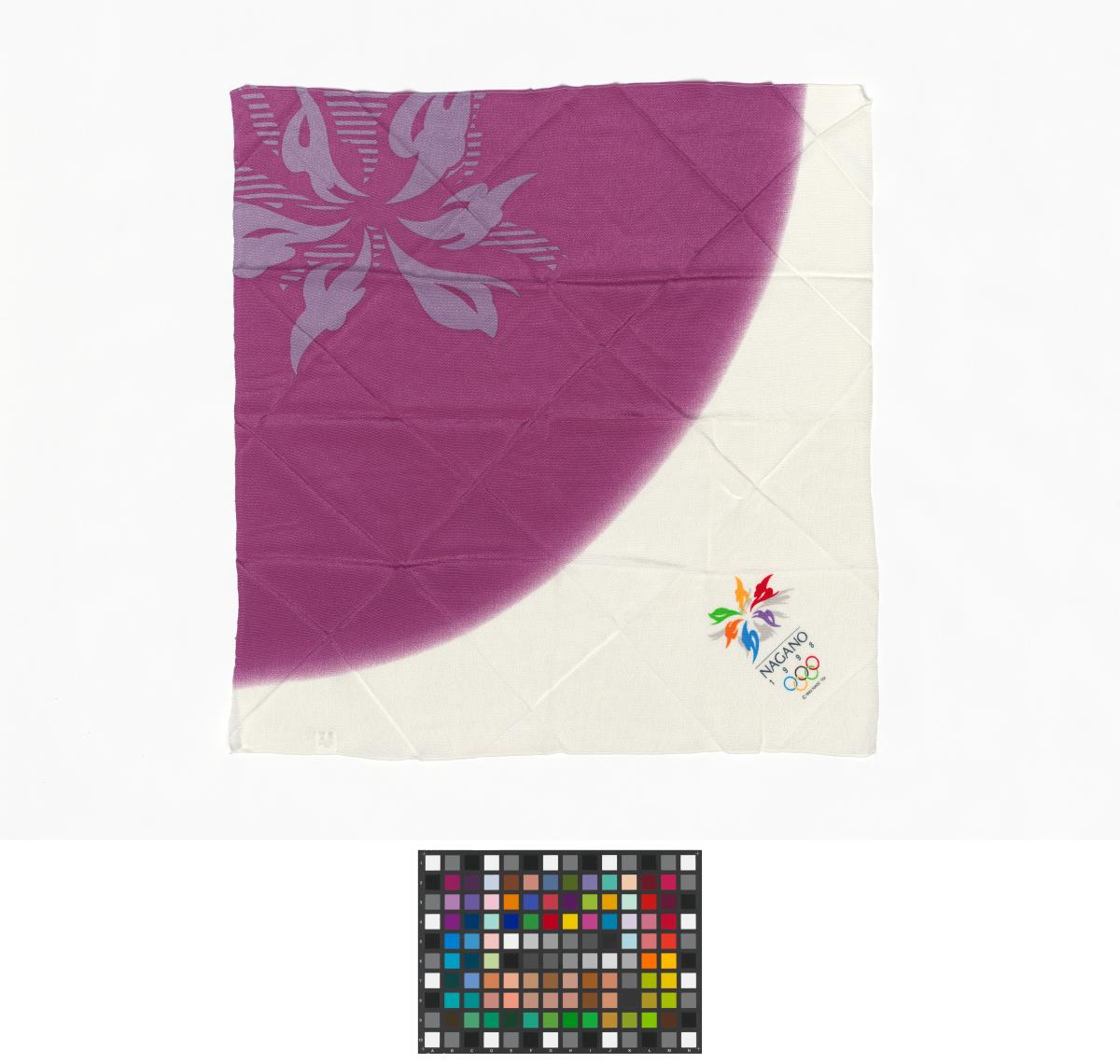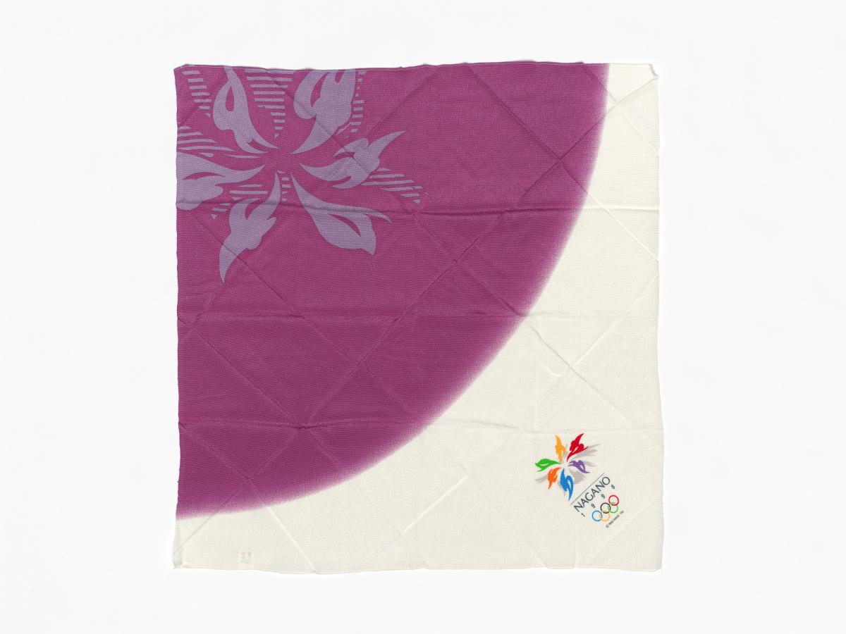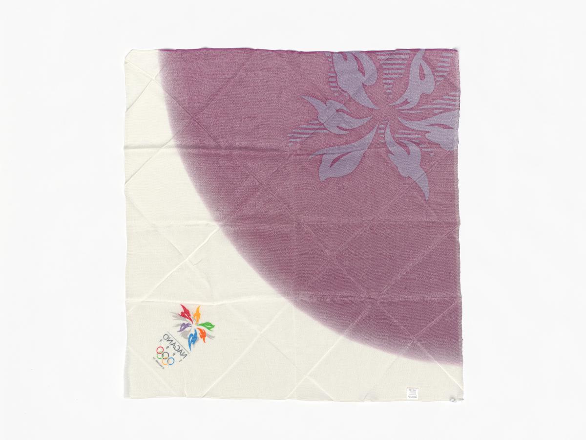 Nagano 1998, purple and white scarf with the emblem of the Games.