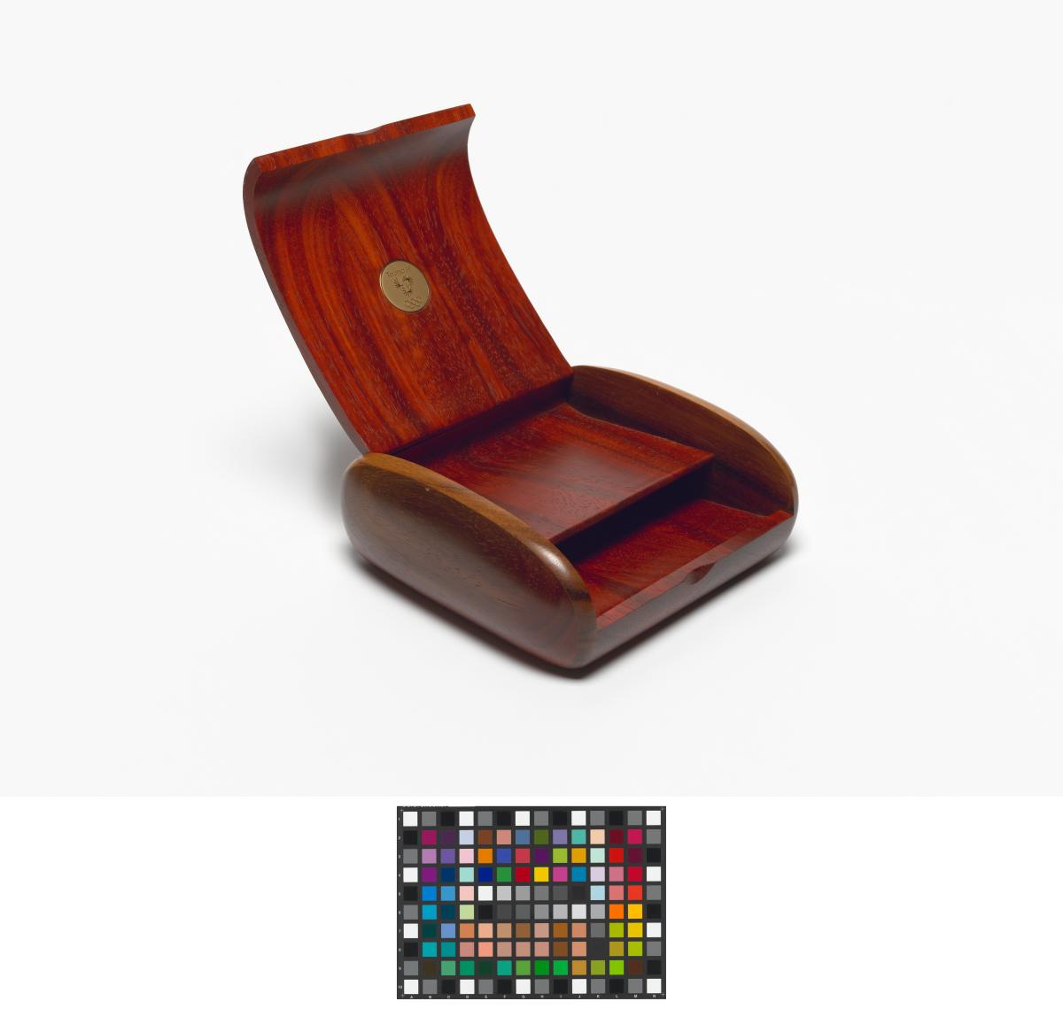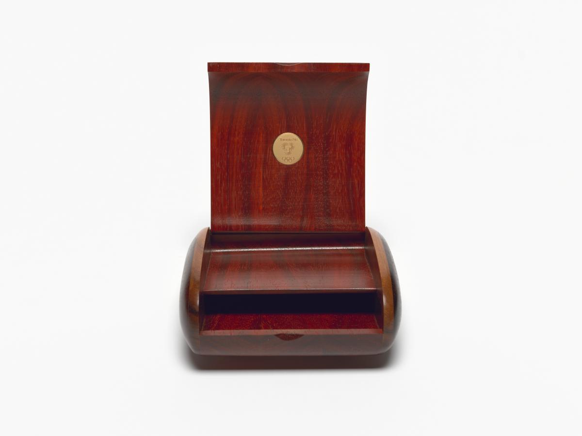 Wooden box with two compartments and a medal with the bid emblem and the caption: "Toronto '96". Manufacturer's name.