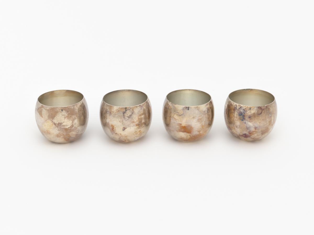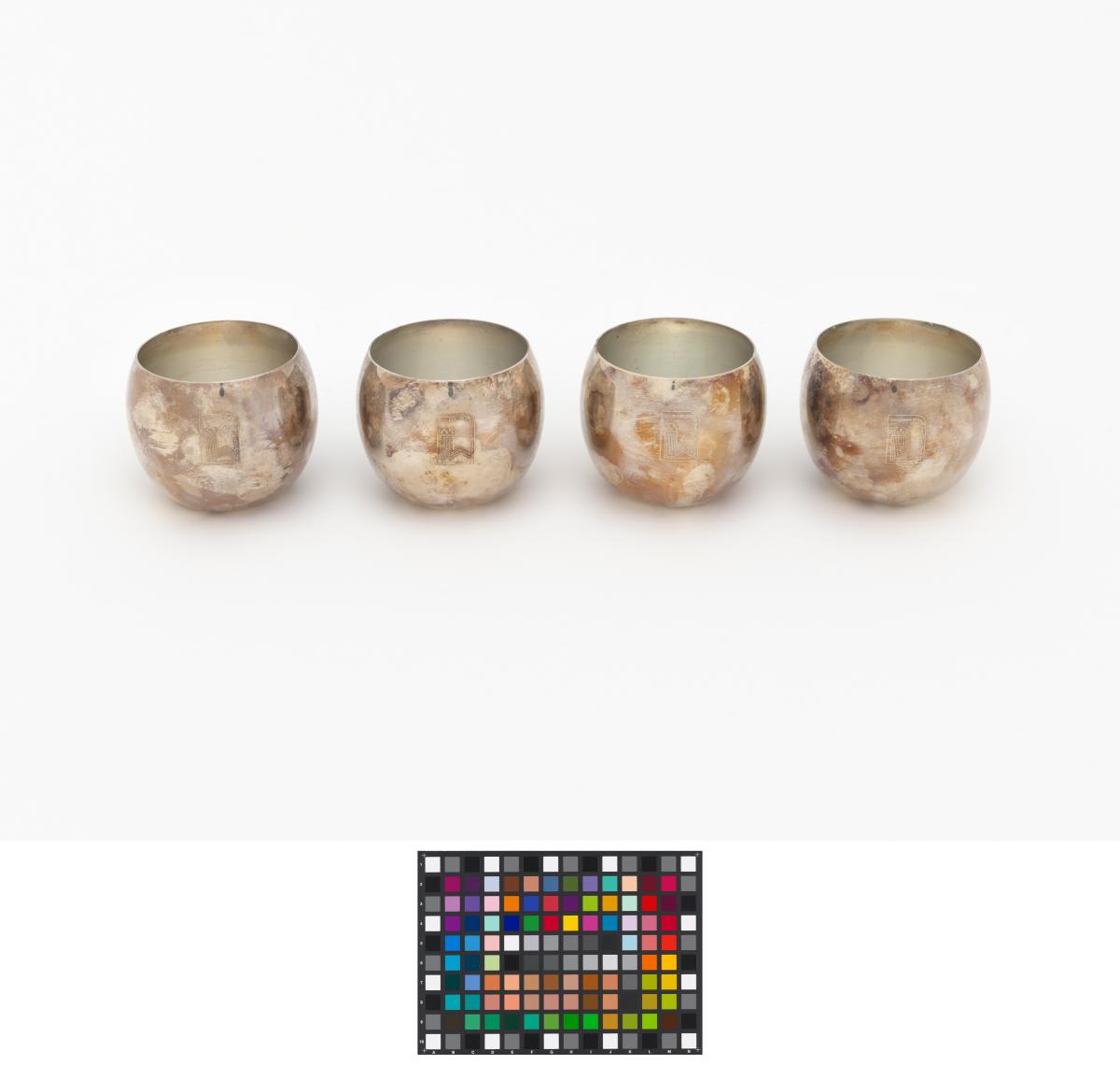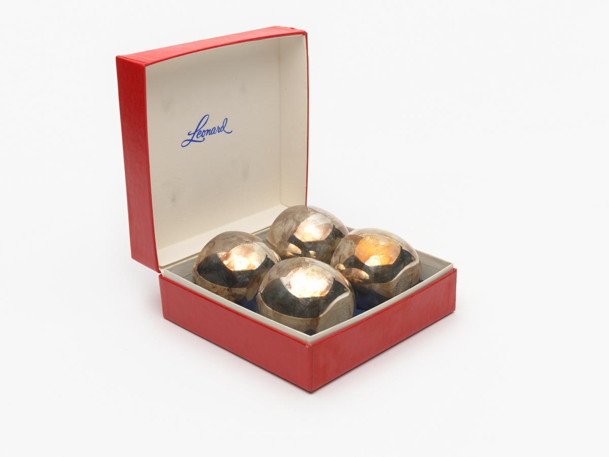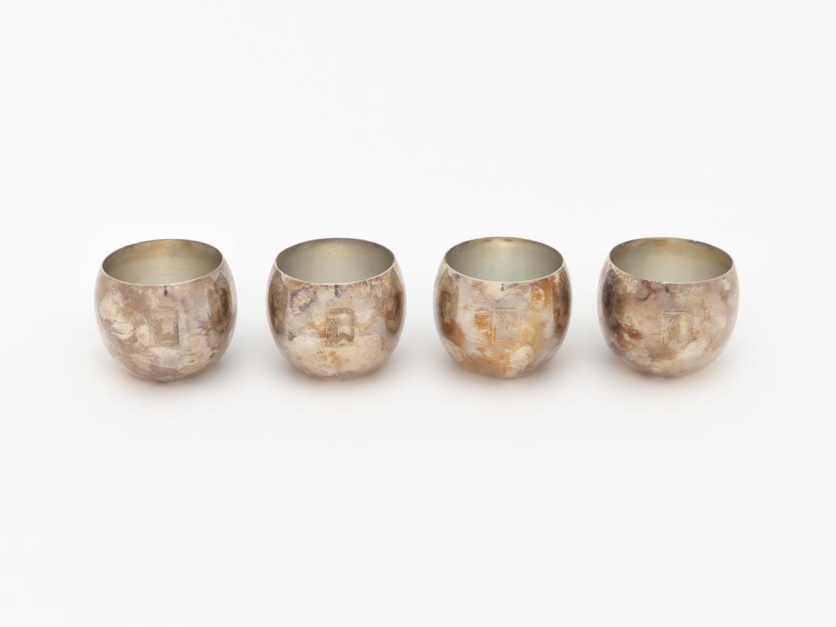 Four goblets with the Games' emblem, the Olympic rings and the caption: "XIII Olympic Winter Games Lake Placid 1980", in a case, presented during the 79th IOC session in Prague.