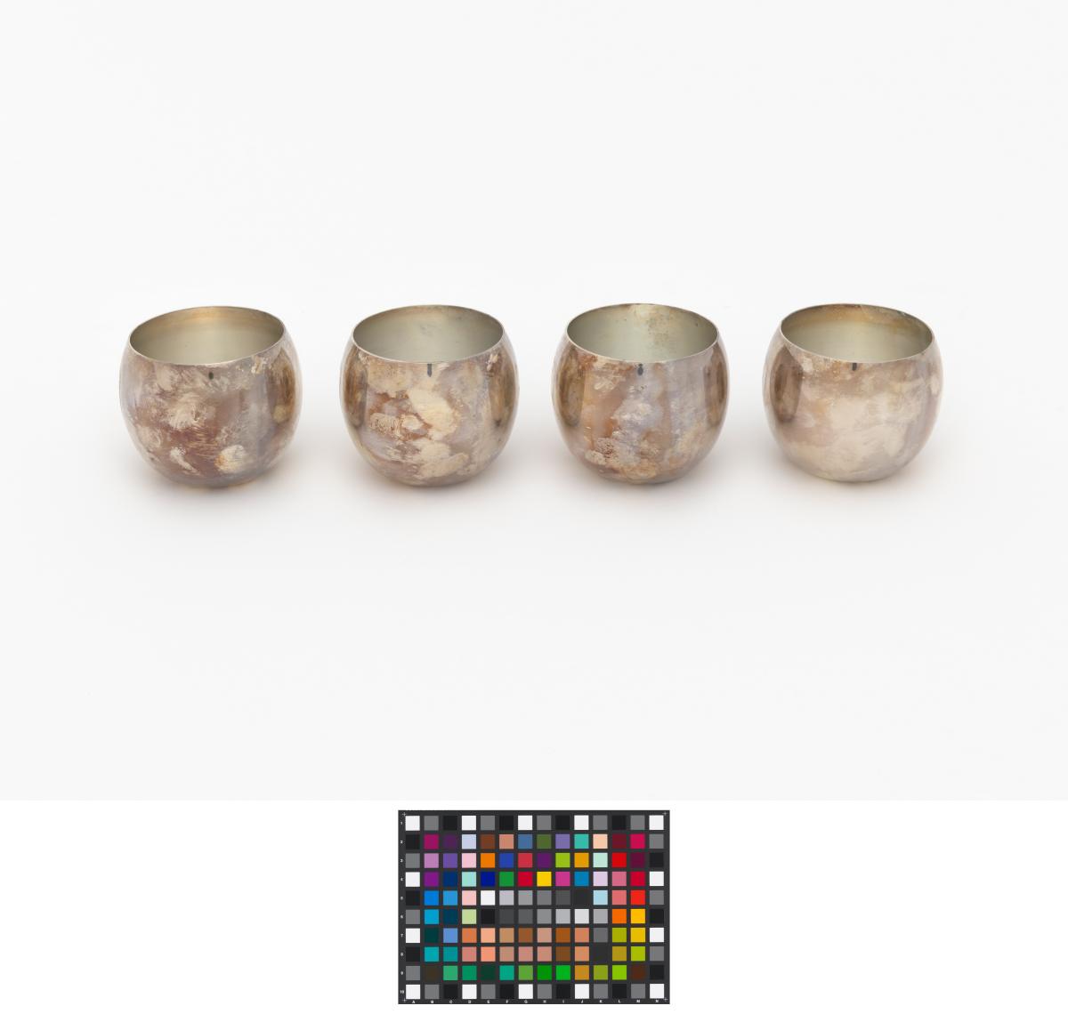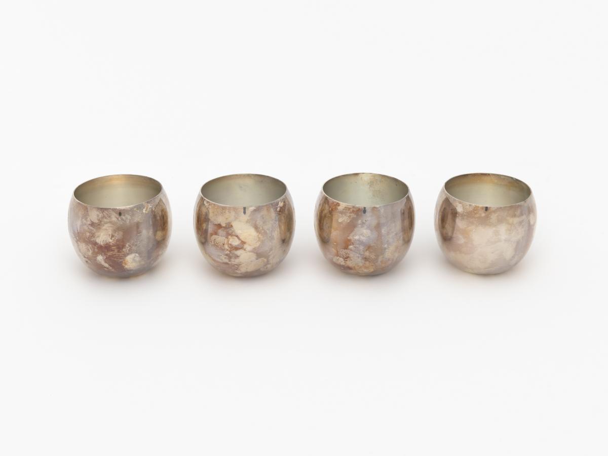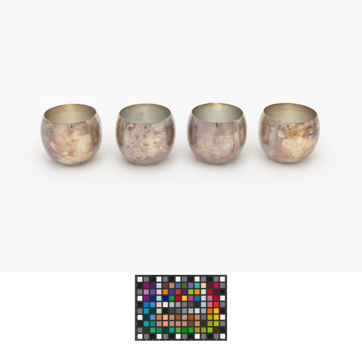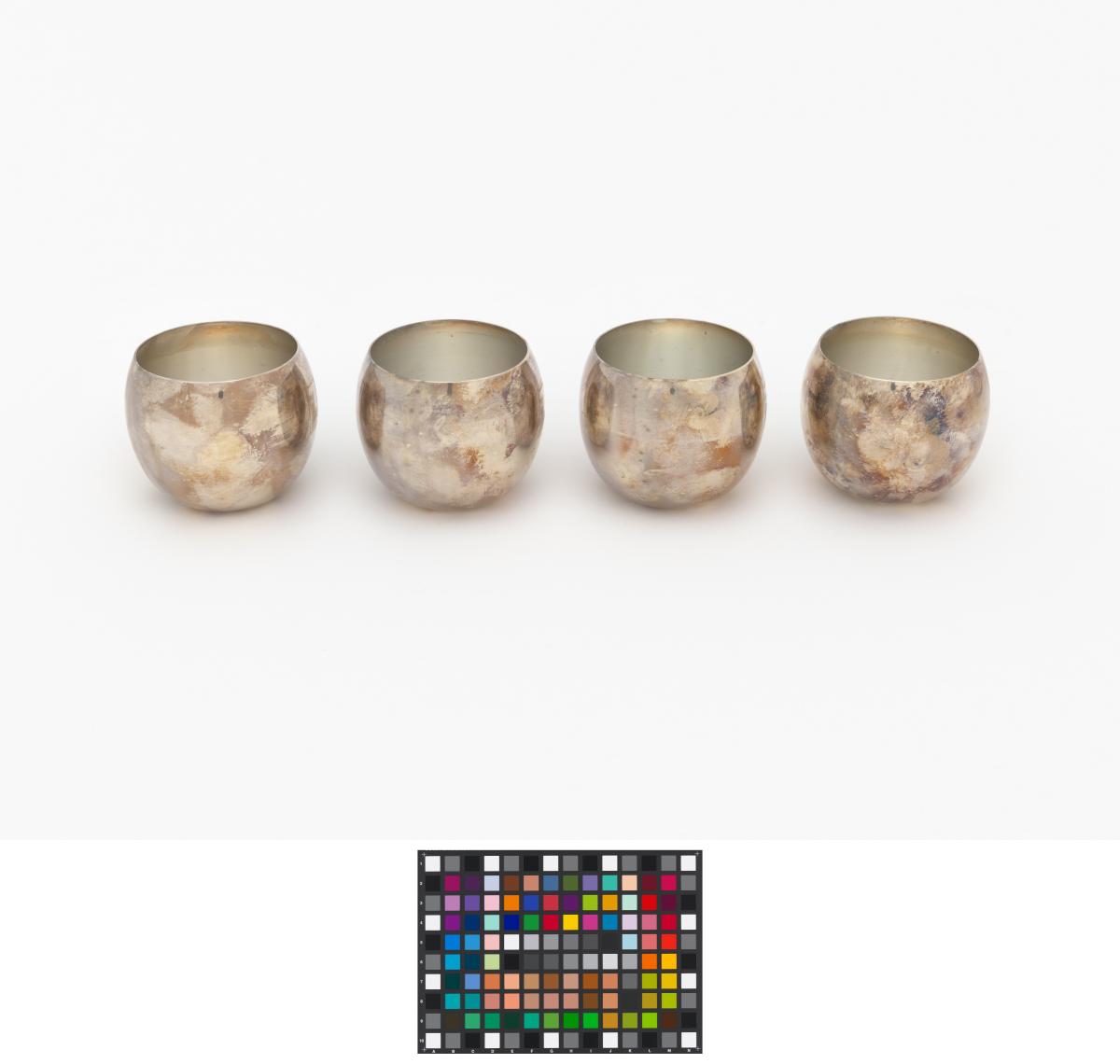 Four goblets with the Games' emblem, the Olympic rings and the caption: "XIII Olympic Winter Games Lake Placid 1980", in a case, presented during the 79th IOC session in Prague.
