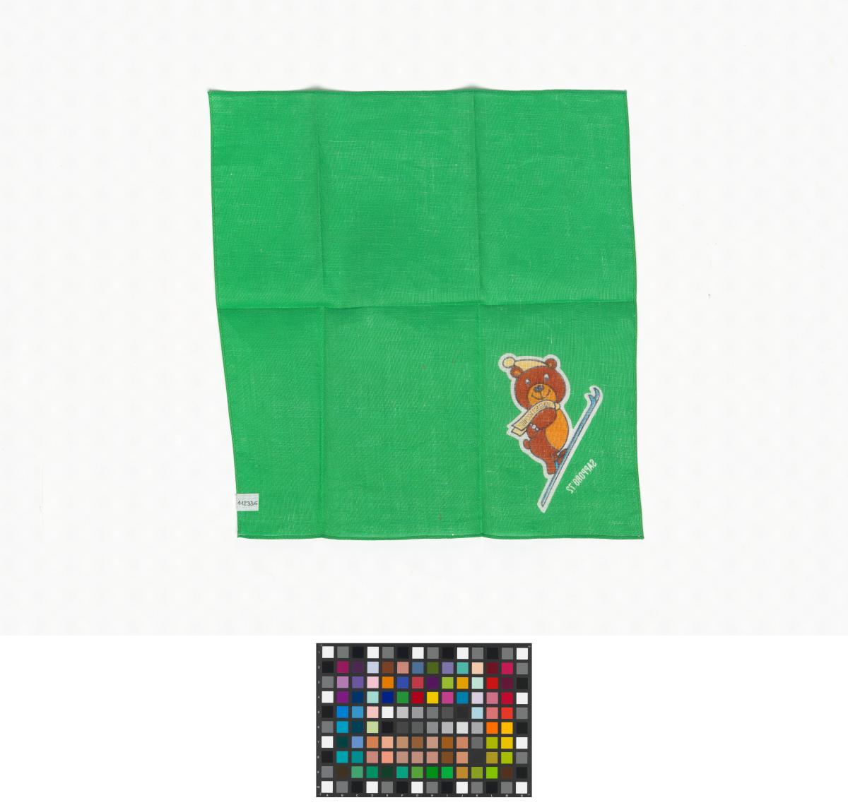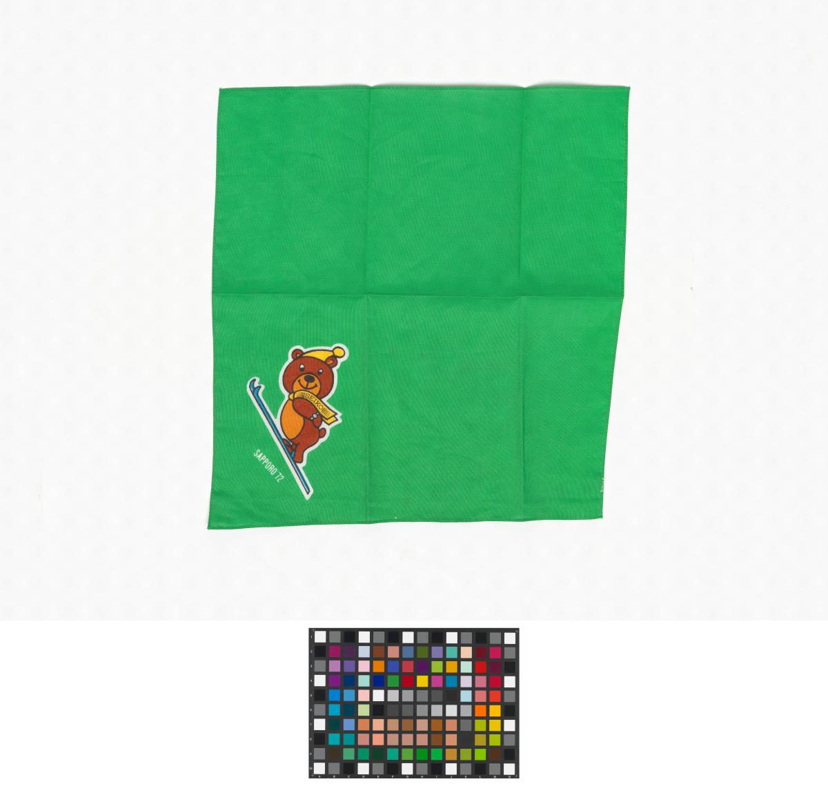 Sapporo 1972, handkerchief with a ski jumping bear.