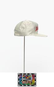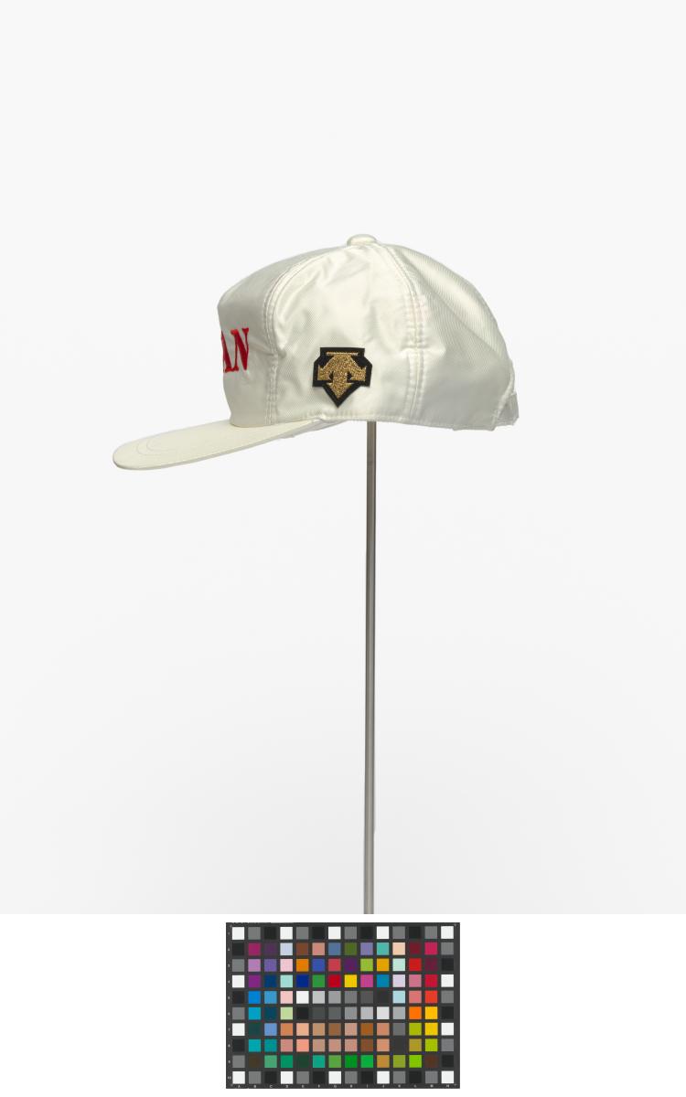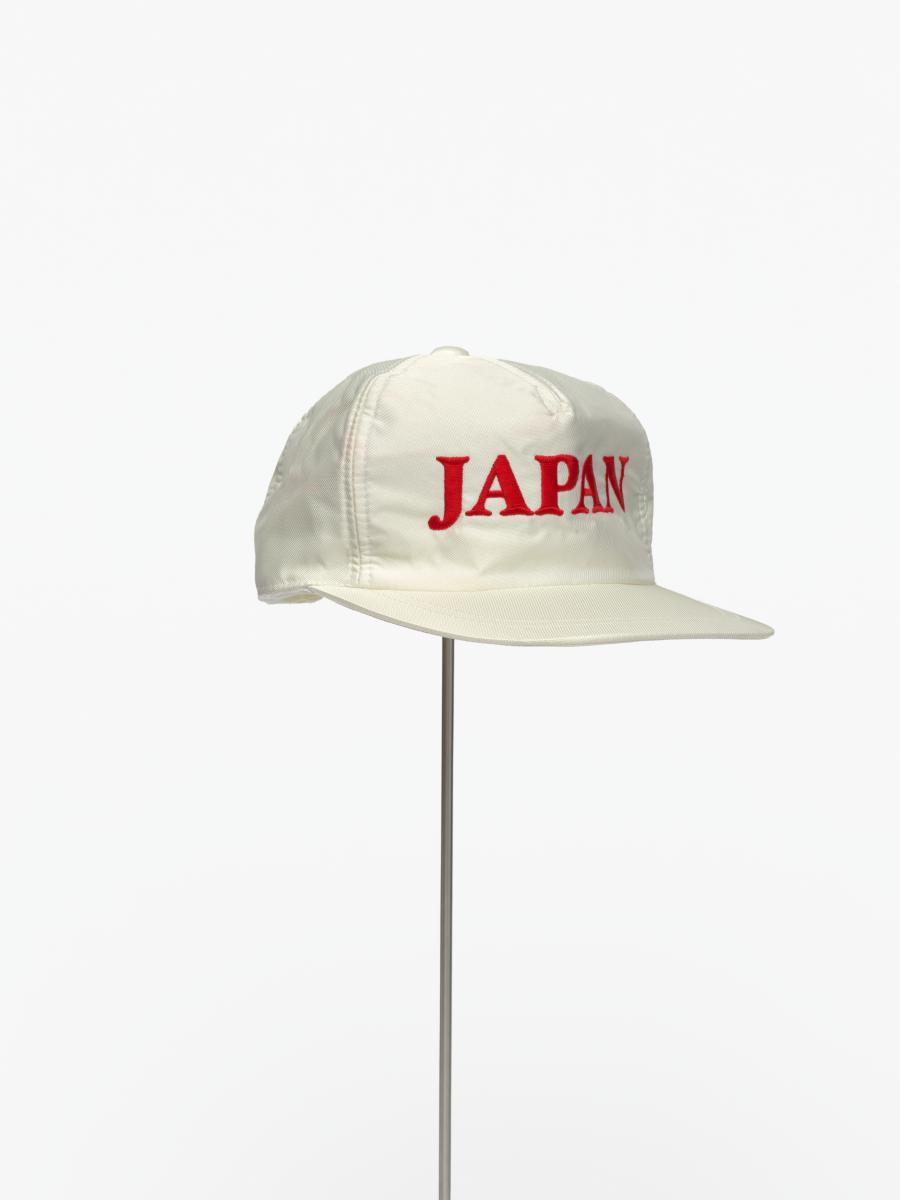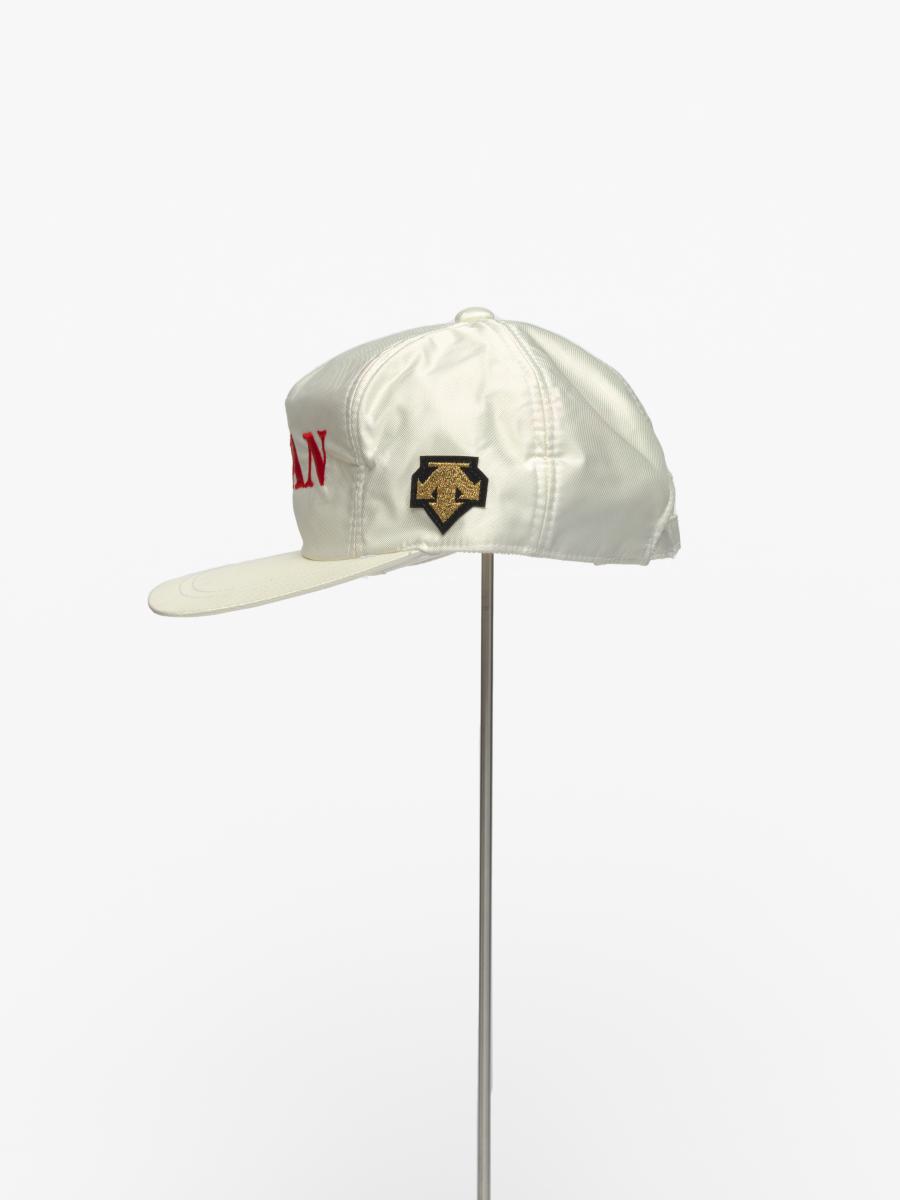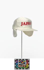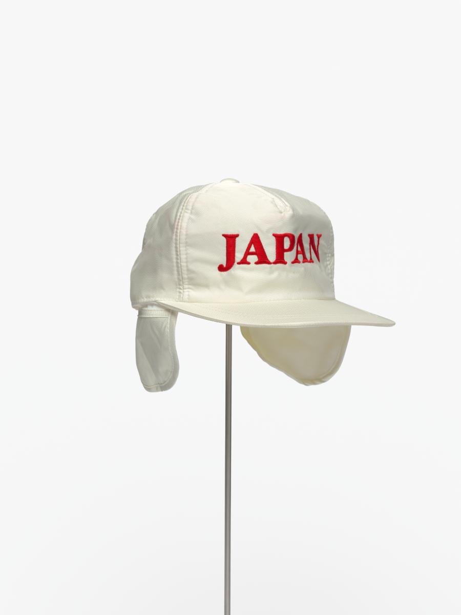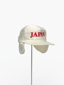 White cap (Size M) with earflaps with caption "Japan" and the logo of Descente.