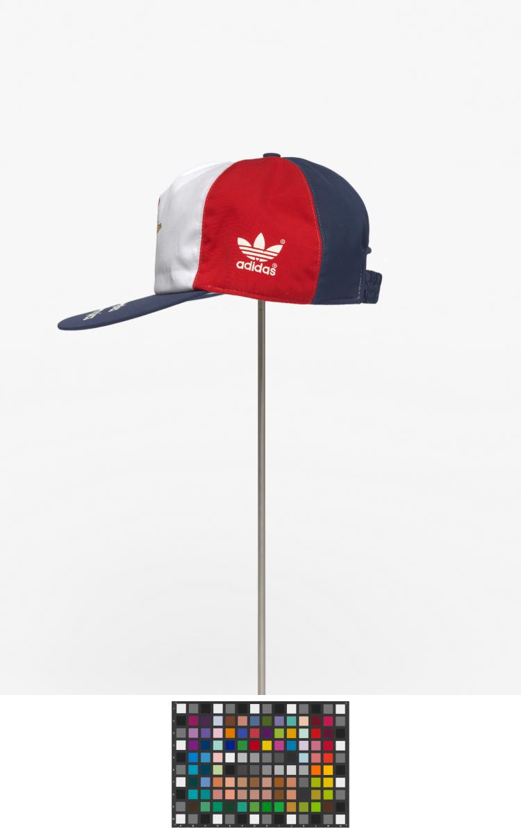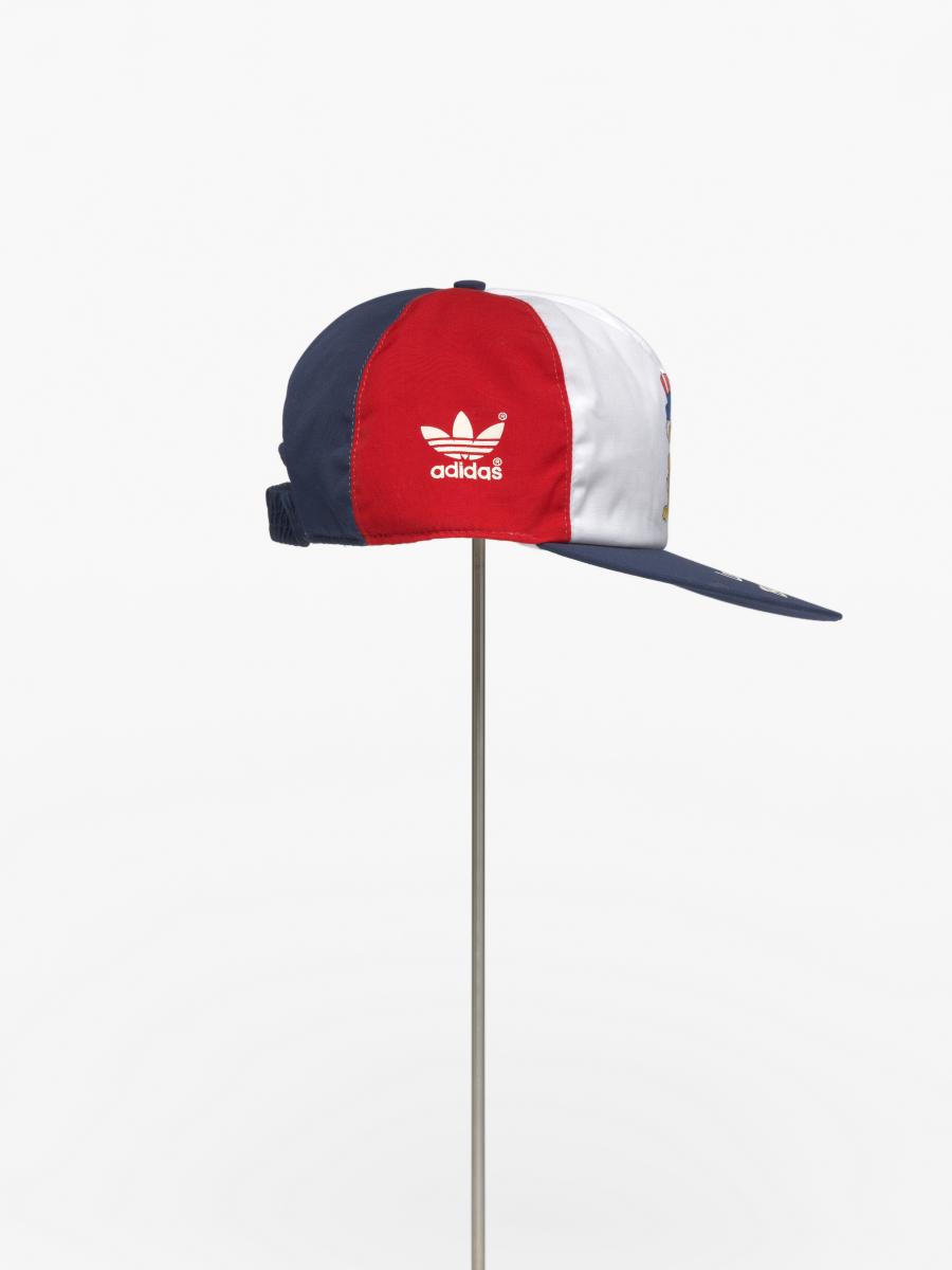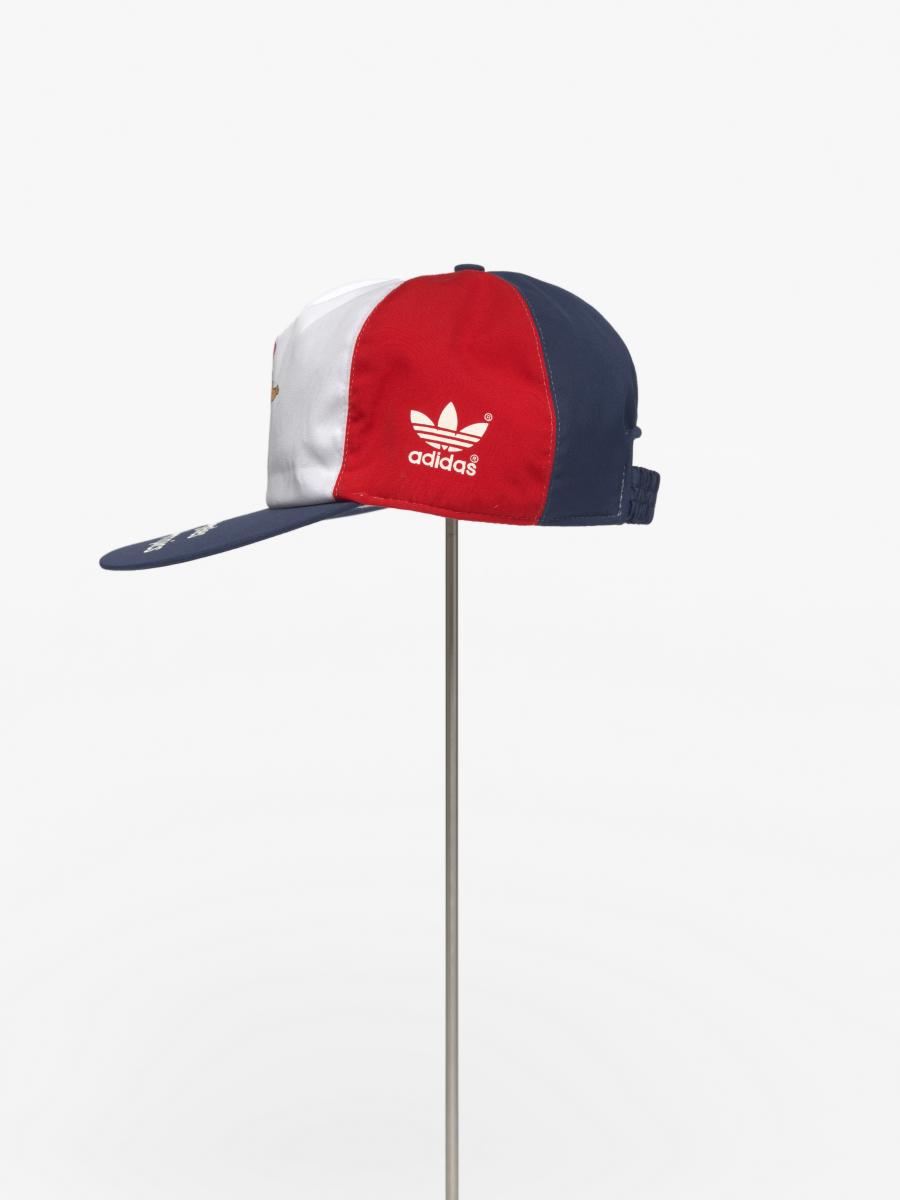 Red, white and blue cap with Sam, the mascot at the front, caption: "Los Angeles / 1984 Olympics" on the visor and Adidas logo on the sides. Size 1, S.