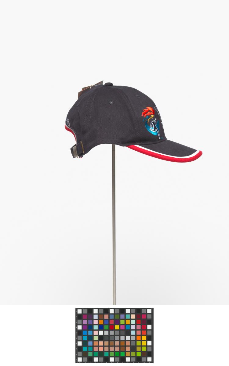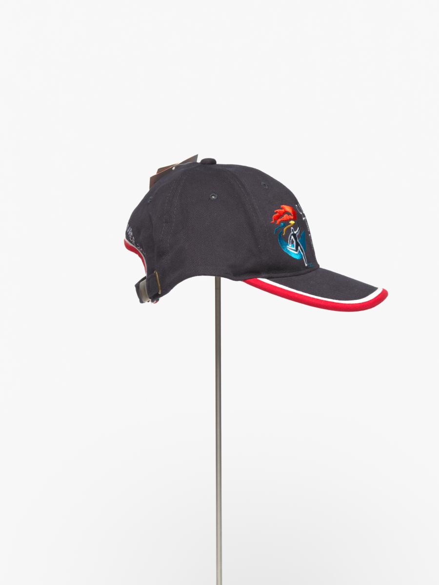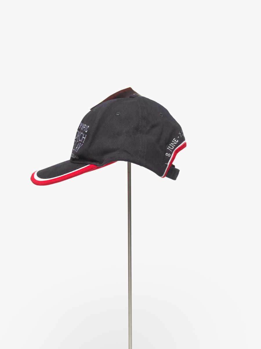 Black cap with the pictogram of the torch relay and the caption: "Olympic / Torch / Relay / Sydney 2000" with the Olympic Rings. On the back the is the caption: "8 June - 15 September 2000".