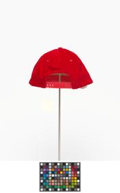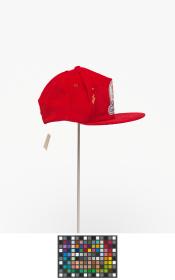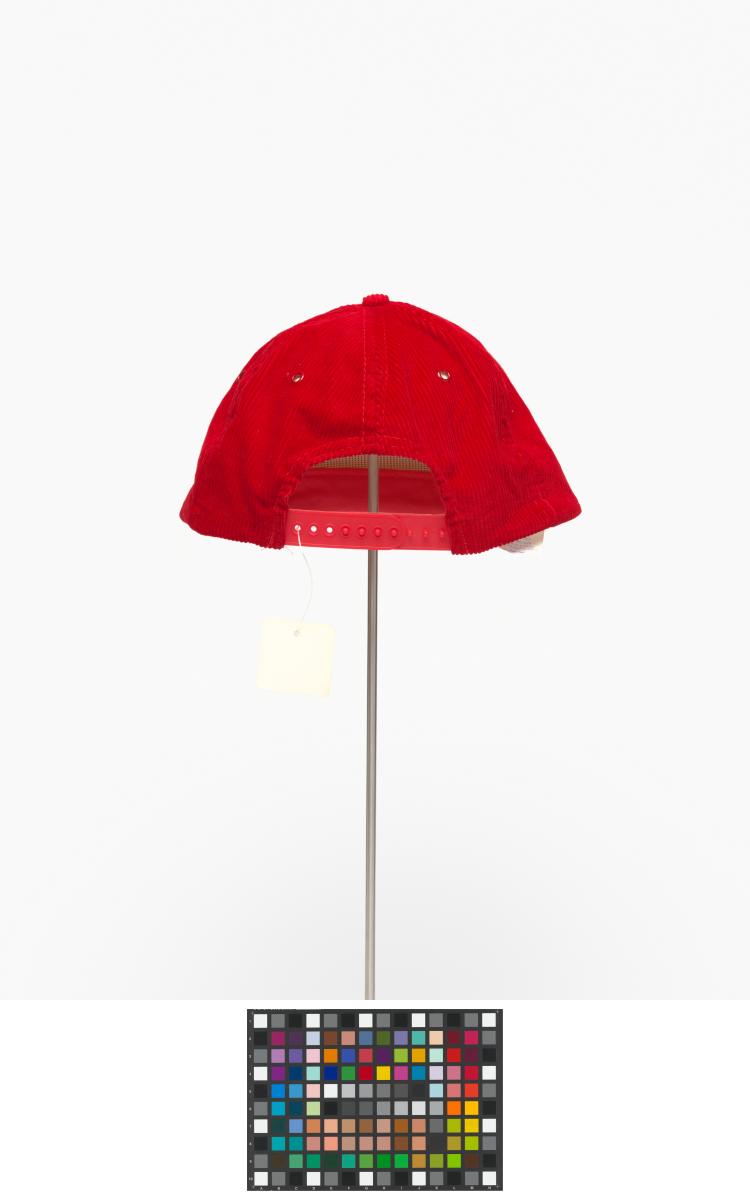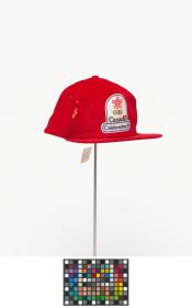 Red corduroy cap with the emblem of the Games and caption: "Canada / Celebration 88".