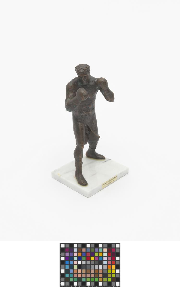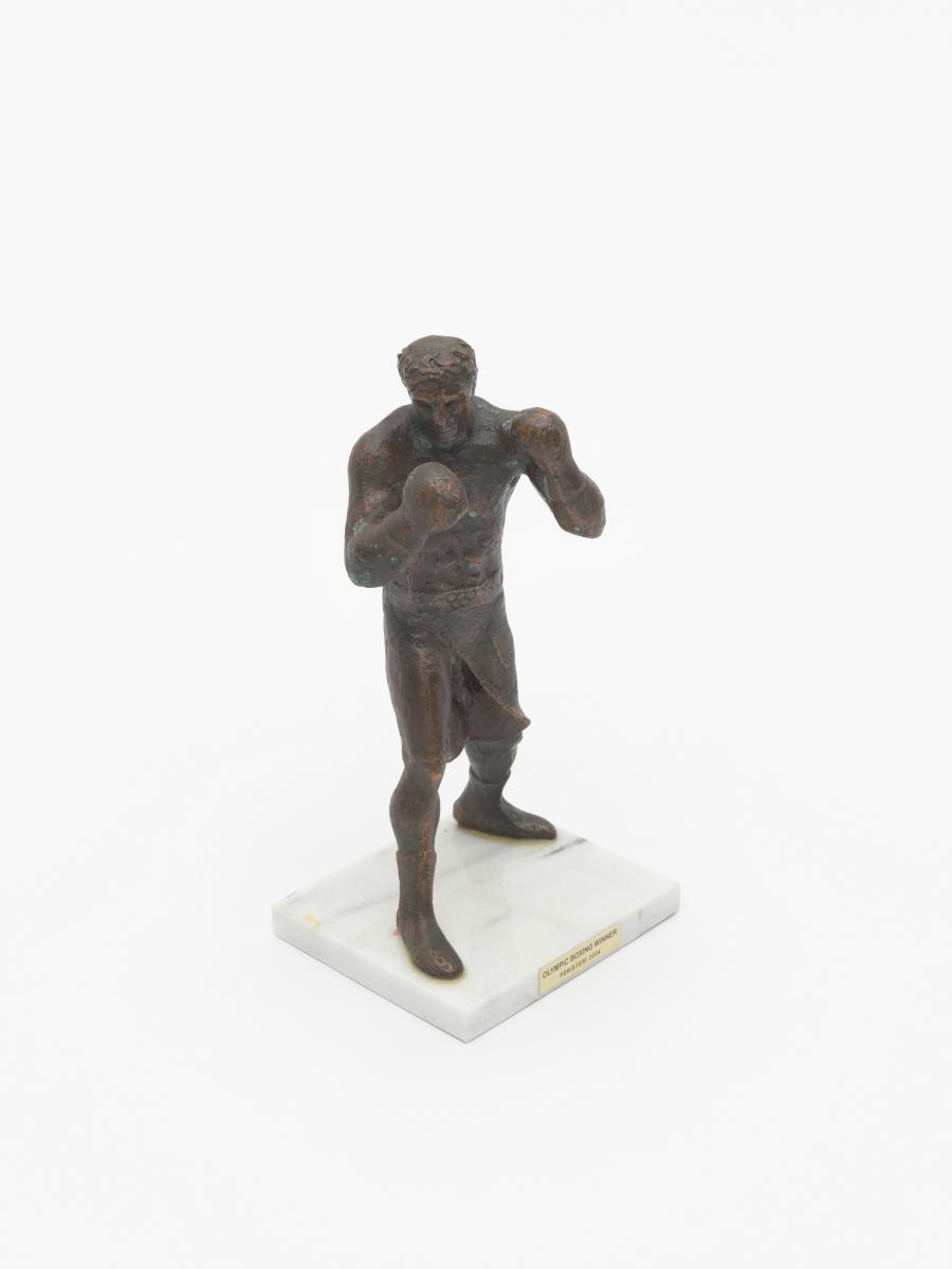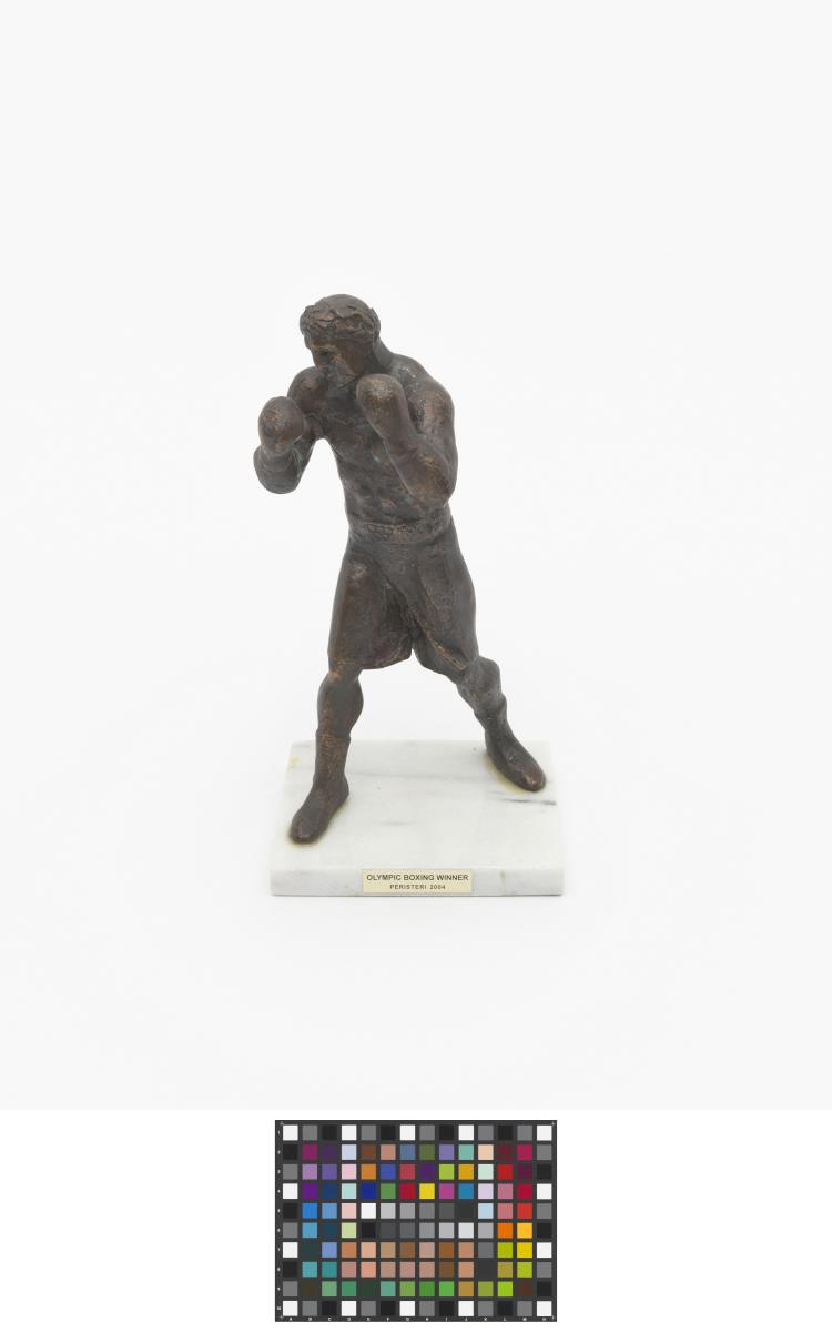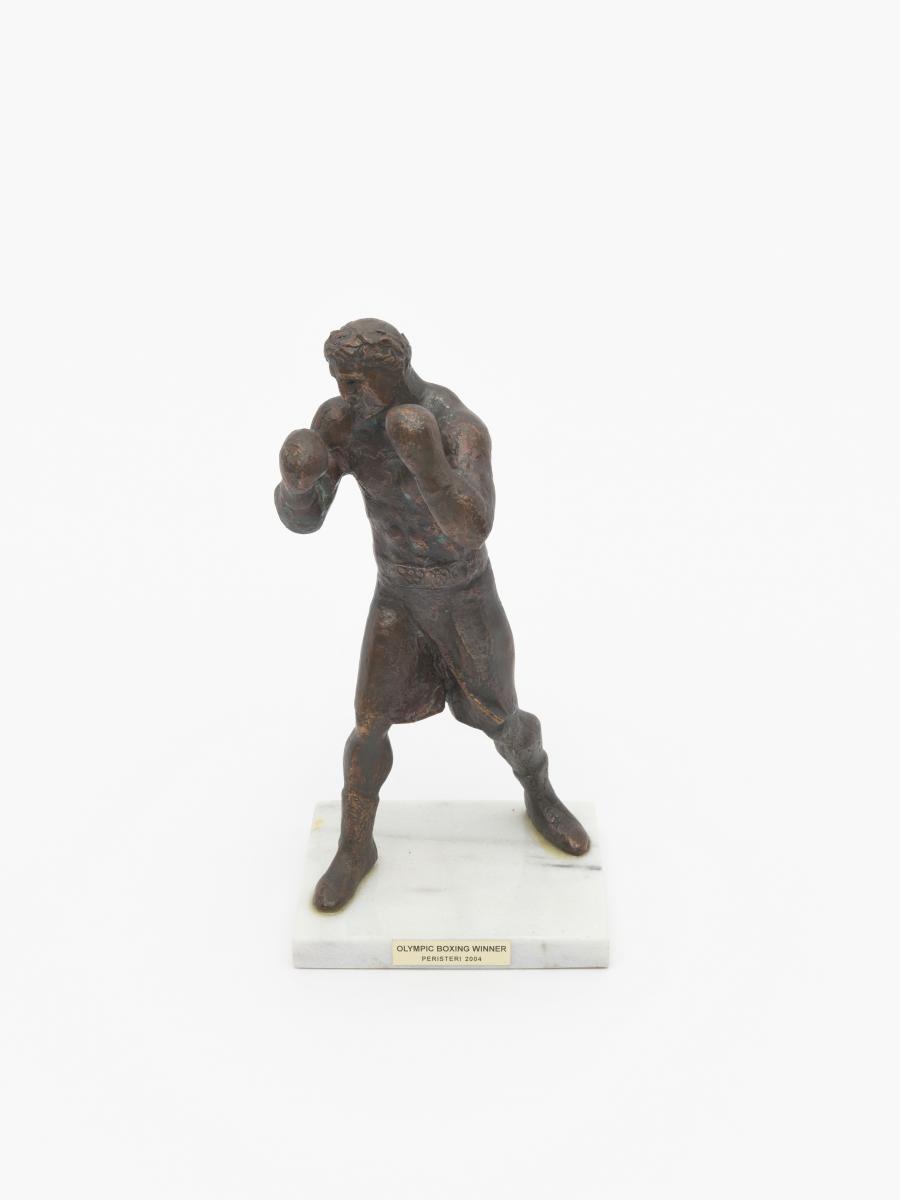 Boxer in action. Caption on the plaque: "Olympic Boxing Winner Peristeri 2004".