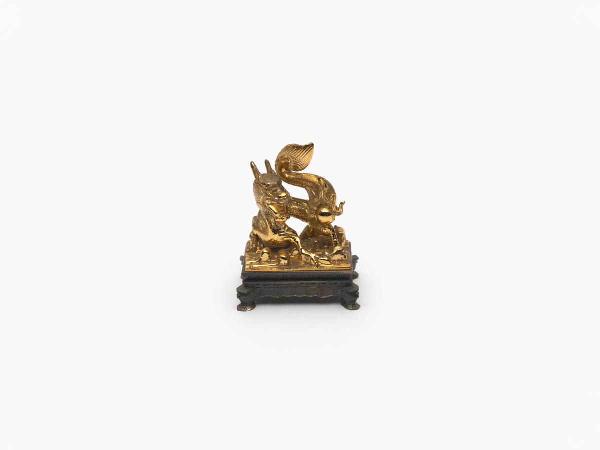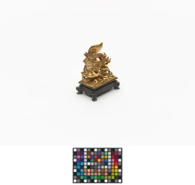 Dragon on base with Chinese characters (?) and caption: "Abidjan 1977".