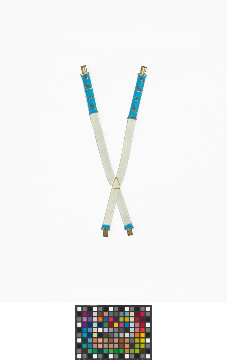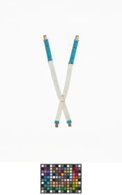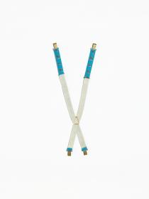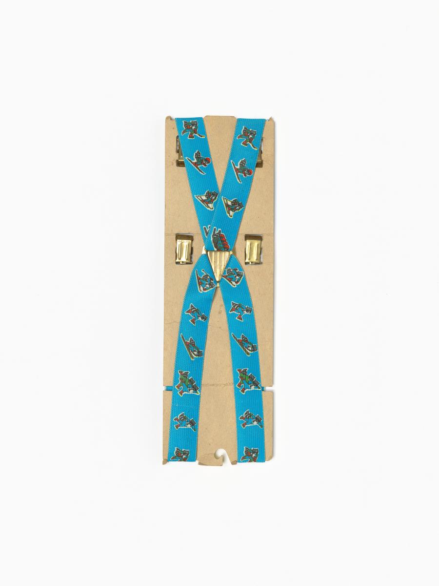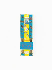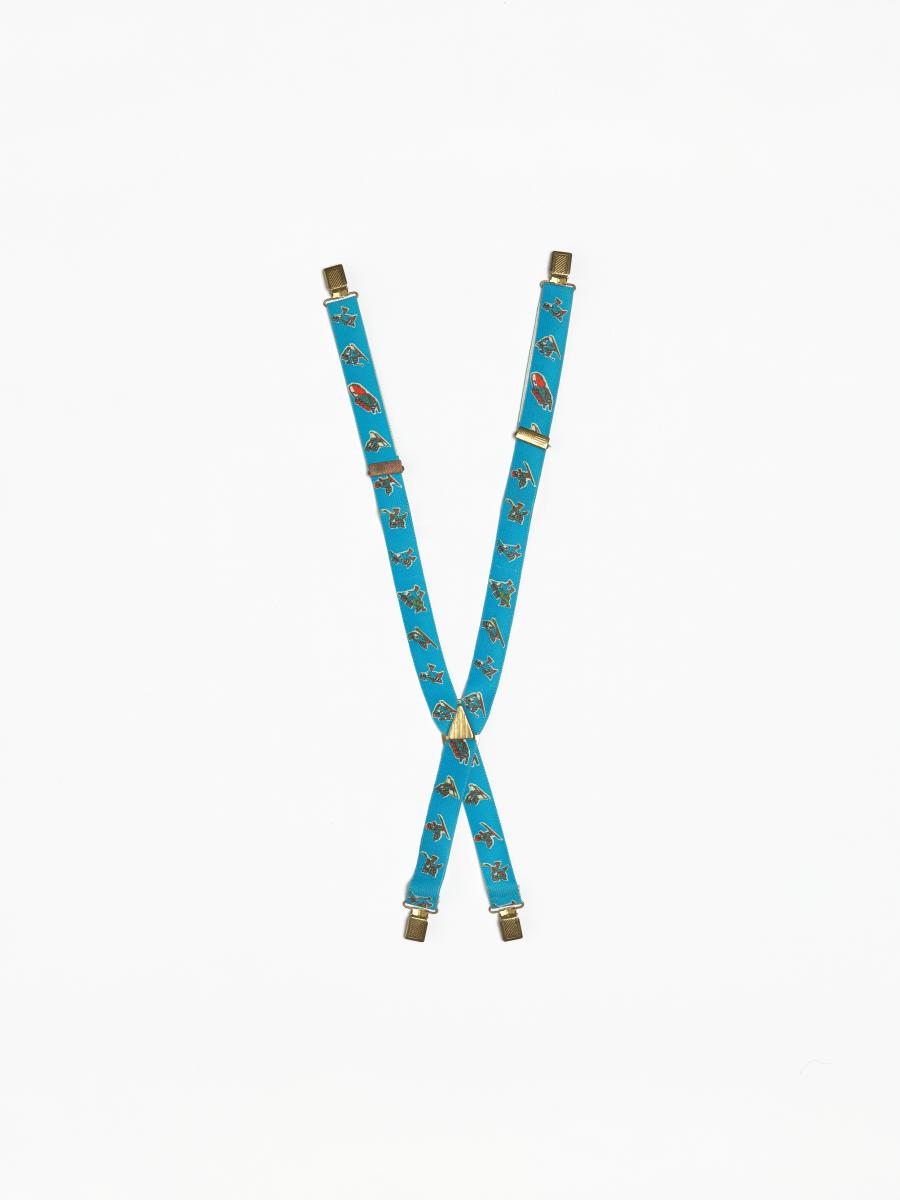 Pair of shoulder strap for children with Roni, the mascot of the Games practising winter games. Size 4-7 years old.