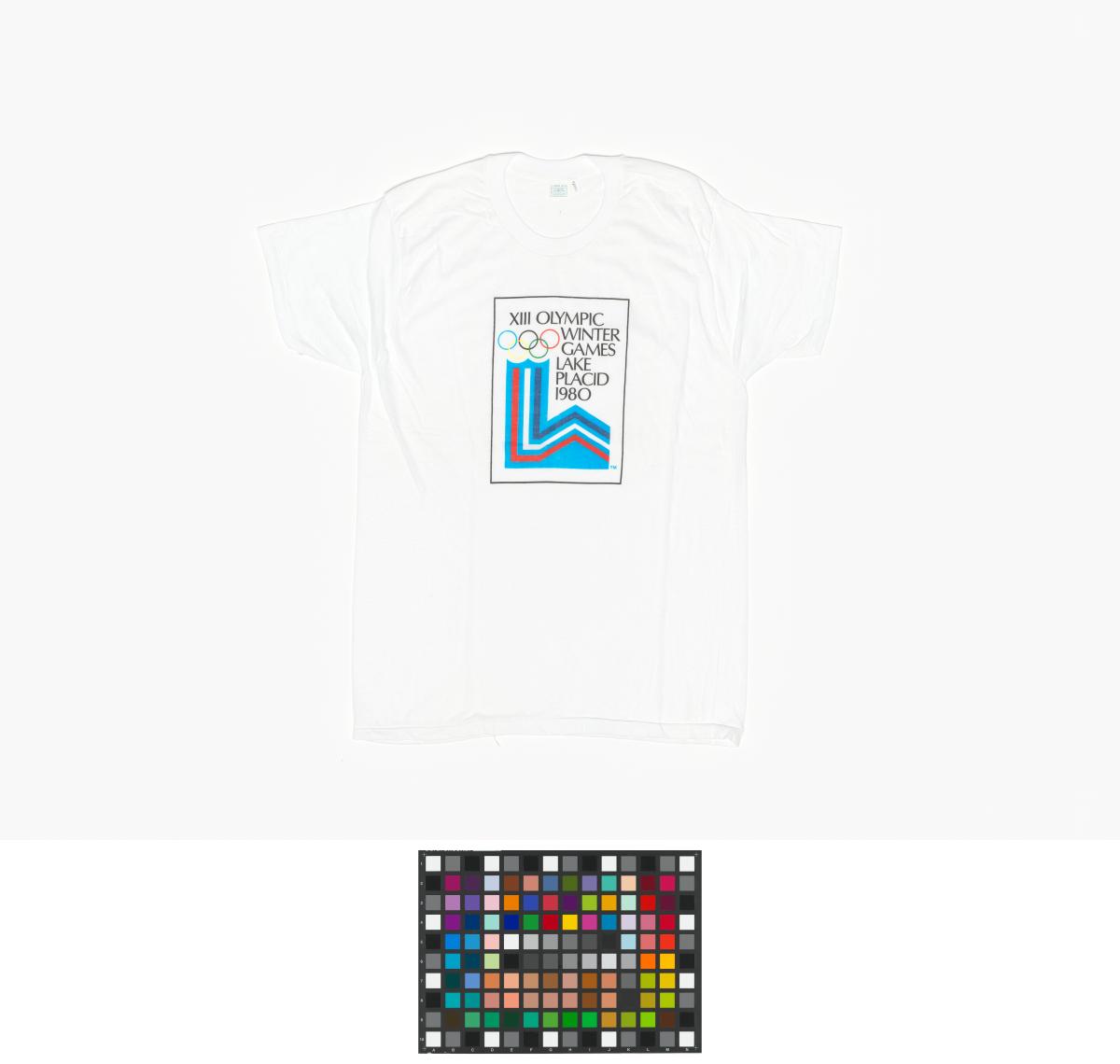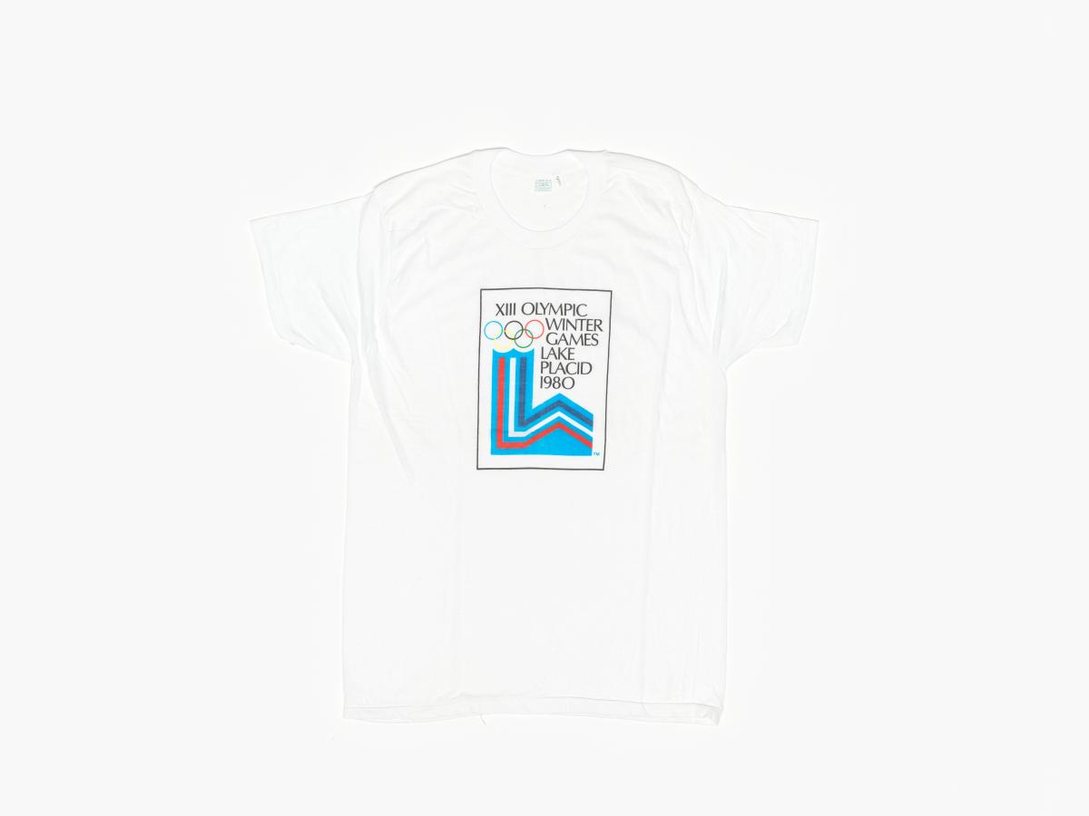 White T-shirt with the Games' emblem and the caption: "XIII Olympic Winter Games Lake Placid 1980". Size X-large (46-48).