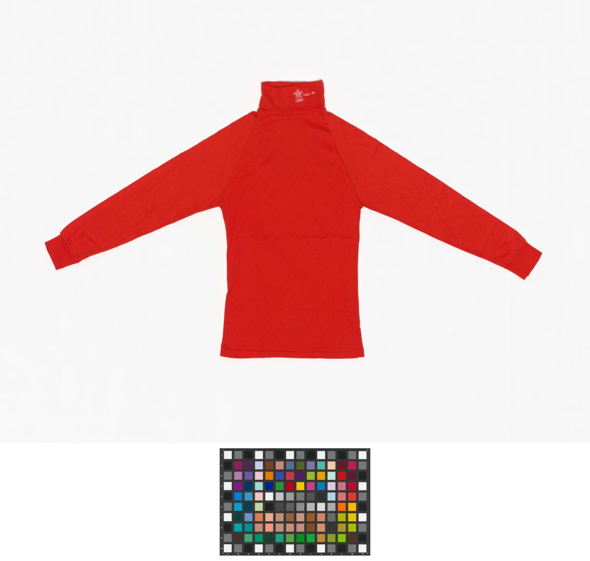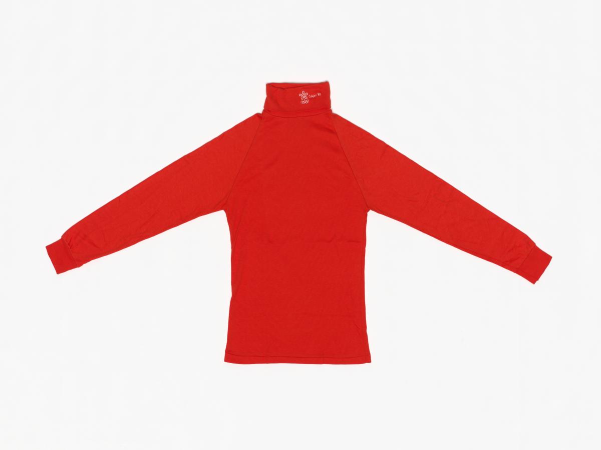 Red turtleneck sweater with the Games' emblem and the caption: "Calgary '88" on the collar. Size M.