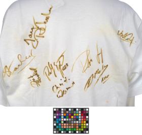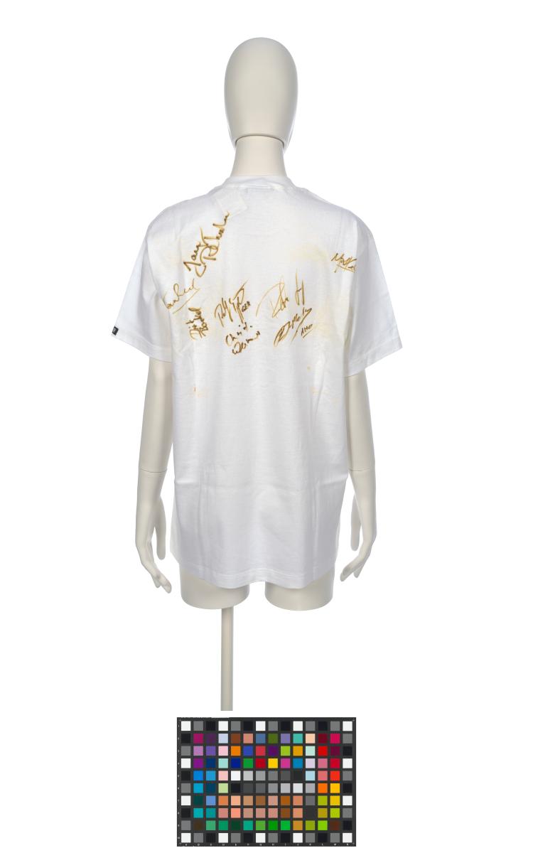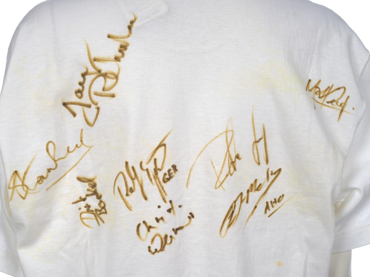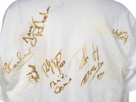 White T-shirt with the Games' emblem and the signatures of several athletes. Size S.