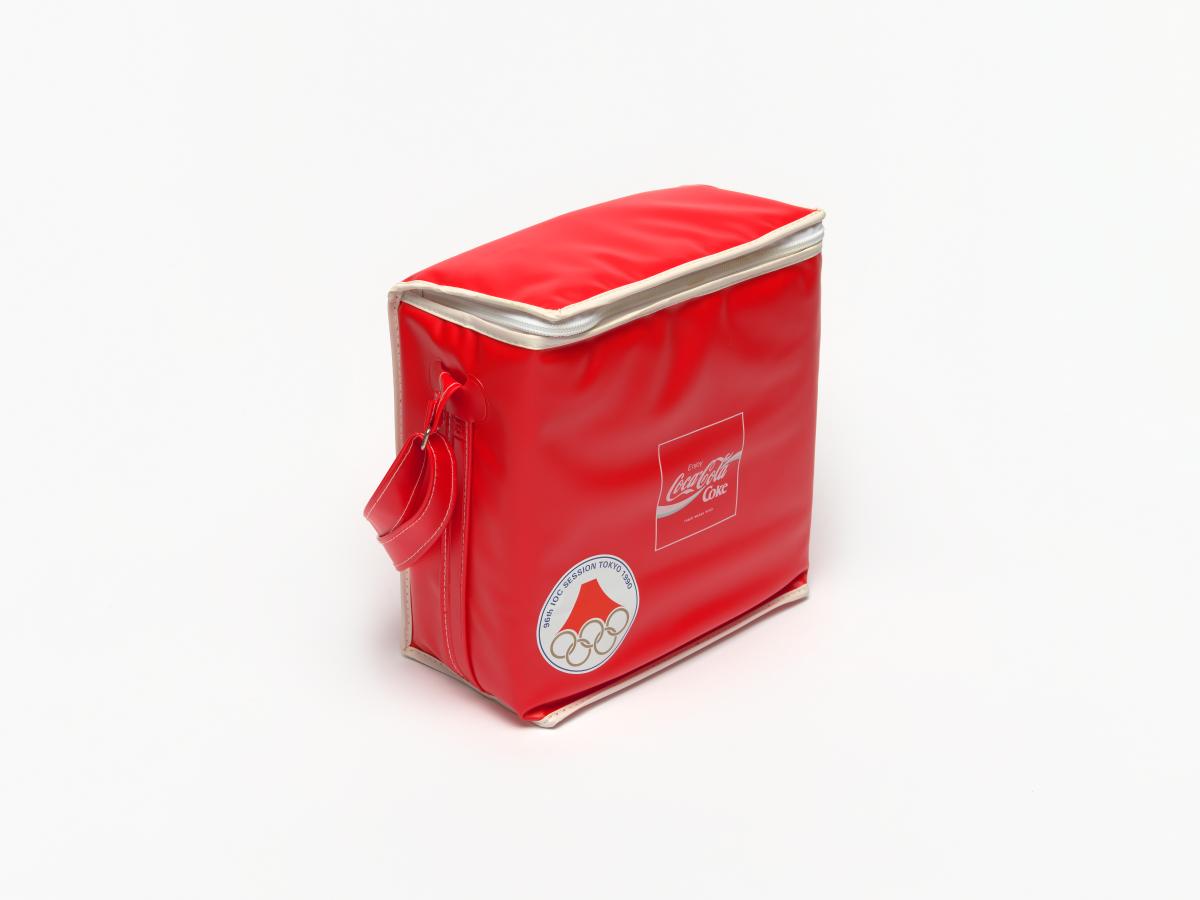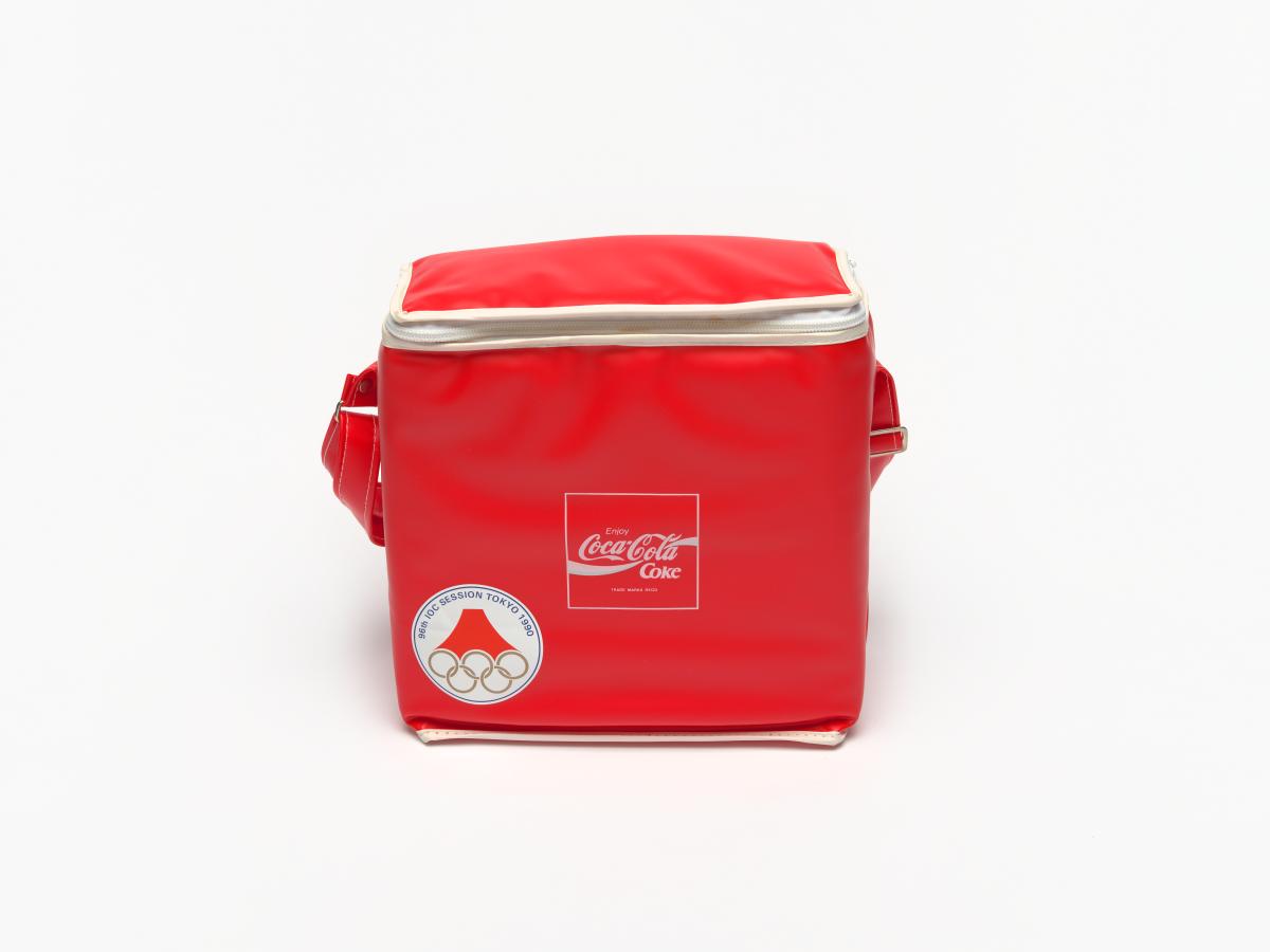 Picnic bag with the logo of Coca-Cola, the emblem of the Session and the caption: "96th IOC Session Tokyo 1990".