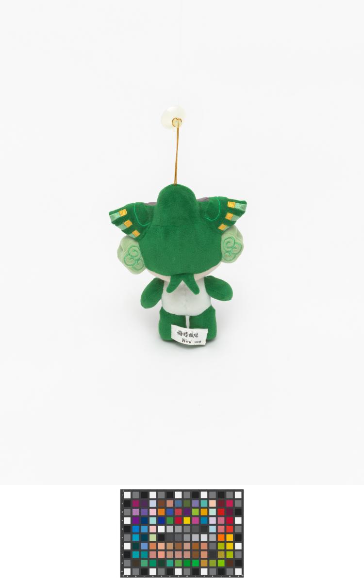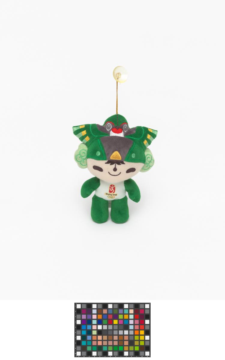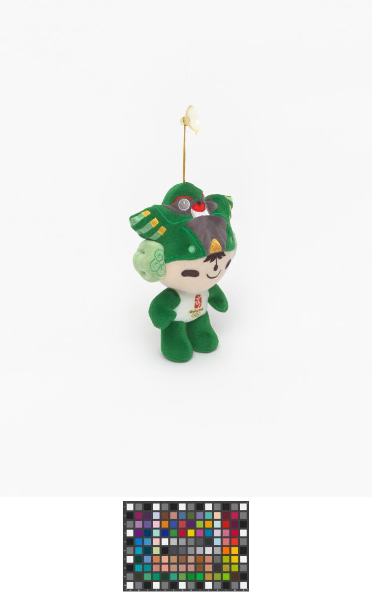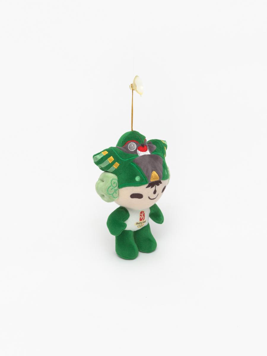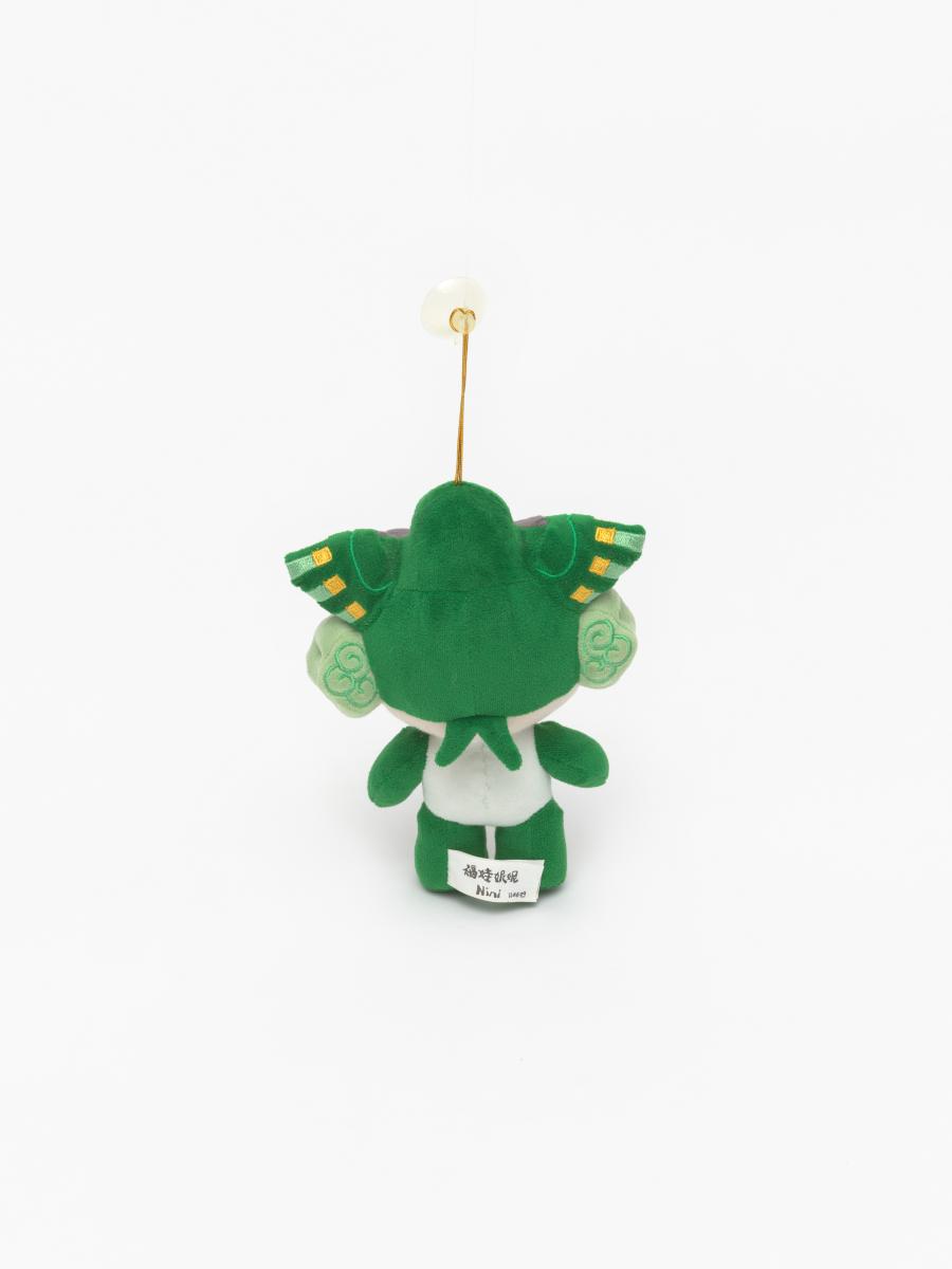 Mascot which represents the green ring. On the top of the head, there is a swallow with golden wings, traditional form of one chinese kite. Games' Emblem on the front.
