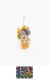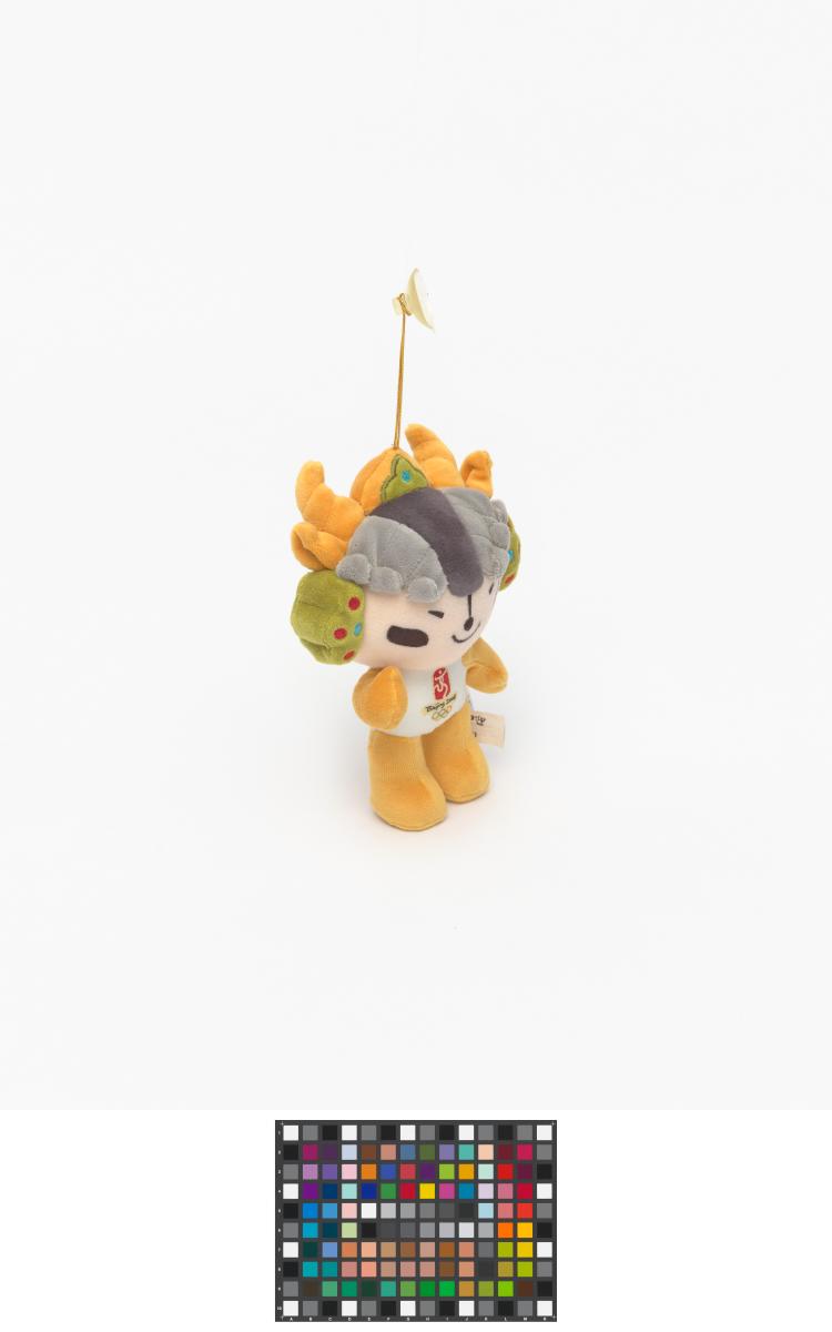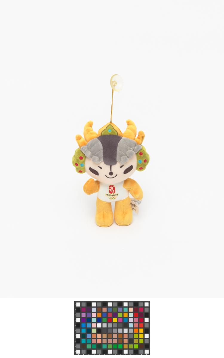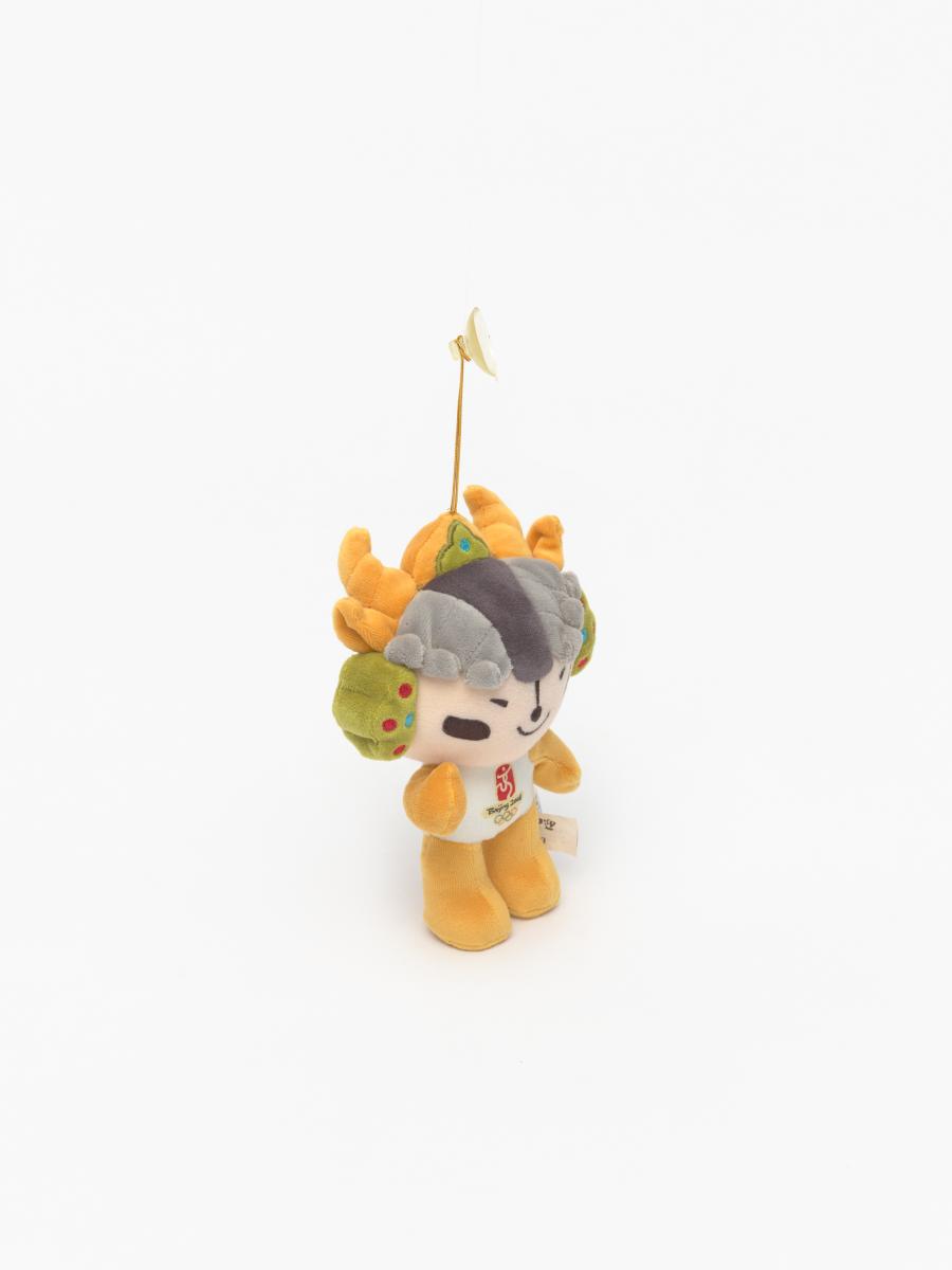 Mascot which represents the yellow ring. Head ornament incorporates several decorative styles from the Qinghai-Tibet and Sinkiang cultures and the ethnic design traditions of Western China. Games' Emblem.