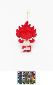 Mascot which represents the red ring. Flame patterns on his head. Games' Emblem on the front.