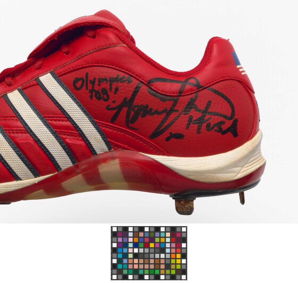 Beijing 2008, shoes signed by Monica ABBOTT (USA), silver medallist, softball.