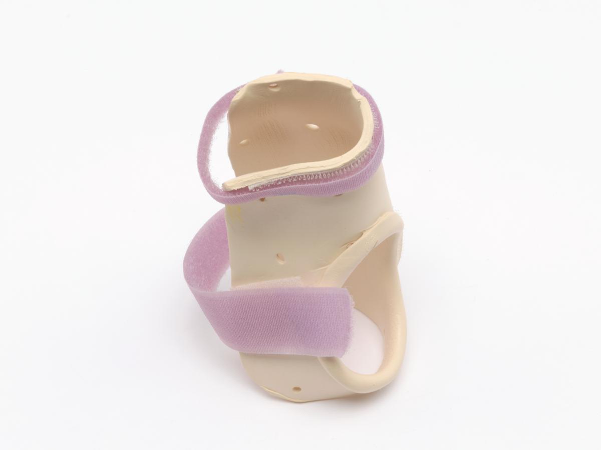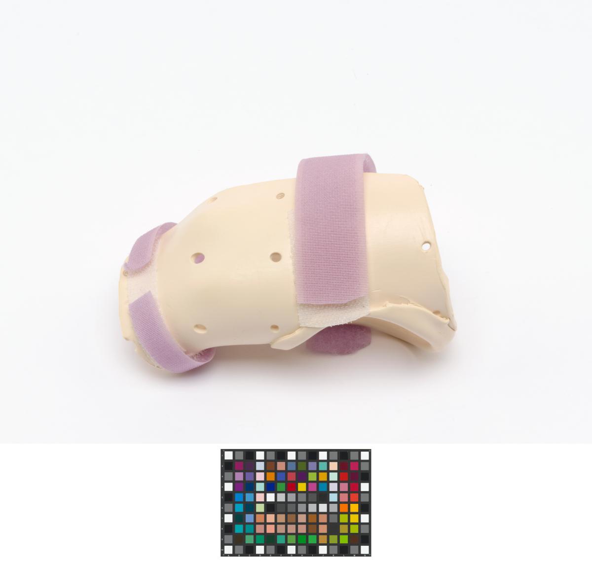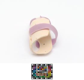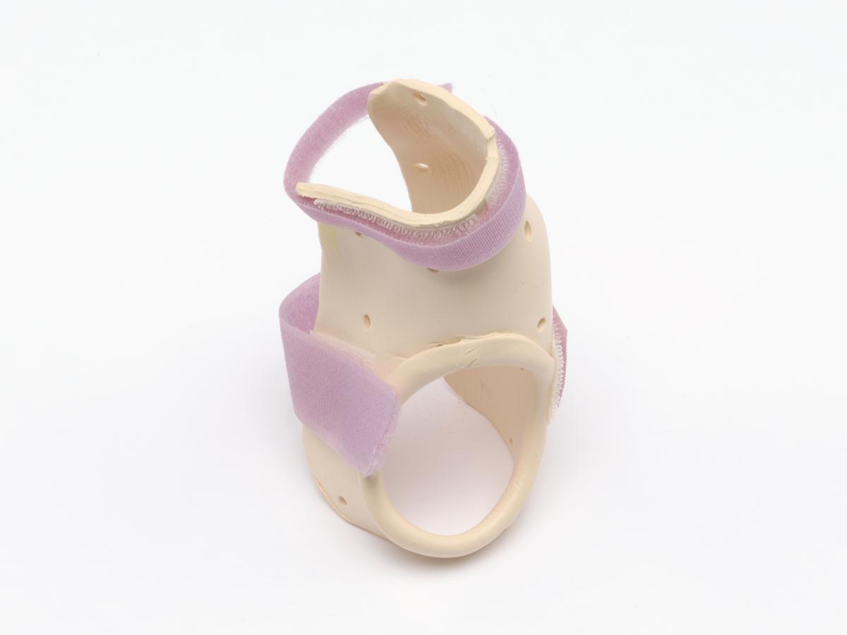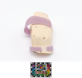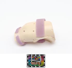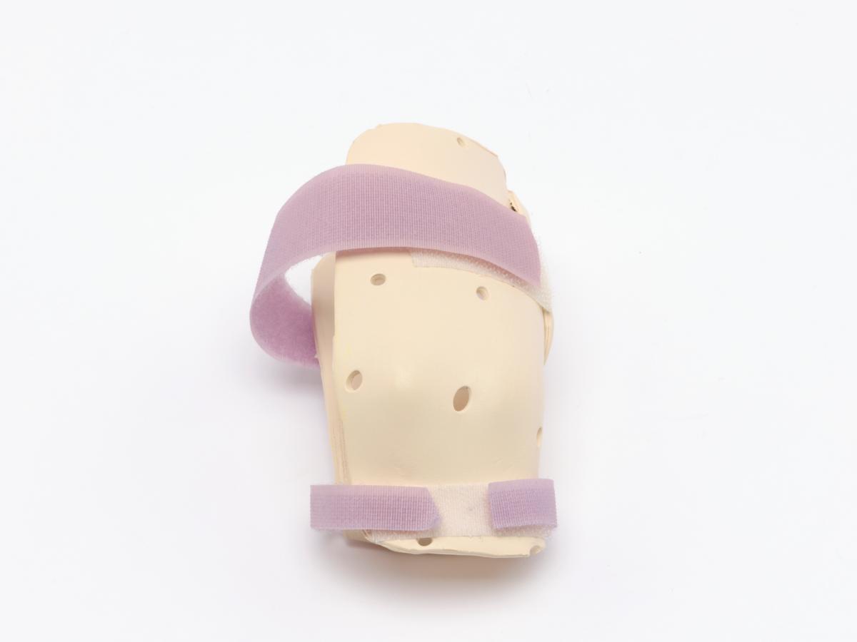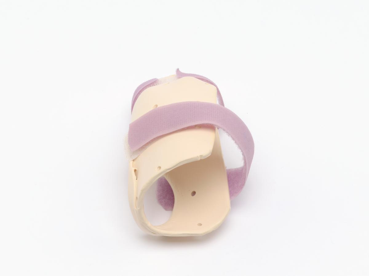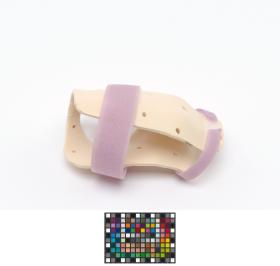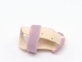 The splint is meant for the right hand and has 2 velcro strips and a label, caption: "Emily Silver USA".