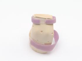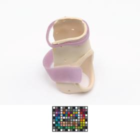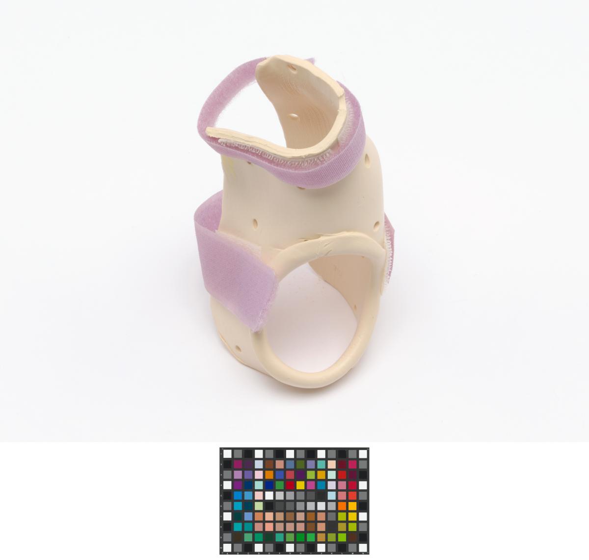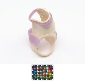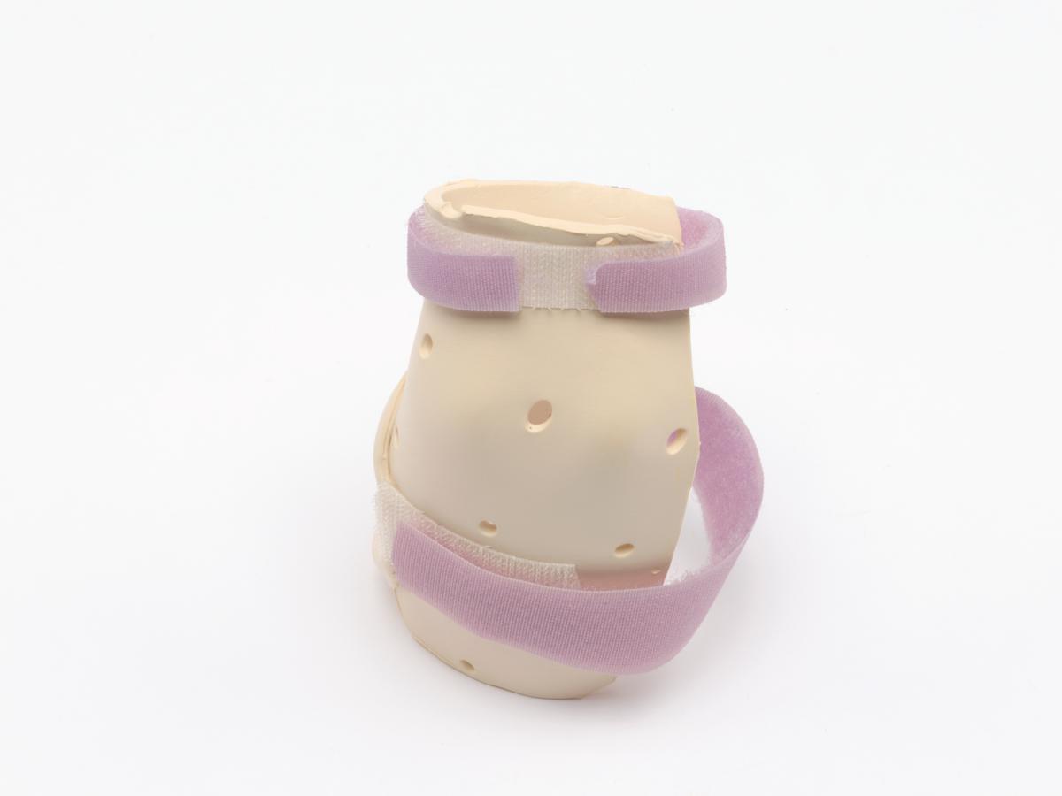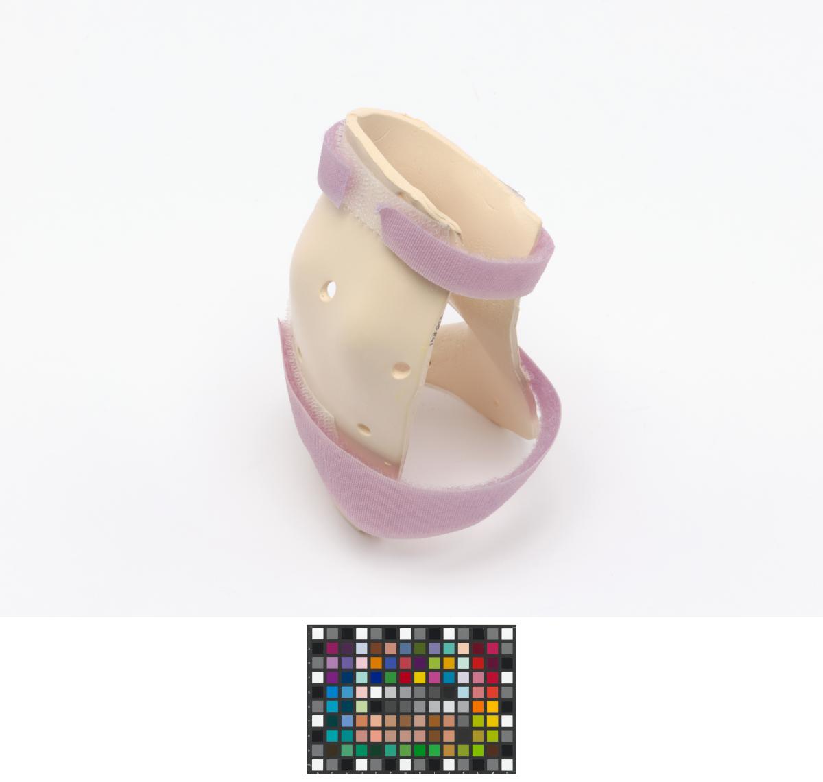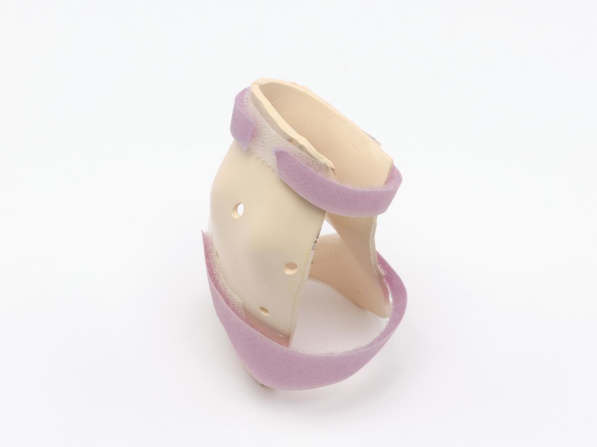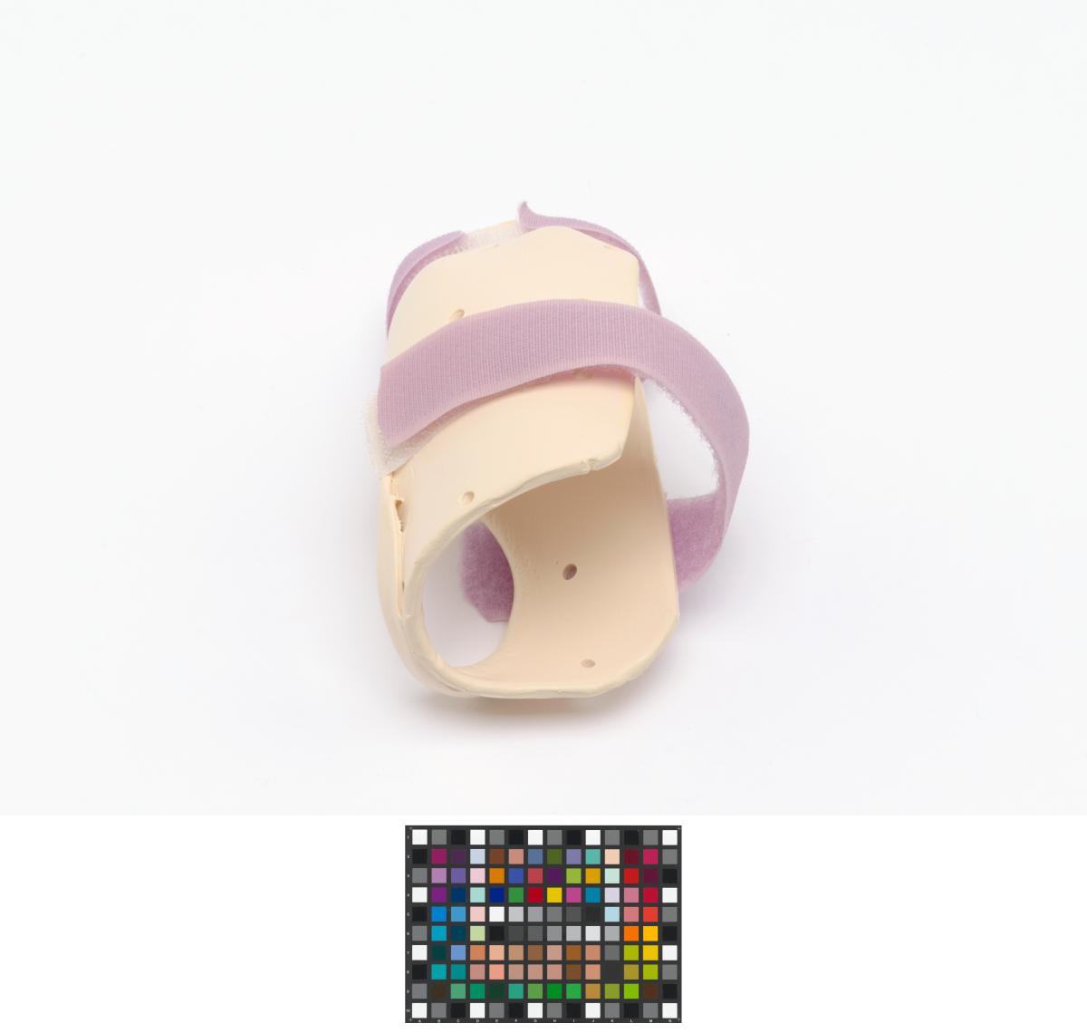 The splint is meant for the right hand and has 2 velcro strips and a label, caption: "Emily Silver USA".