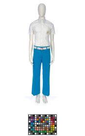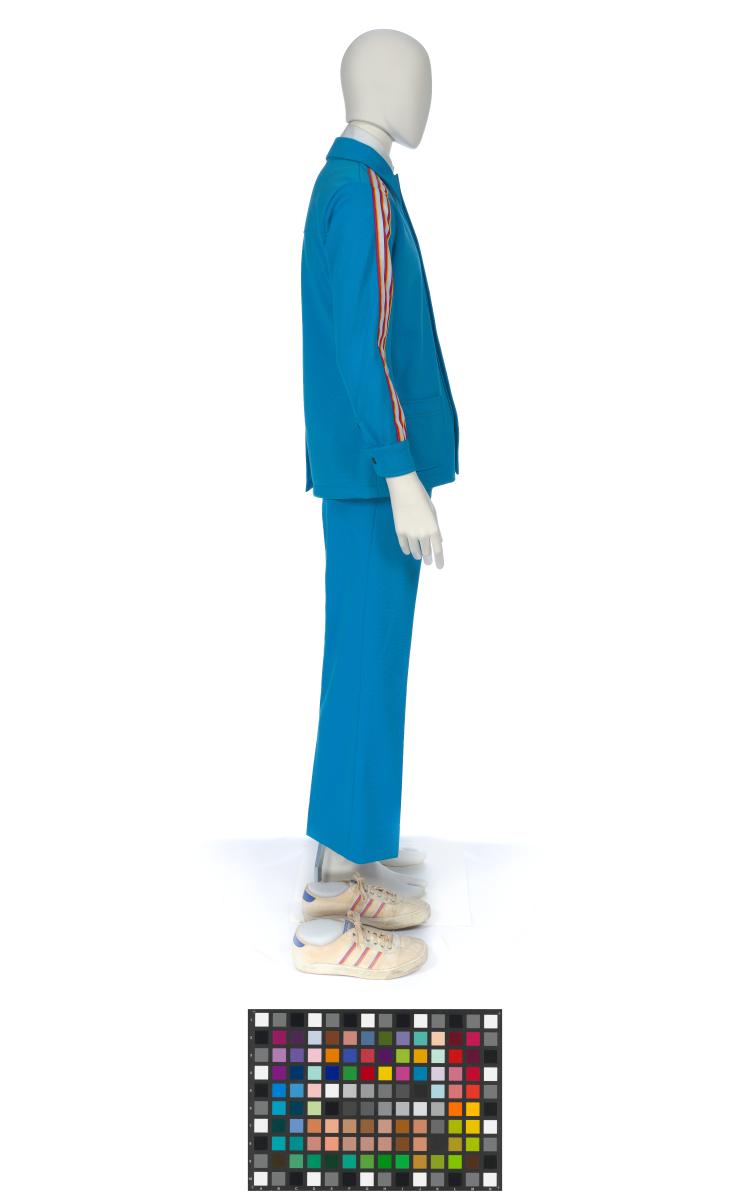 Costume composed by shoes (79831) size 8 1/2, a jacket (79832) size 38, short-sleeved shirt (79833, 79834) size S and trousers (79835) size 32.