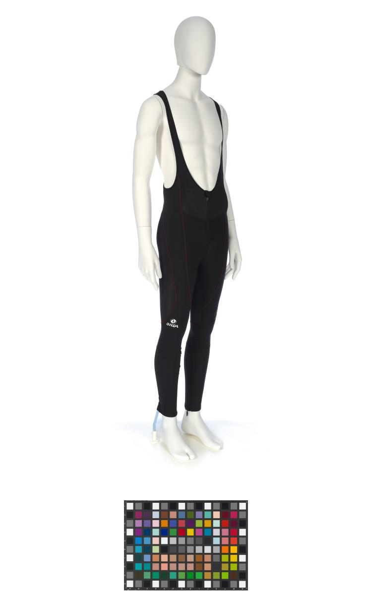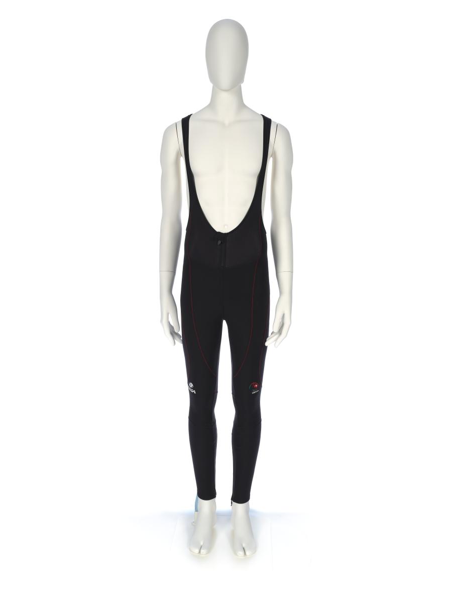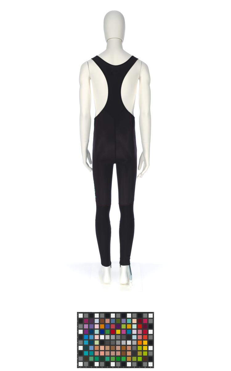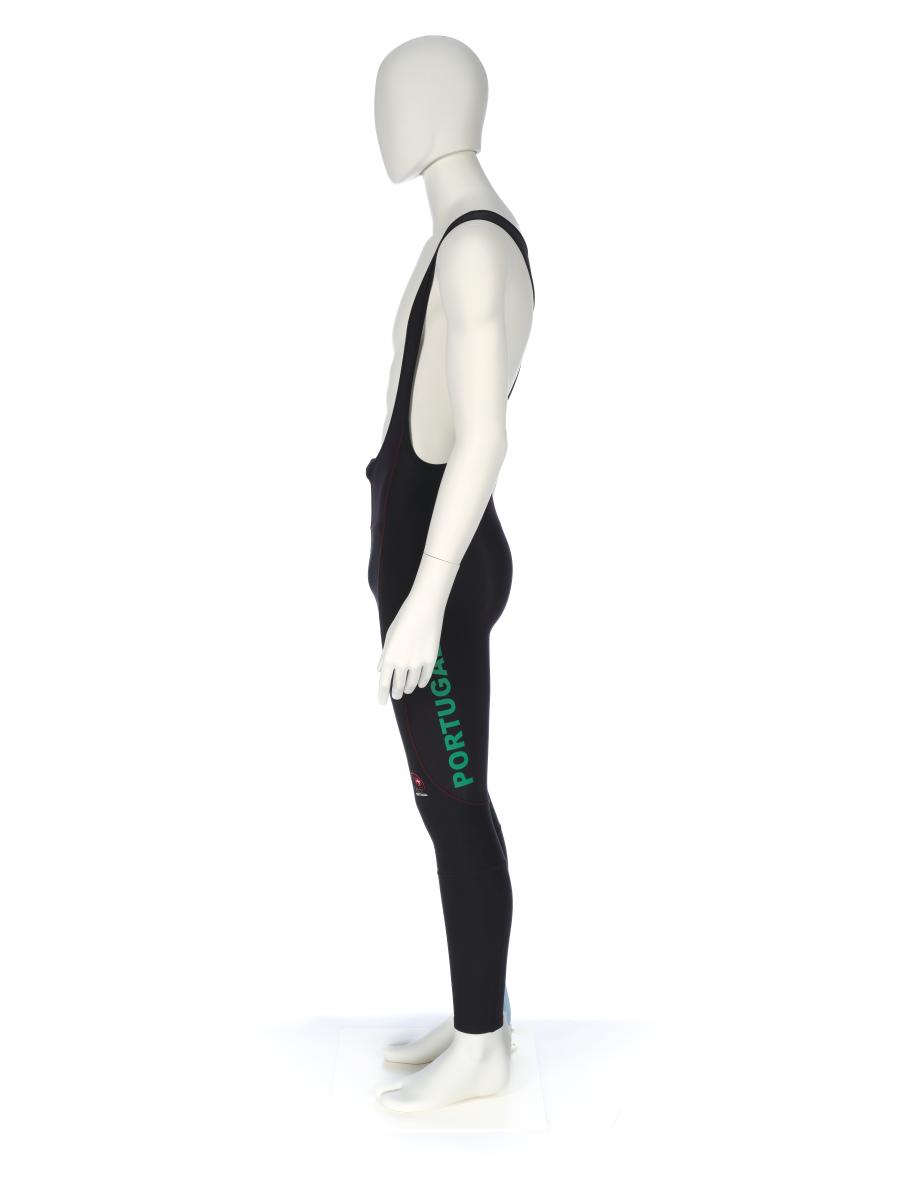 Black ski pants with red sewings. Portuguese NOC logo on the left knee and "Portugal" on the back of the left leg.