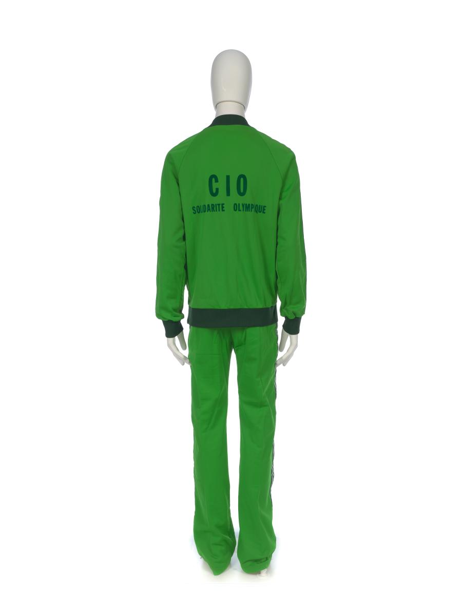 Training suit composed of a jacket Nr. 113854 and pants 113854 with the inscription on the back of the jacket: "CIO Solidarité Olympique".