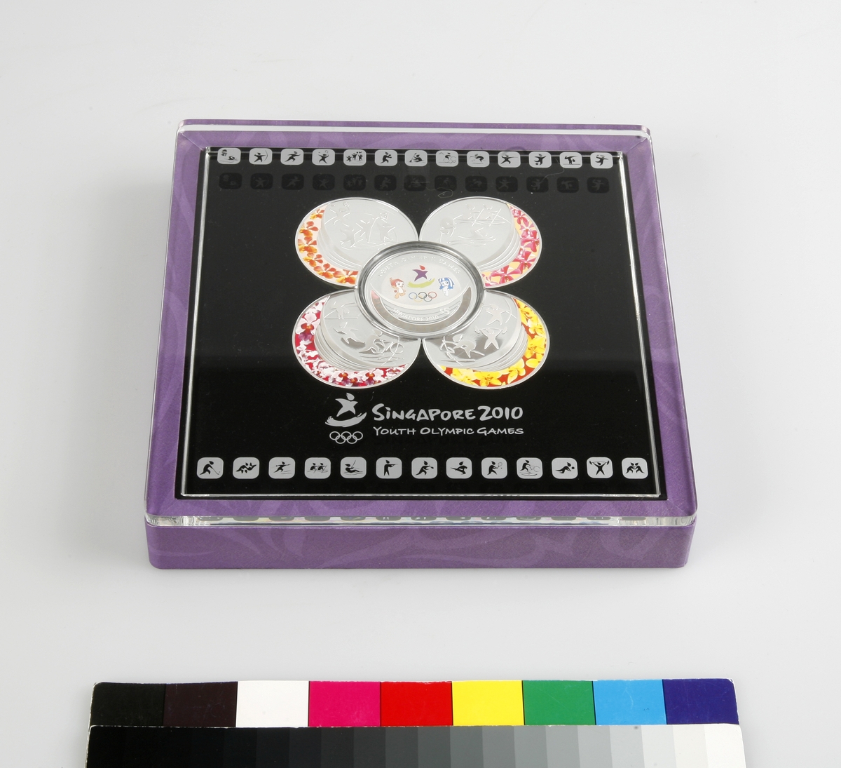 Singapore 2010, 5 Singapore dollars. Singapore. Set with 5 dollars coin and four medallions with the sport's pictograms.