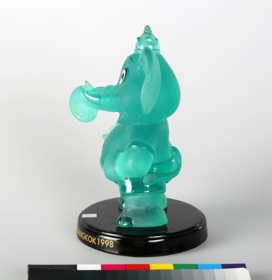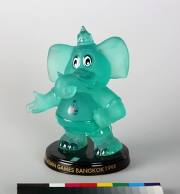 Glass figure of the 13th Asian Games' mascot representing an elephant. Games' emblem on his Caption on the base: "13th Asian Games Bangkok 1998". Hologram of the 13th Asian Games.
