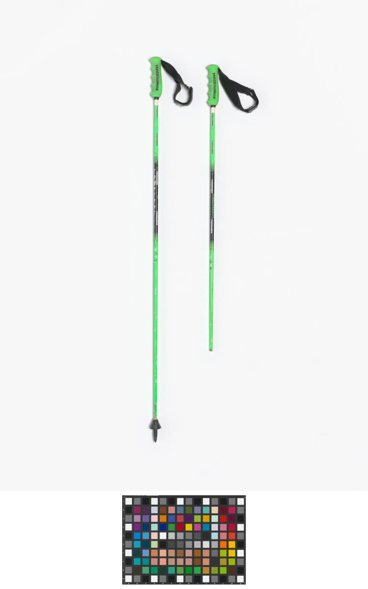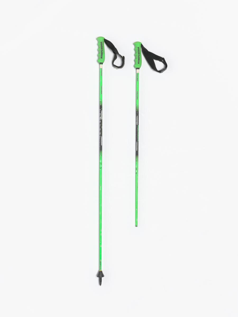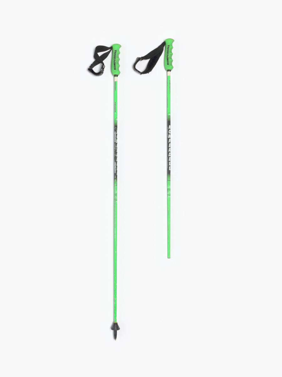 Pair of Komperdell ski poles, with no name of model. One is broken. Athlete's initials on the grips.