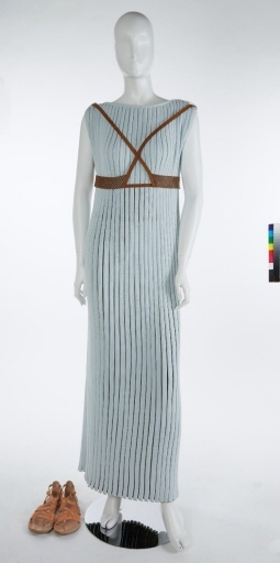 Costumes for the flame-lighting ceremony at Olympia worn by a priestess and an athlete
