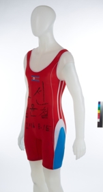 Weightlifting suit with the colors of the national flag, signed by the athlete.